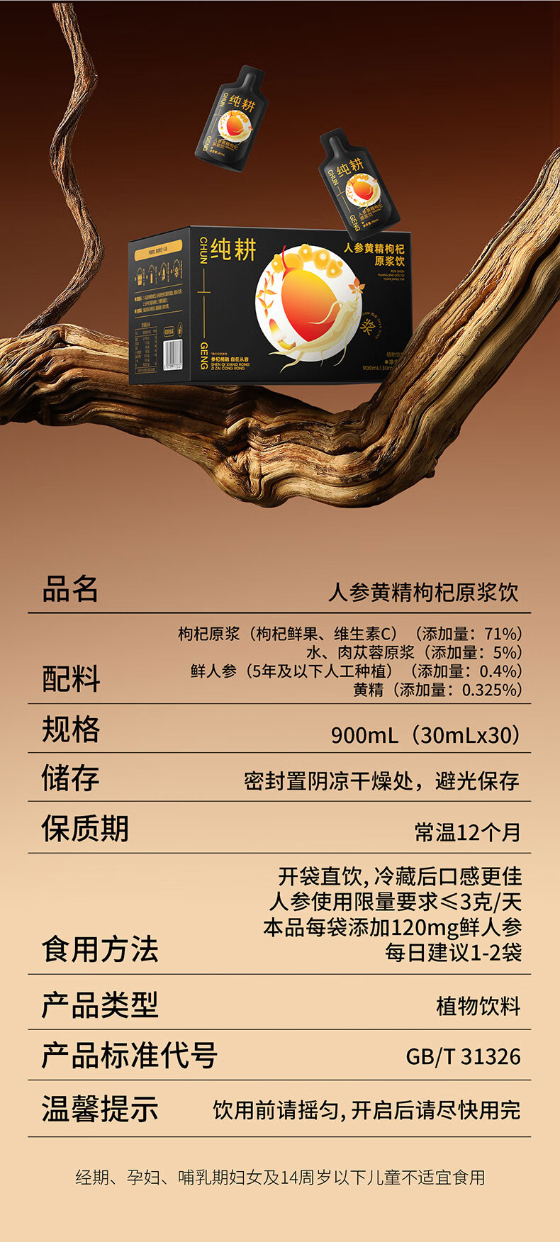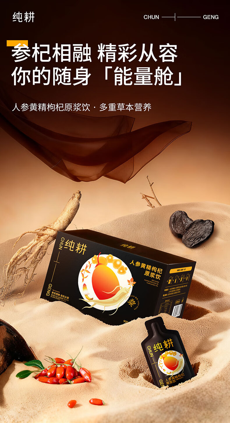 杞里香纯耕黄精肉苁蓉原浆人参枸杞原浆男士养生礼盒装小袋独立便携年货 人参黄精肉苁蓉枸杞原浆 30ml*60袋 大箱