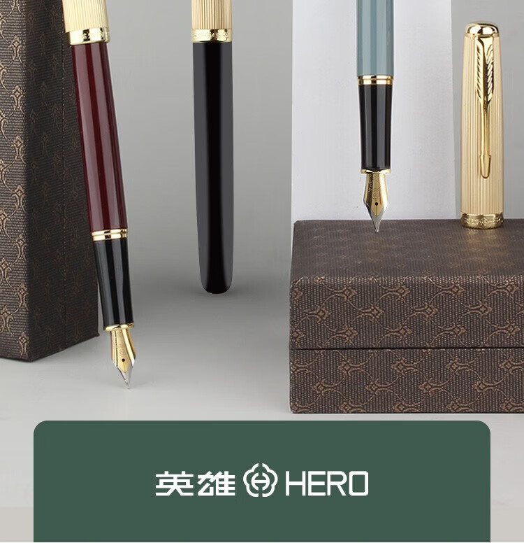 英雄(HERO)钢笔 签字笔 商务办公文具书写 生日礼品成人商务墨水笔 776 沉黑 免费刻字