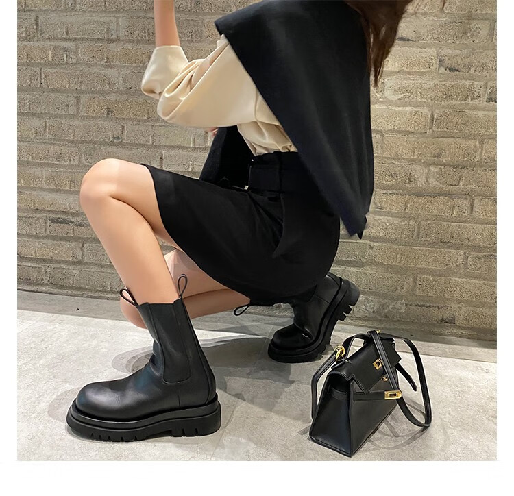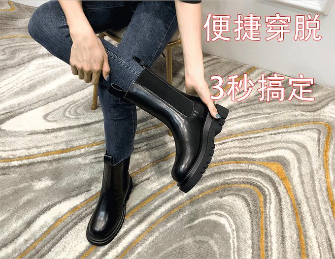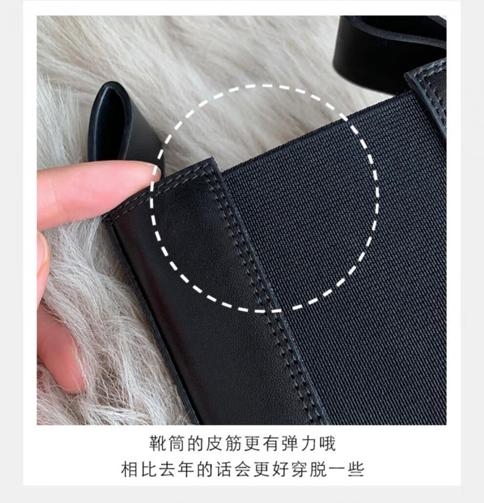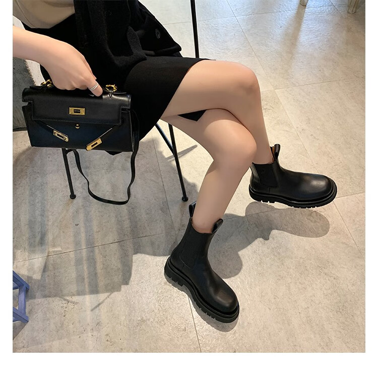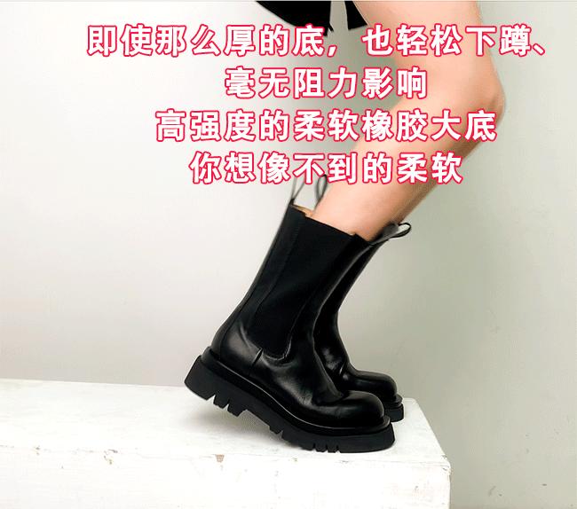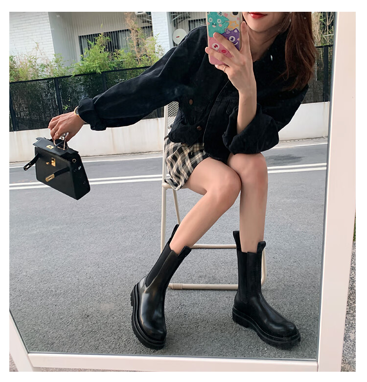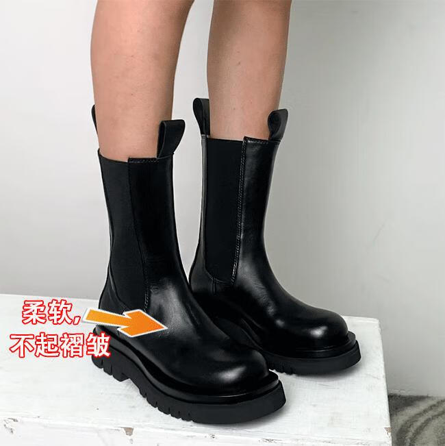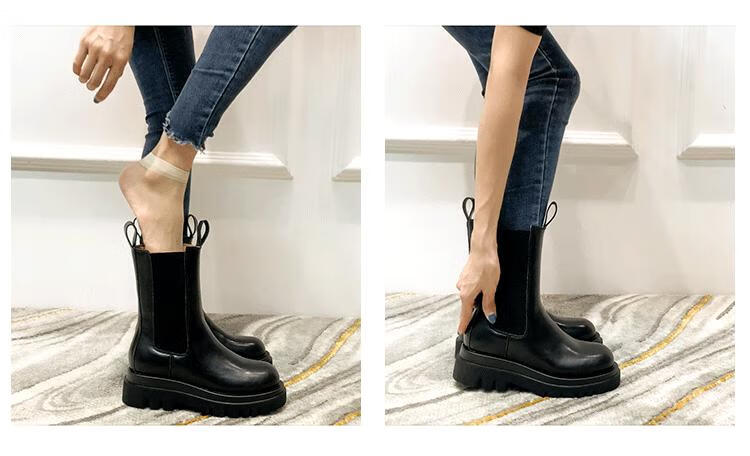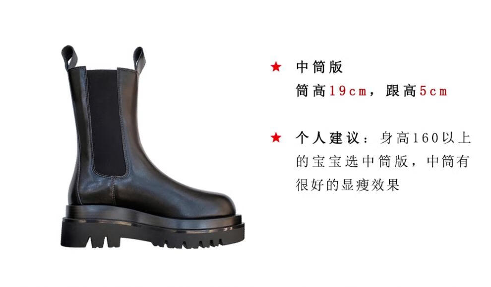 稻草人(MEXICAN)小个子厚底马丁靴女2026秋冬季新款内增高烟筒靴中筒切尔西短靴 黑色 【中筒】 35