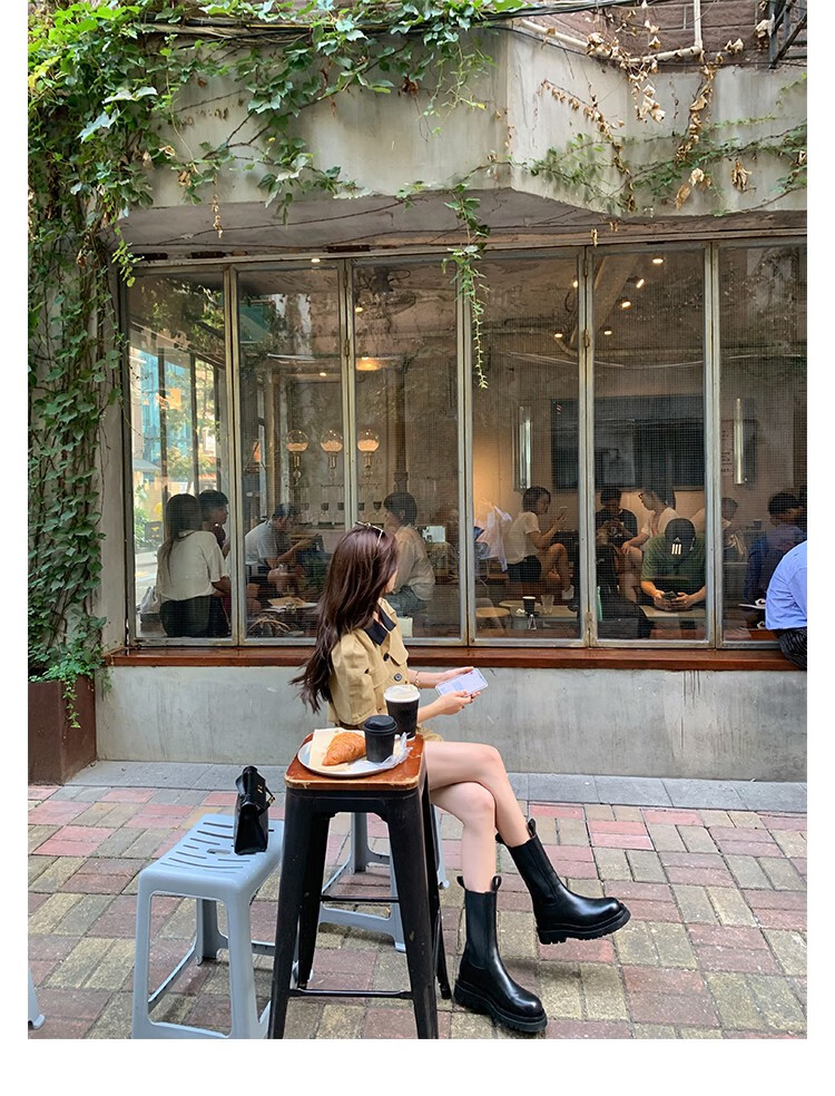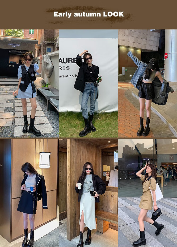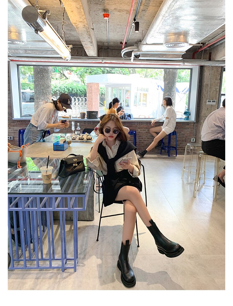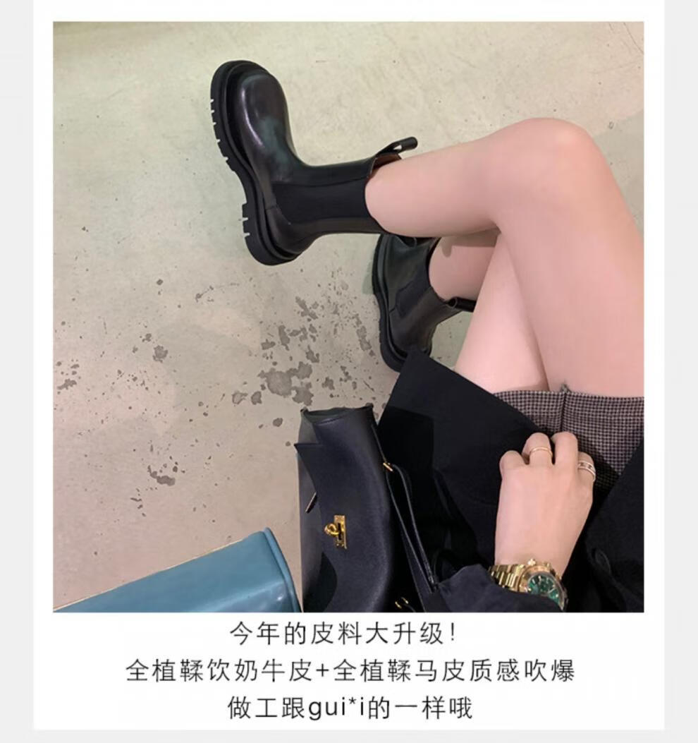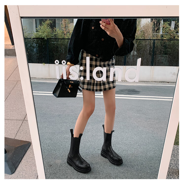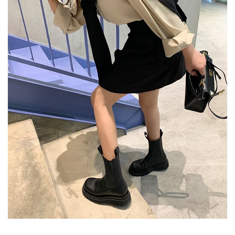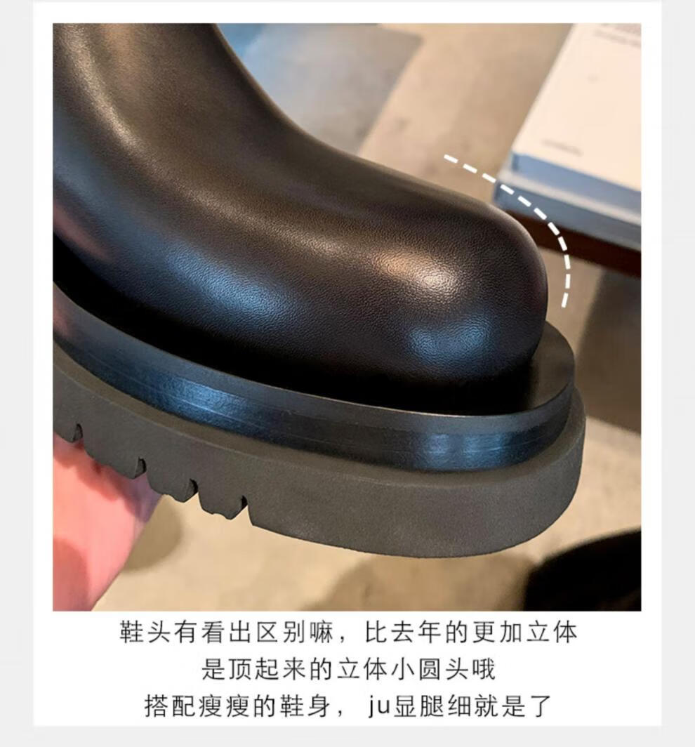 稻草人(MEXICAN)小个子厚底马丁靴女2026秋冬季新款内增高烟筒靴中筒切尔西短靴 黑色 【中筒】 35