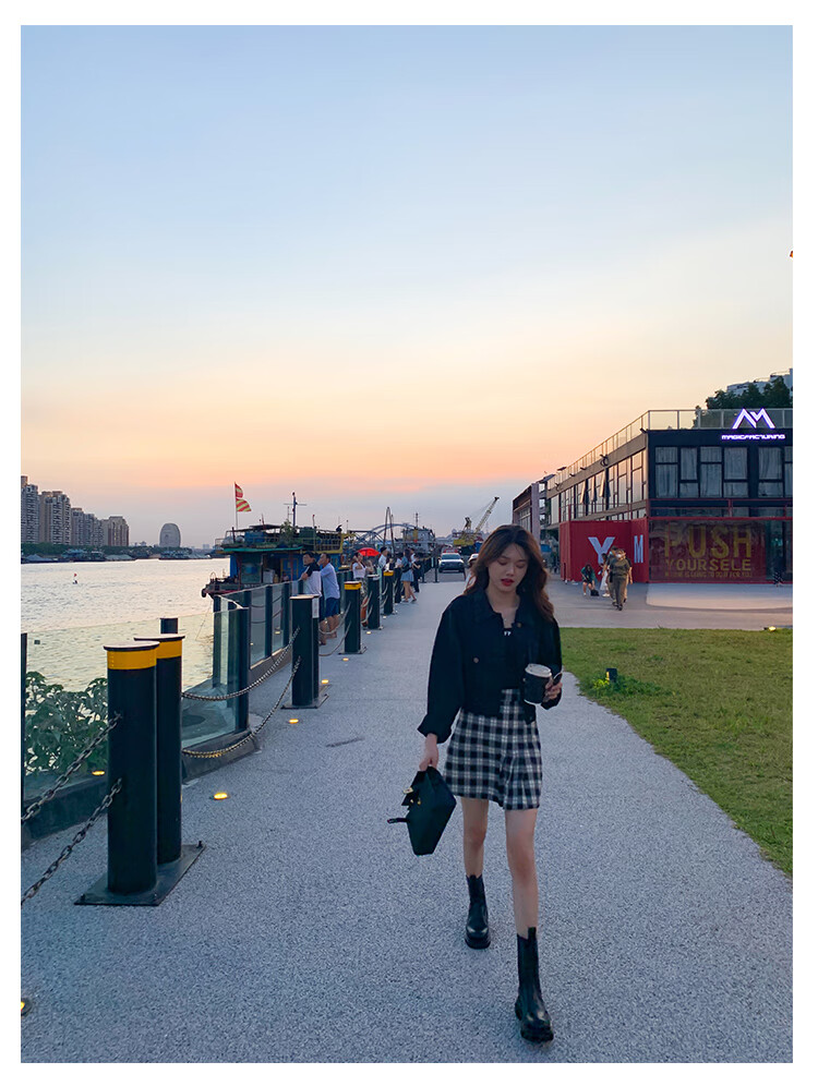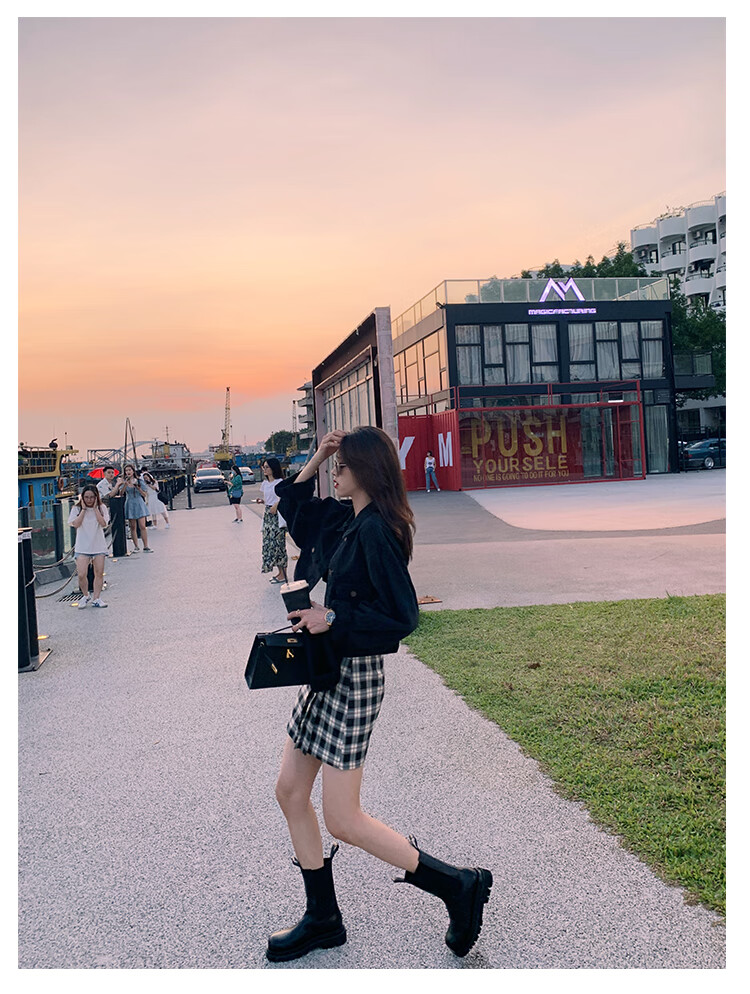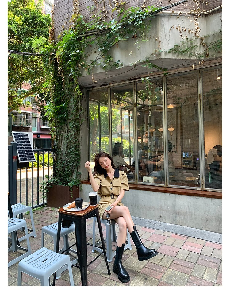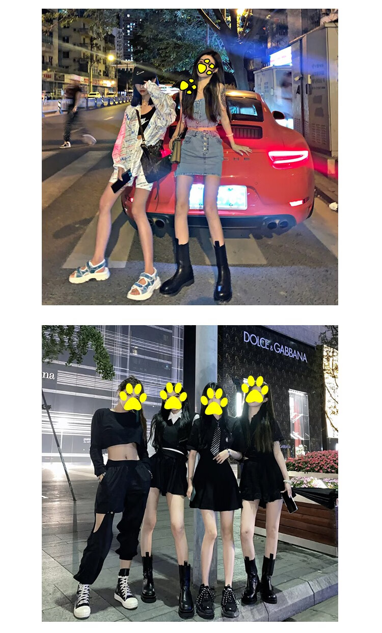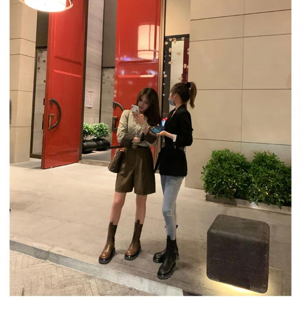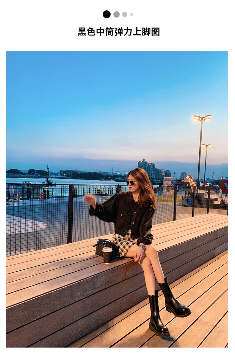 稻草人(MEXICAN)小个子厚底马丁靴女2026秋冬季新款内增高烟筒靴中筒切尔西短靴 黑色 【中筒】 35