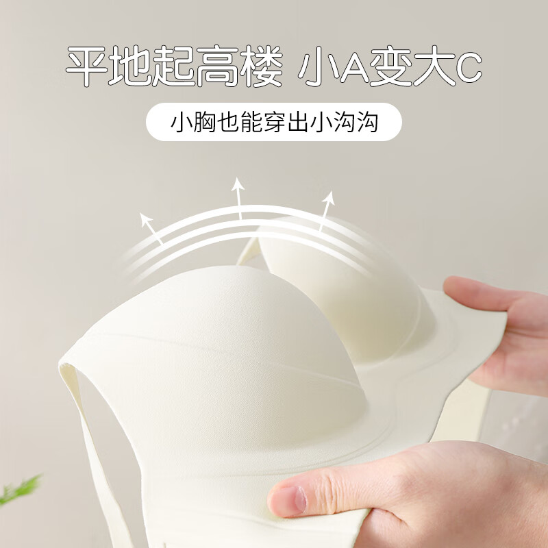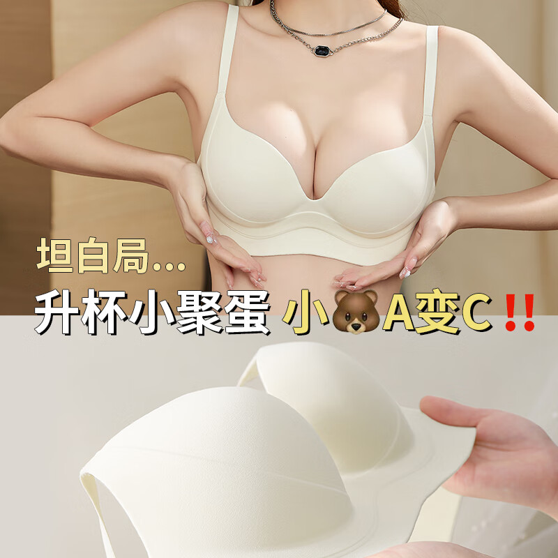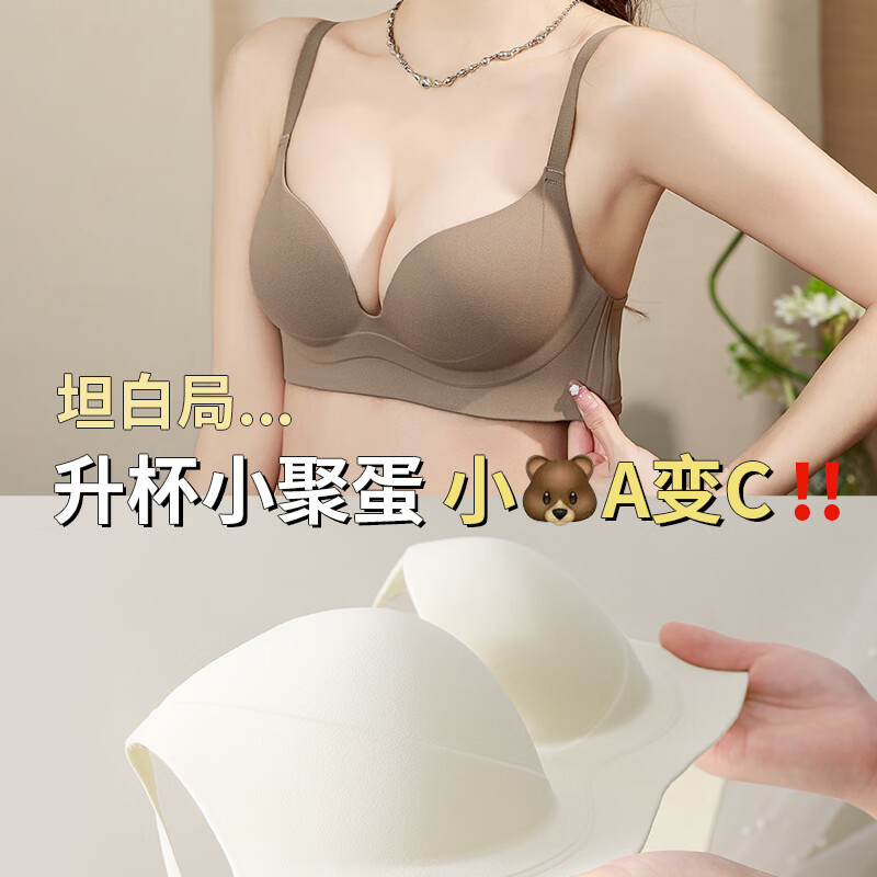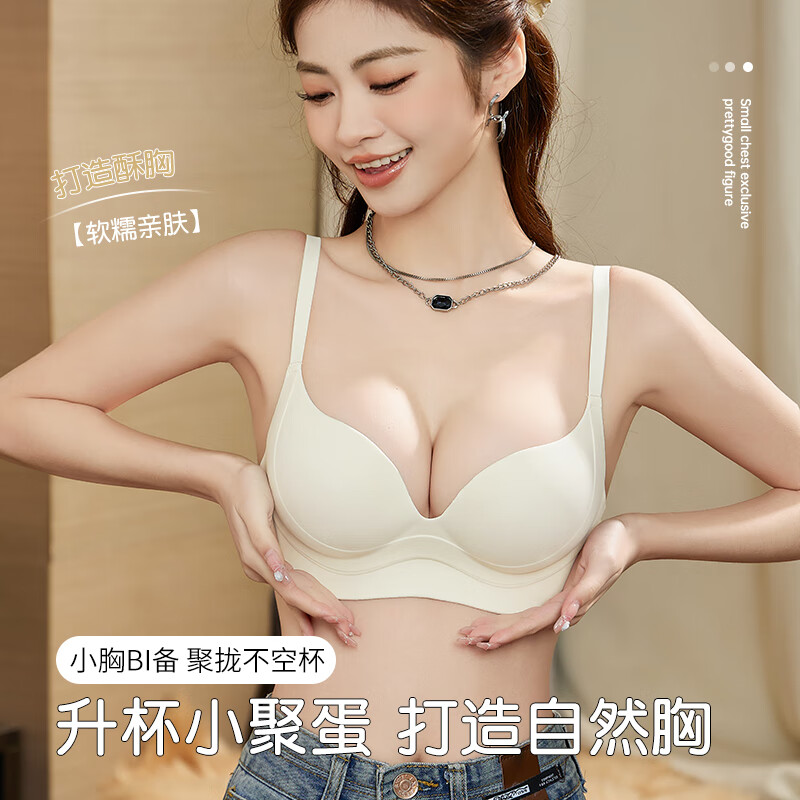 洁丽雅【升杯小聚蛋】 立体软支撑提拉上托小胸透气聚拢内衣无钢圈文胸 香槟色 70B