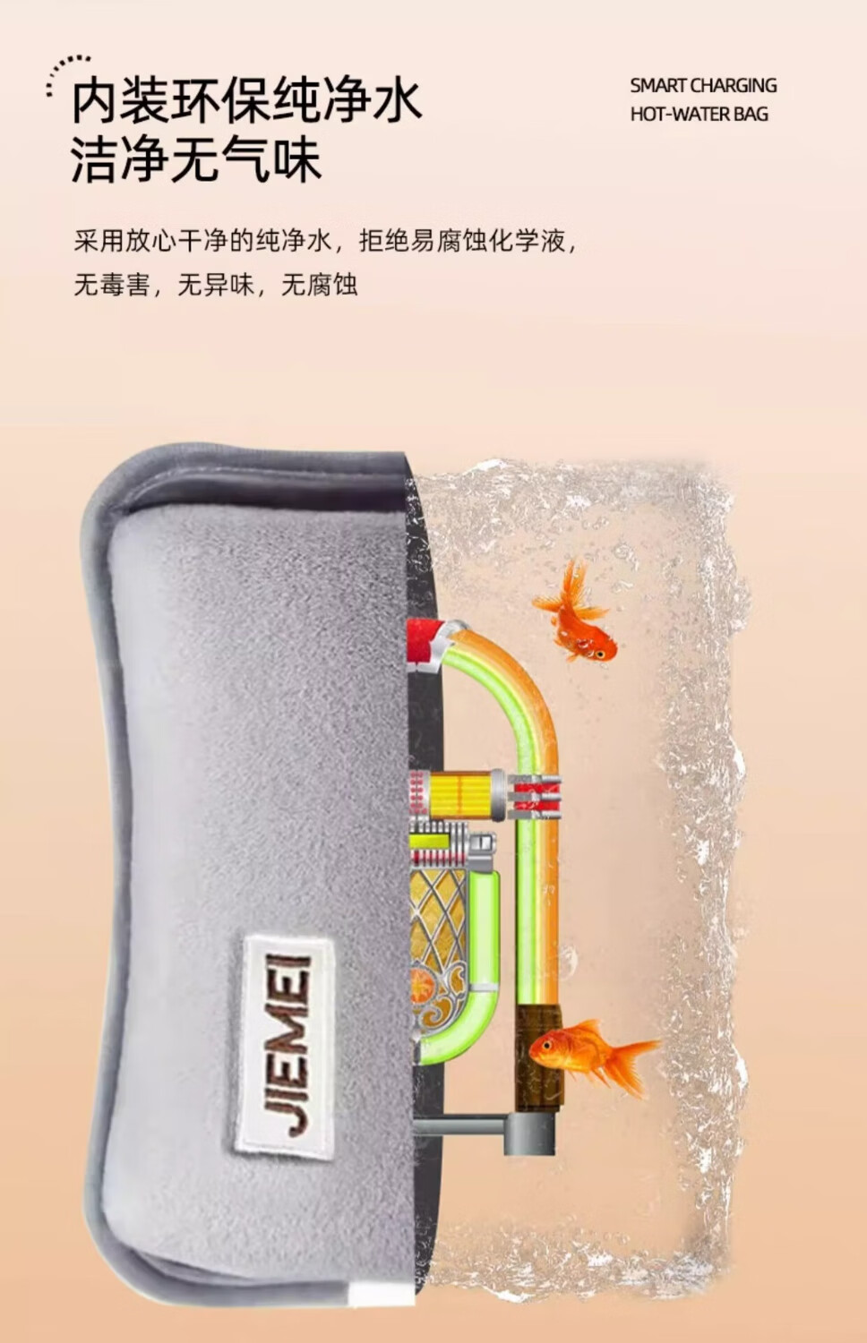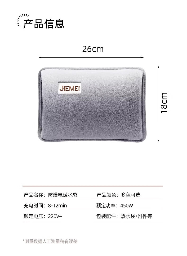 充电式双插手暖手宝毛绒可爱自动断电防爆女生暖宫敷肚子暖水袋 龙猫 灰色(单个,四个颜色选一个,填写备注)