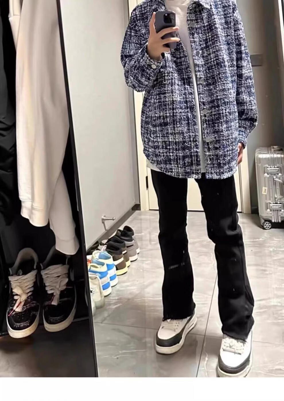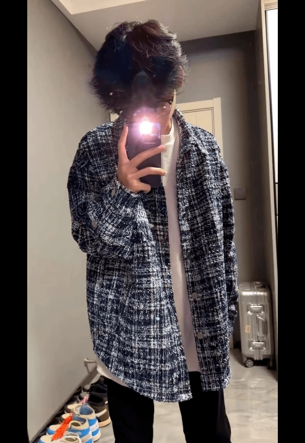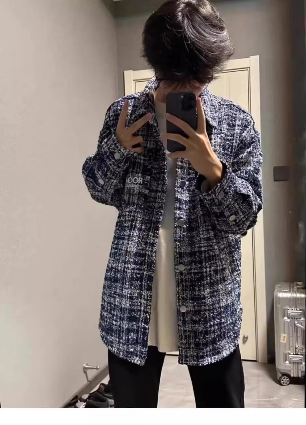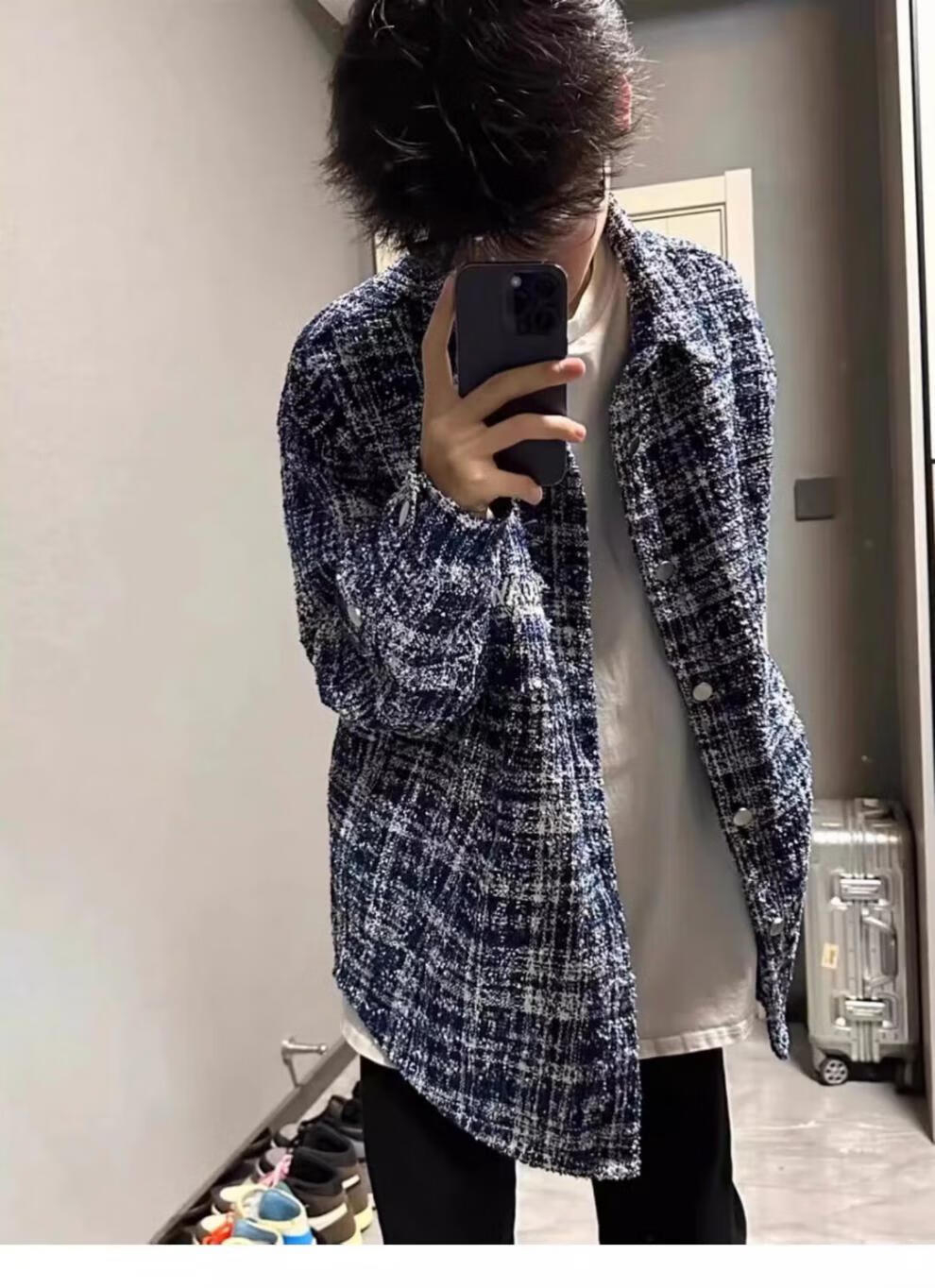 迪伽达秋冬季外套时尚百搭设计感小香风编织夹克男美式复古格子长袖上衣 W1042蓝色 L 【100-120斤】