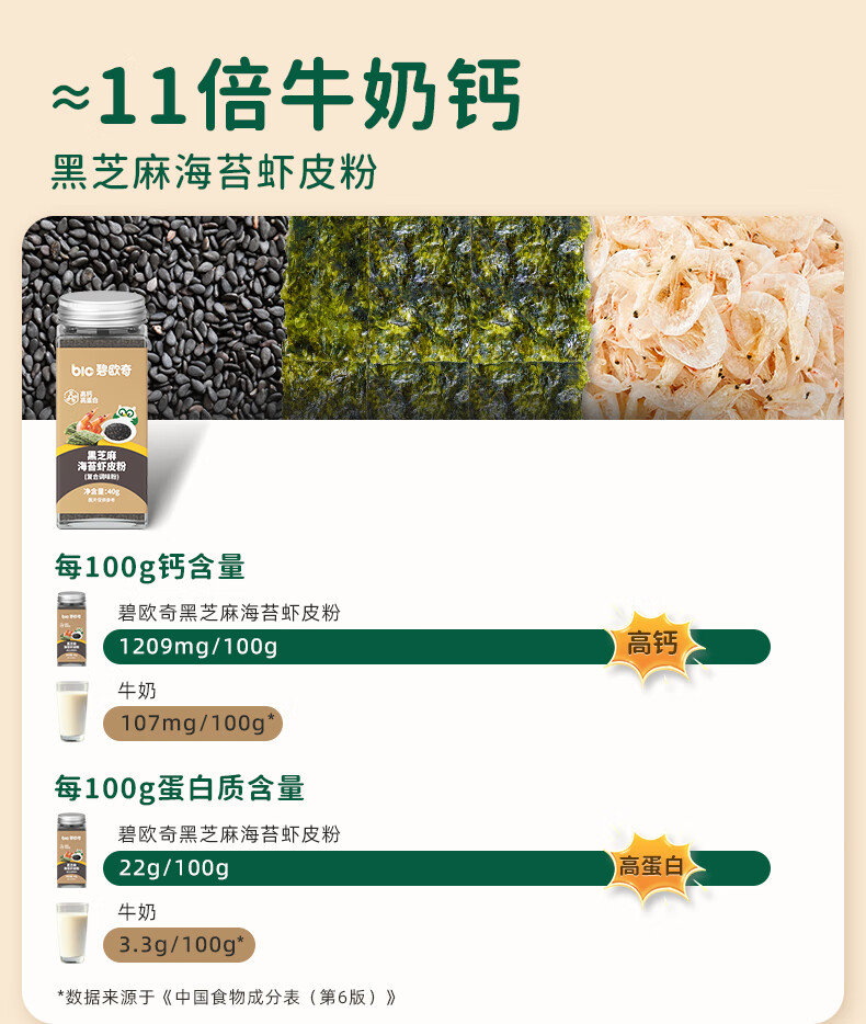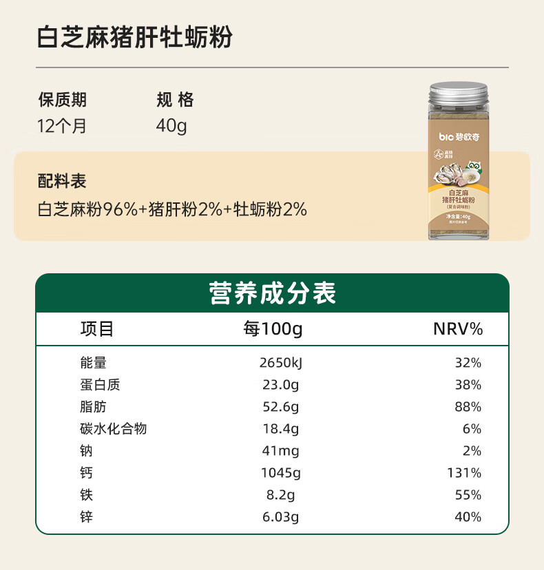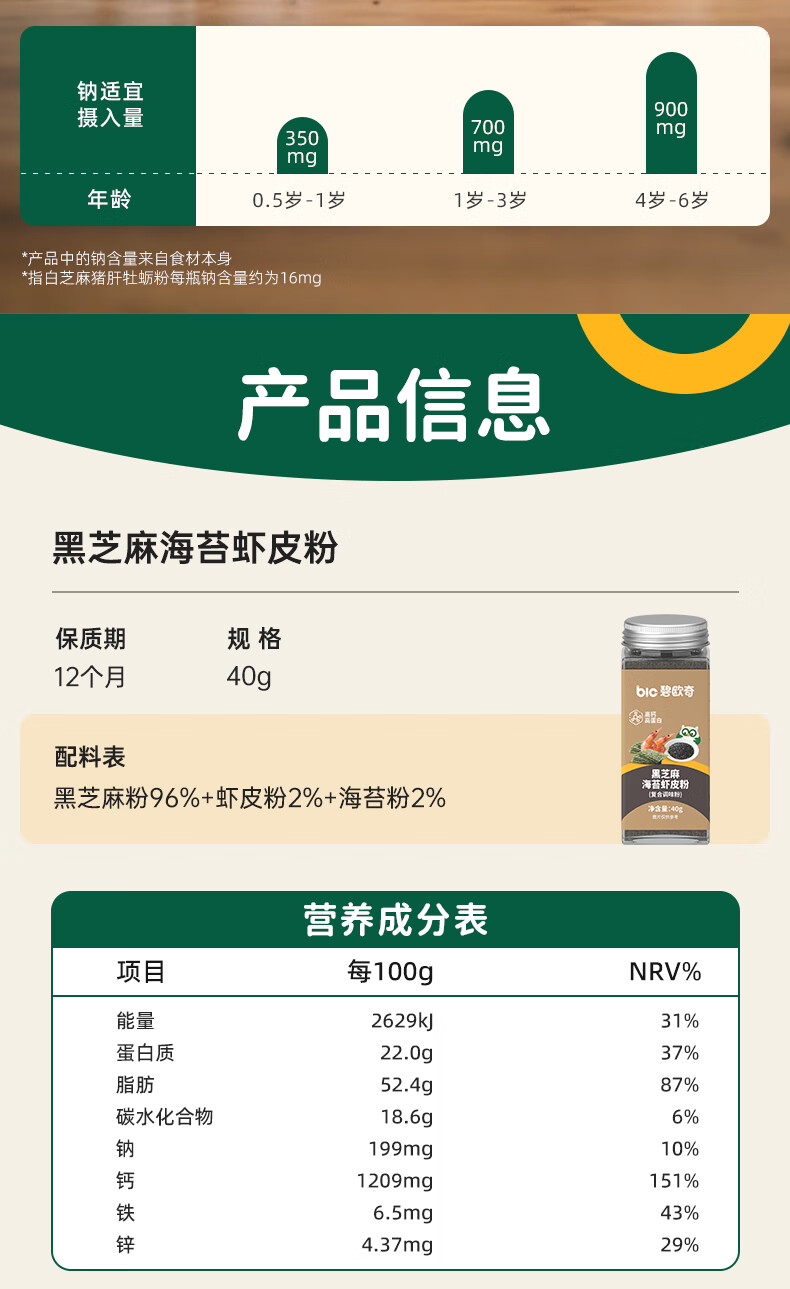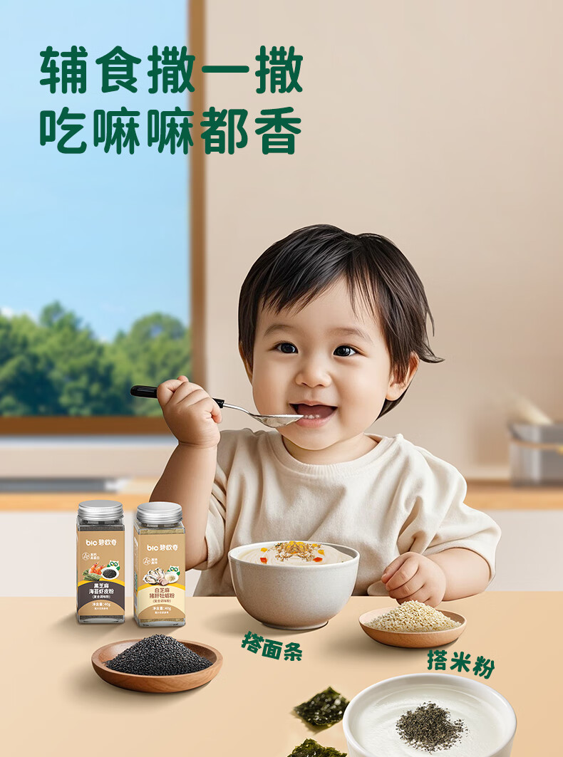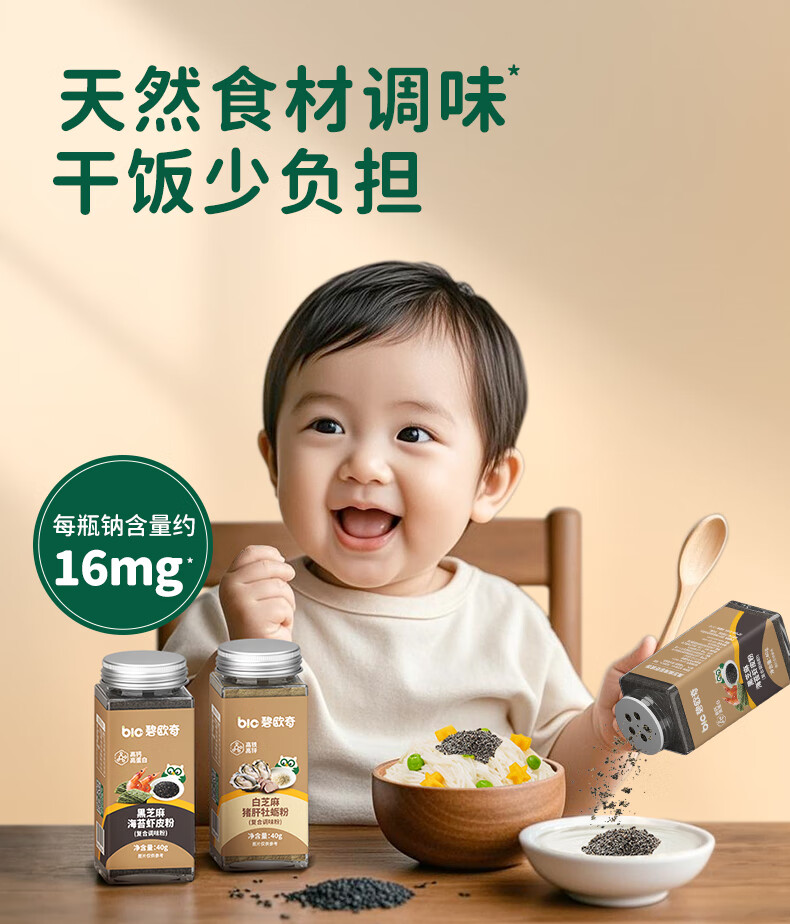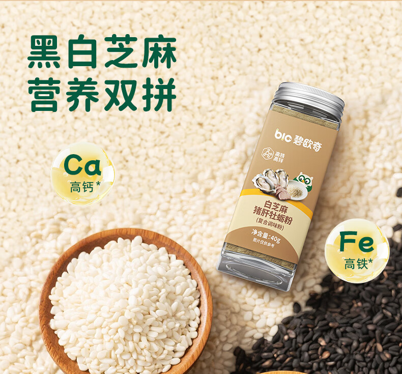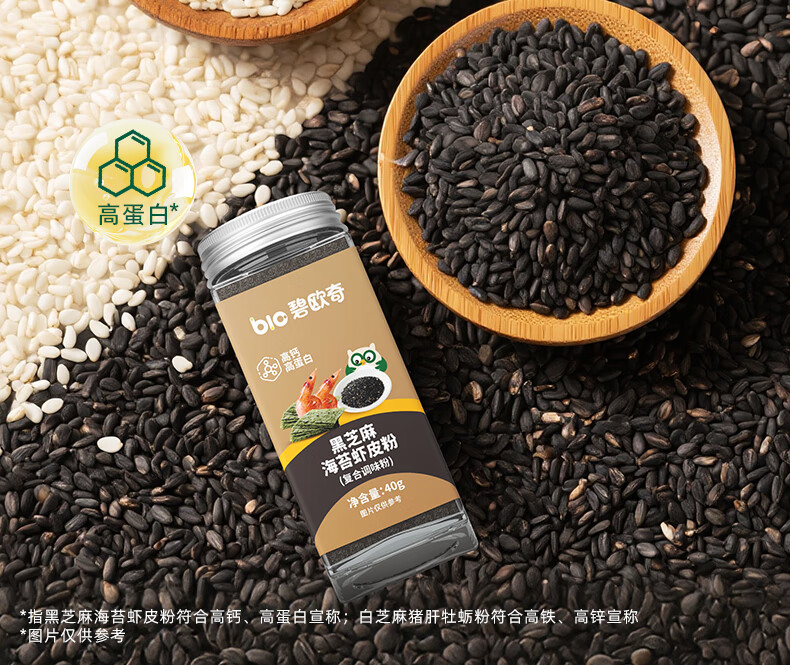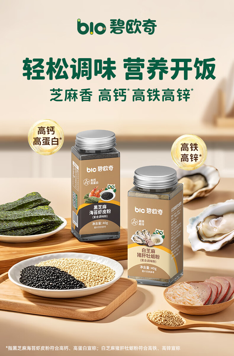 碧欧奇黑白芝麻粉佐餐料调味品高钙高蛋白高铁高锌送宝宝婴幼儿童辅食谱 黑芝麻海苔虾皮粉40g*2