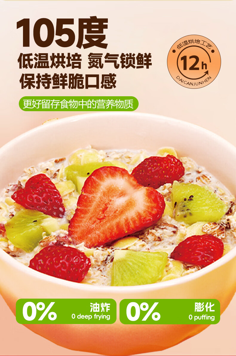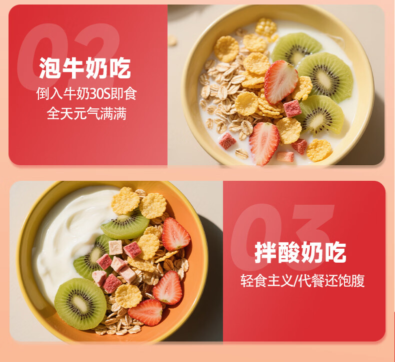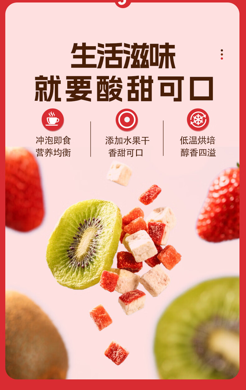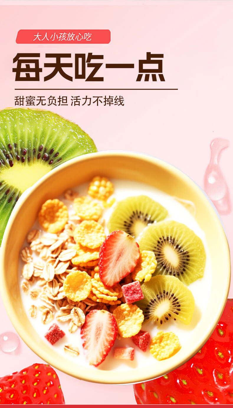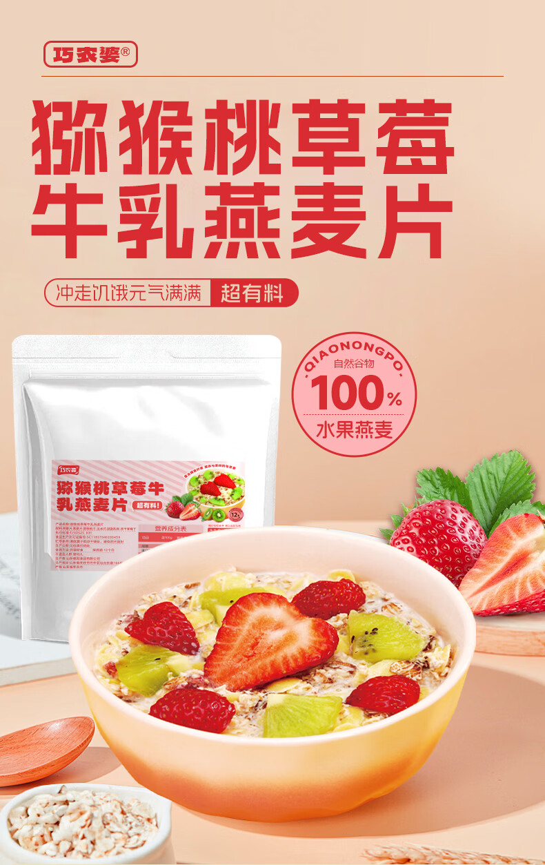 巧农婆水果麦片早餐冲饮谷物代餐营养减肥代餐无添加蔗糖冲泡即食燕麦片 买2送1【三大包】猕猴桃草莓燕麦片