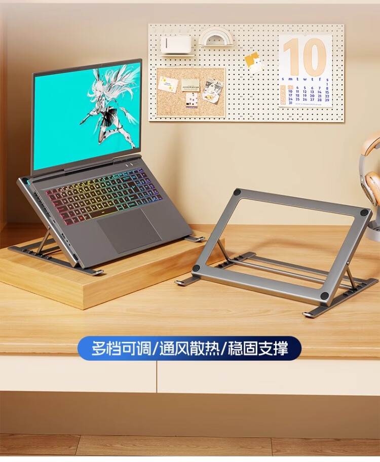 尔思家笔记本电脑支架升降散热增高架立式调节底座置物架支撑悬空托架 枪灰色