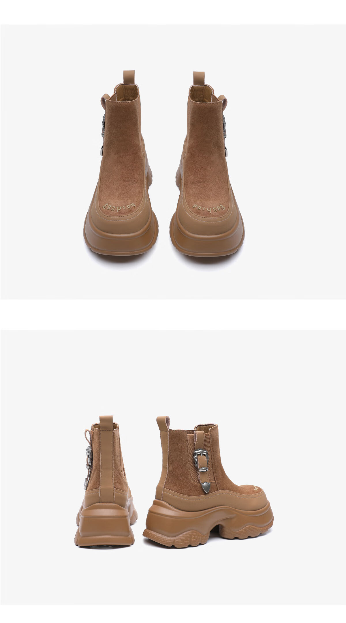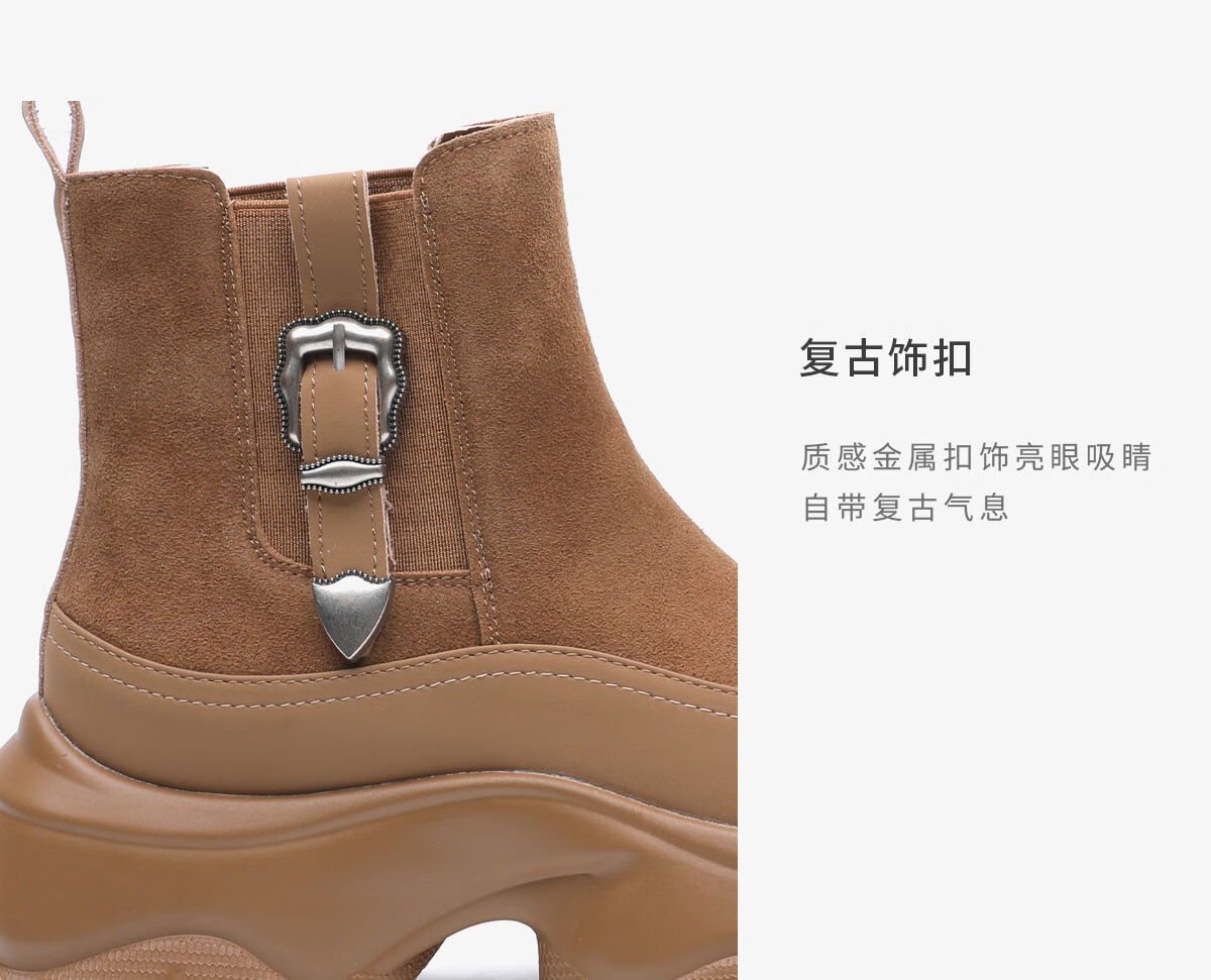 月芽儿切尔西短靴女2025新款增高切尔西靴短筒猫跟加绒马丁靴 绒里黄色04T 38