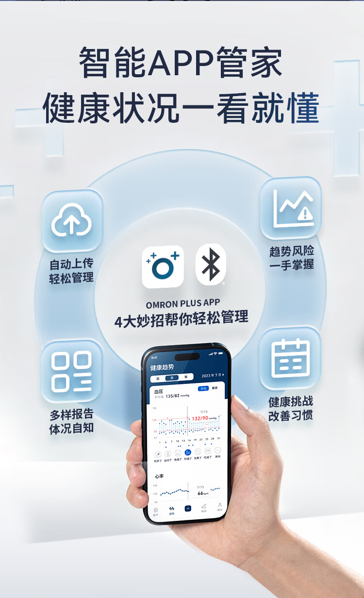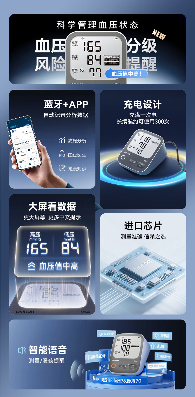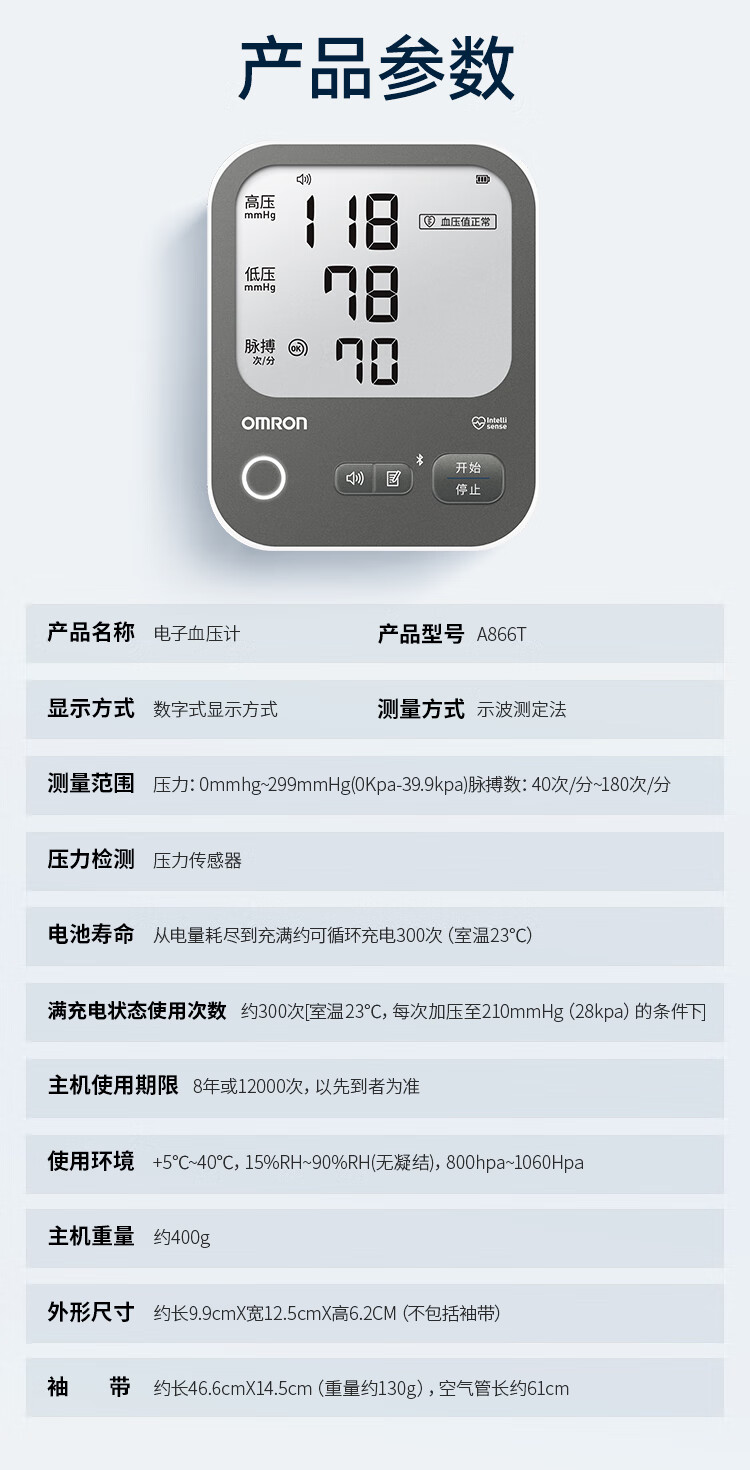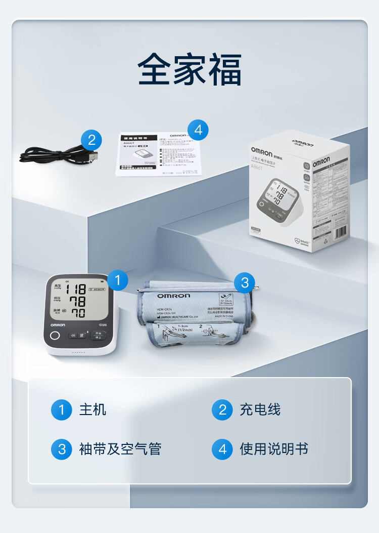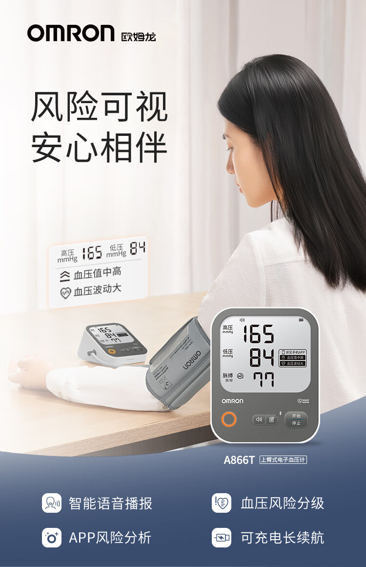 欧姆龙(OMRON)充电语音电子血压计血压仪家用蓝牙医用测量仪老人A866T 年货