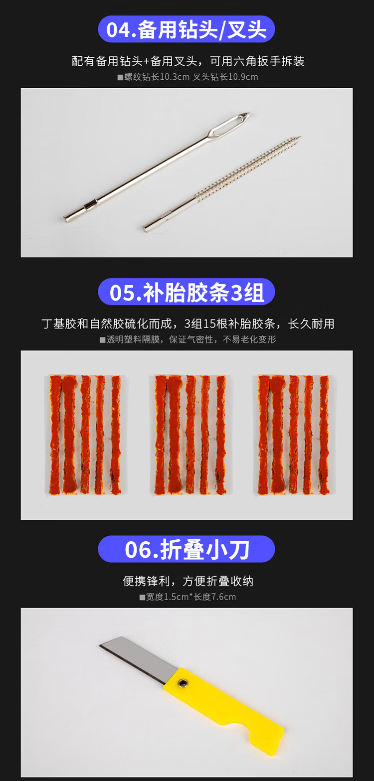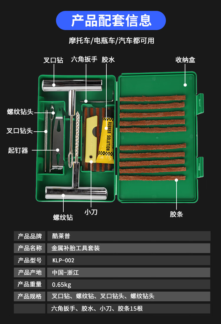 酷莱普补胎工具套装(金属版)汽车补胎真空胎补胎胶条应急救援 KLP-002