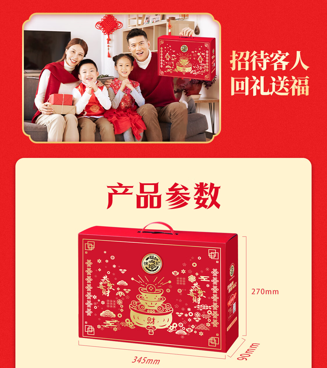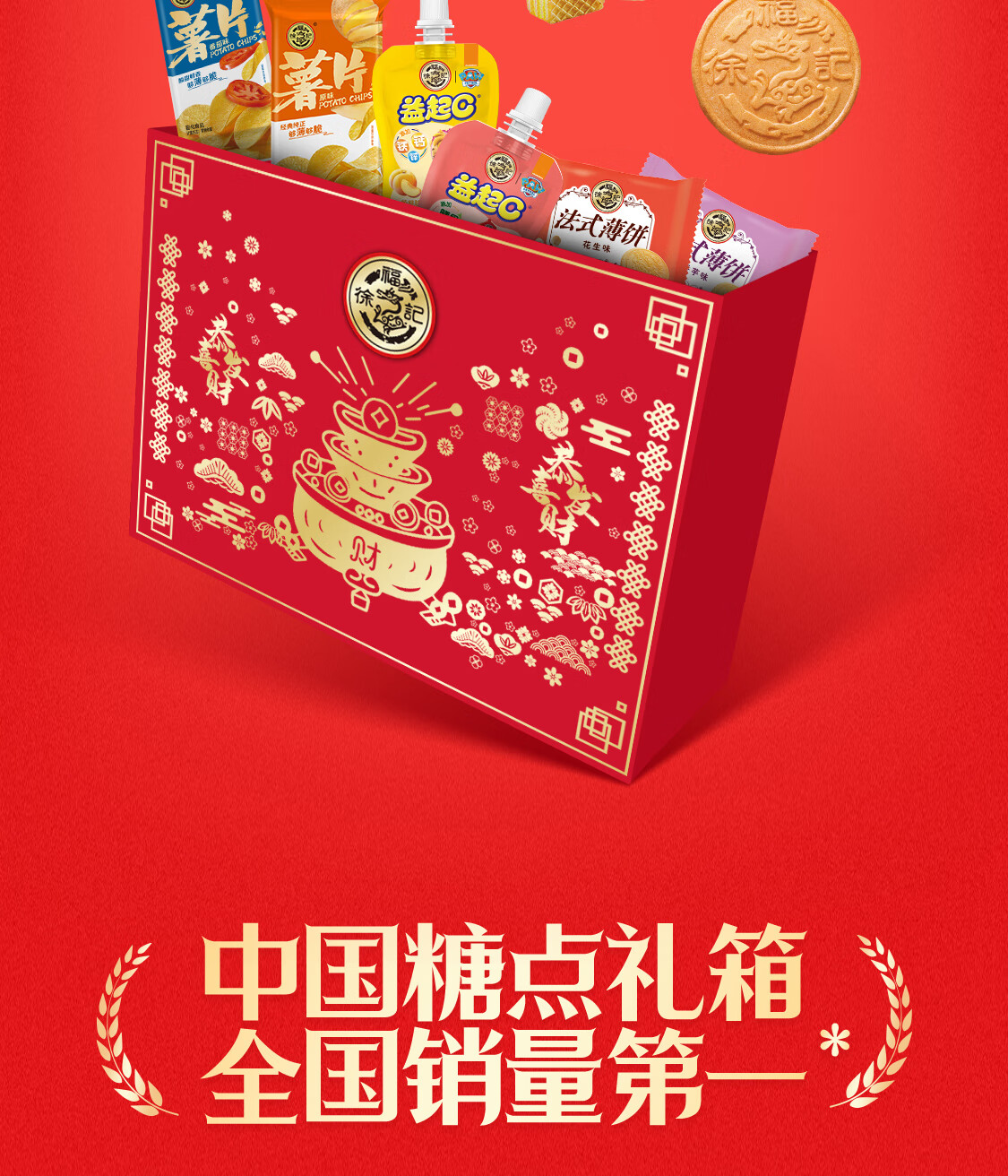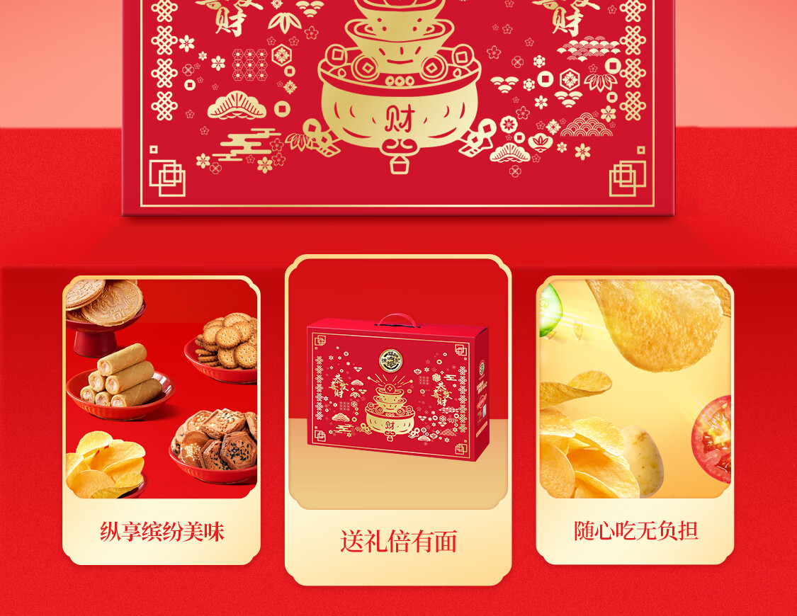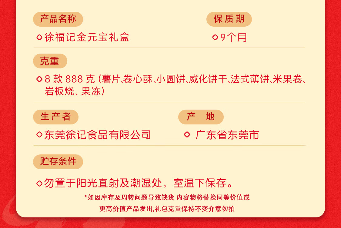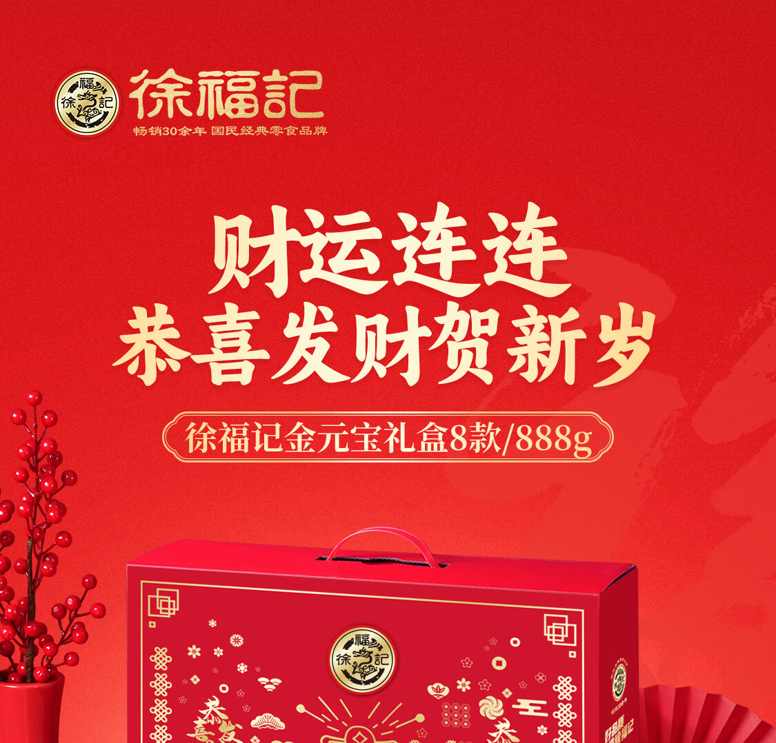 徐福记【年货礼盒】多口味混合零食礼盒 新年礼盒团购 零食大礼包 【甄选8味】金元宝礼盒/888g