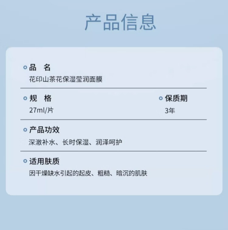 花印面膜补水保湿男女士改善熬夜肌纯棉专利膜布护肤品新年礼物 山茶花面膜30片