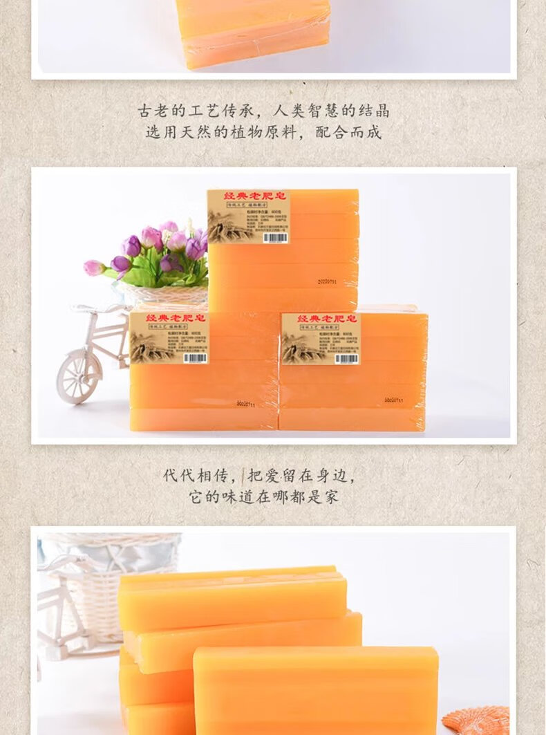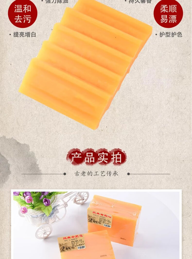 老肥皂洗衣皂家用实惠装一批大块传统老式洗衣服黄透明皂 180g*5块