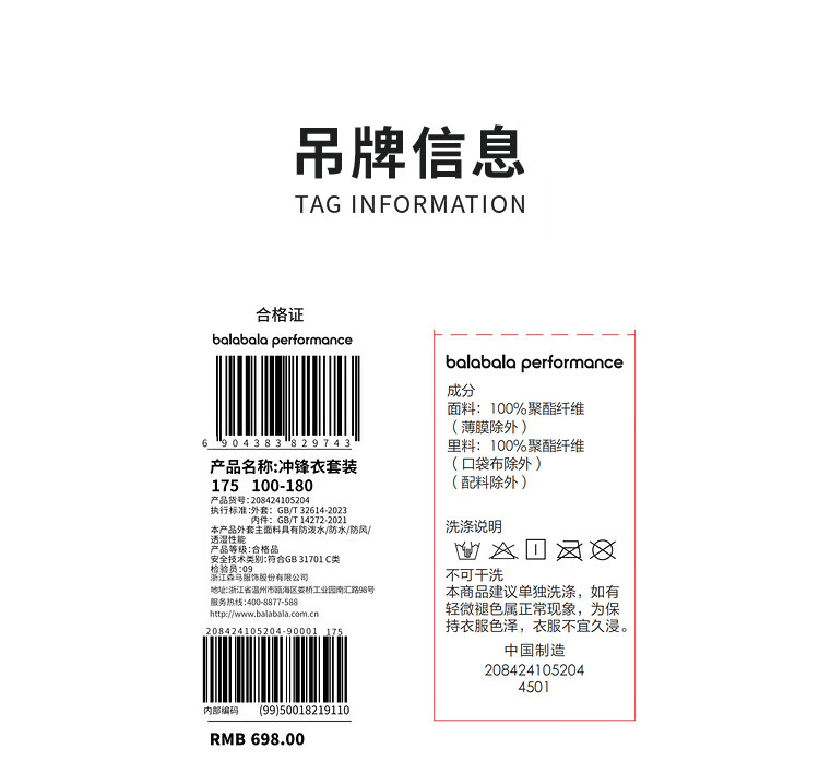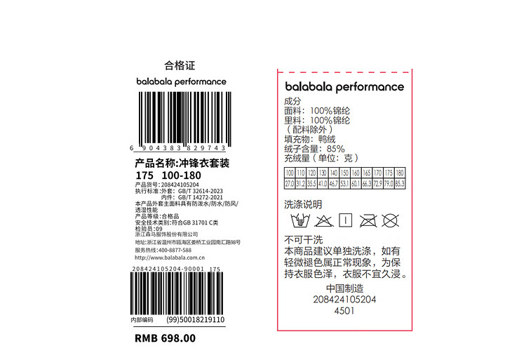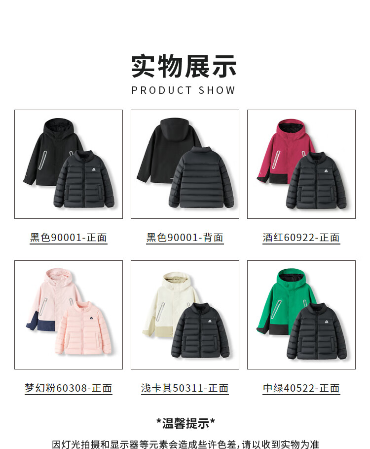 巴拉巴拉运动24冬儿童三合一冲锋衣轻羽绒撞色两件套【bp】208424105204