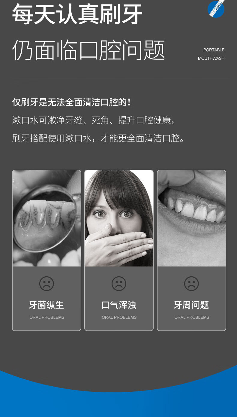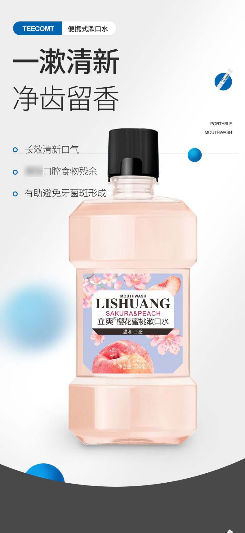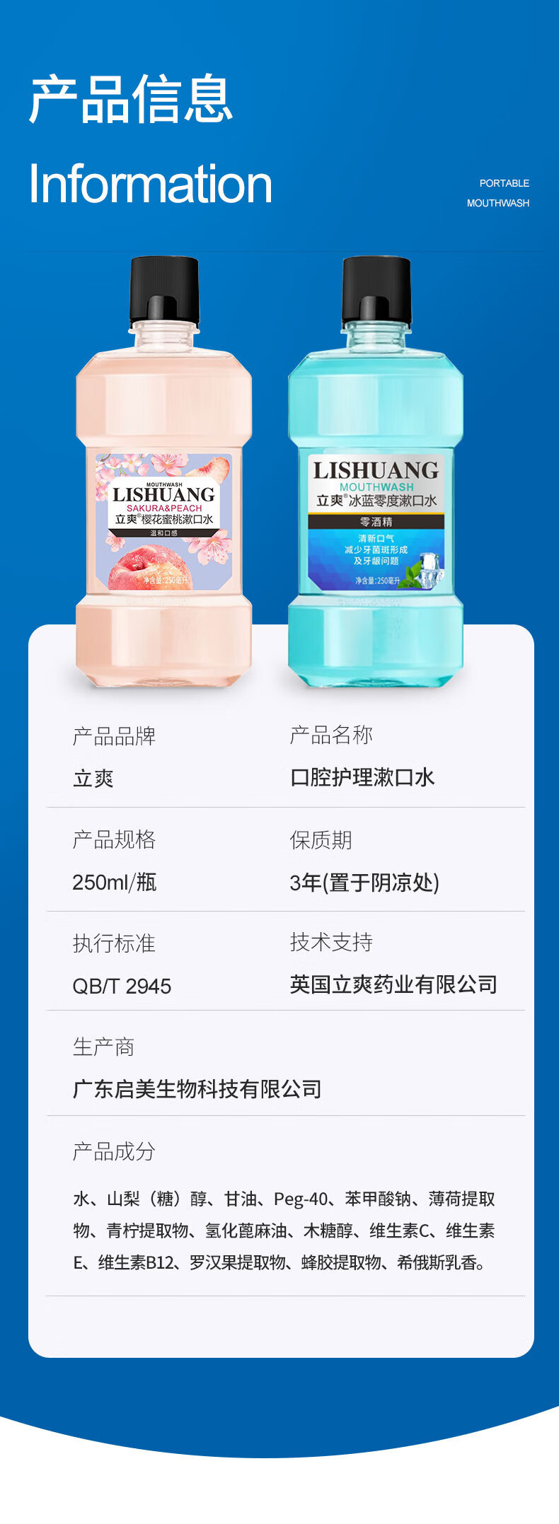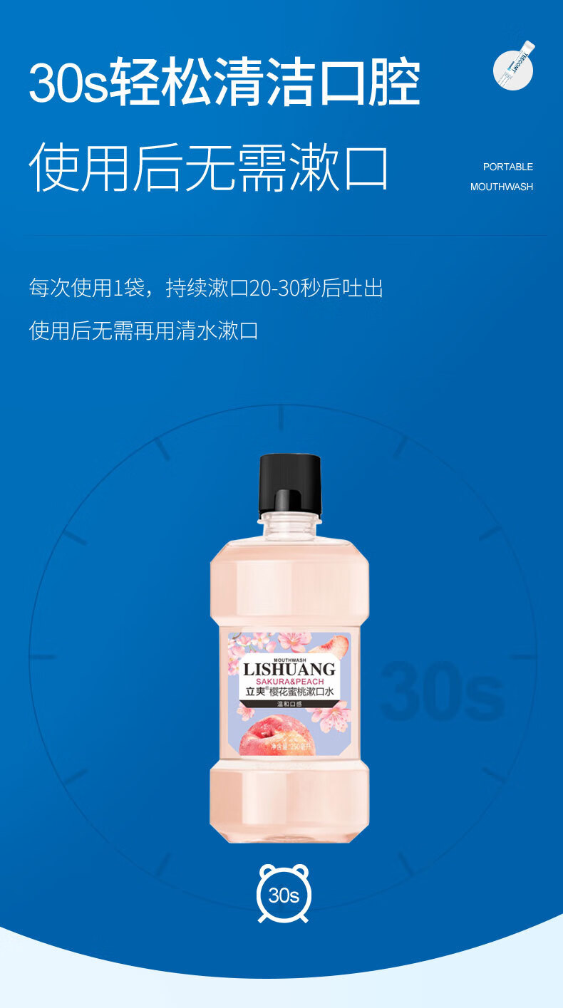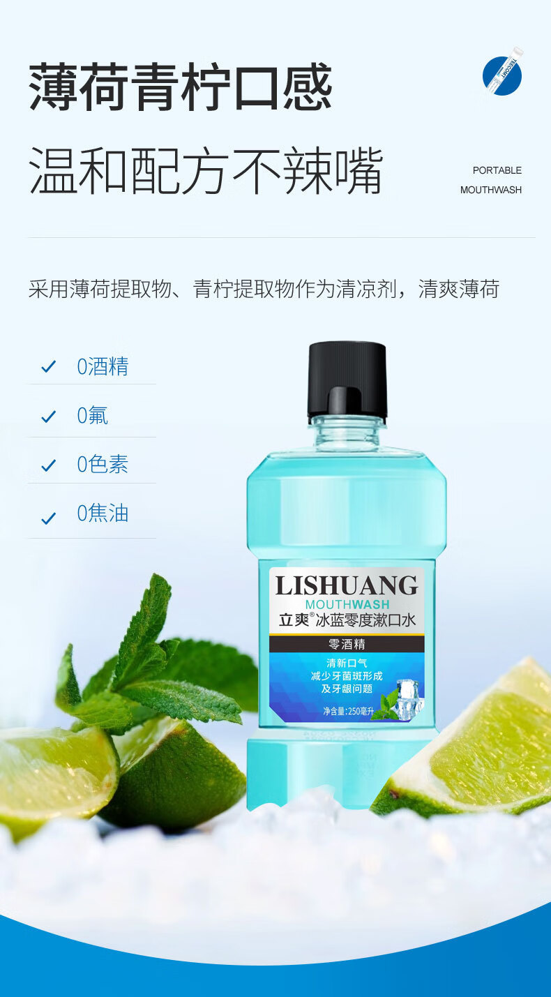 漱口水冰蓝劲爽零度漱口水清洁口腔清新口气保护牙龈减少牙菌斑 薄荷+蜜桃 2瓶500ml