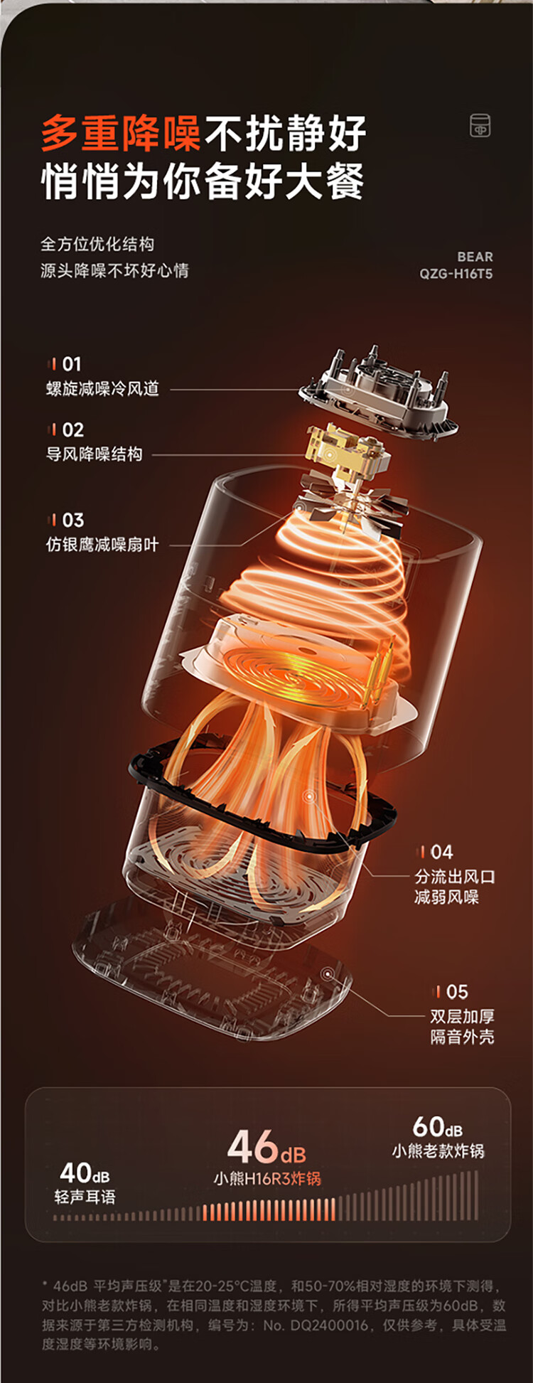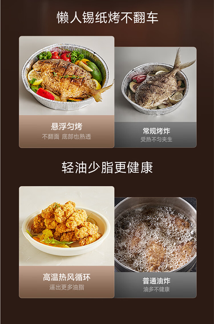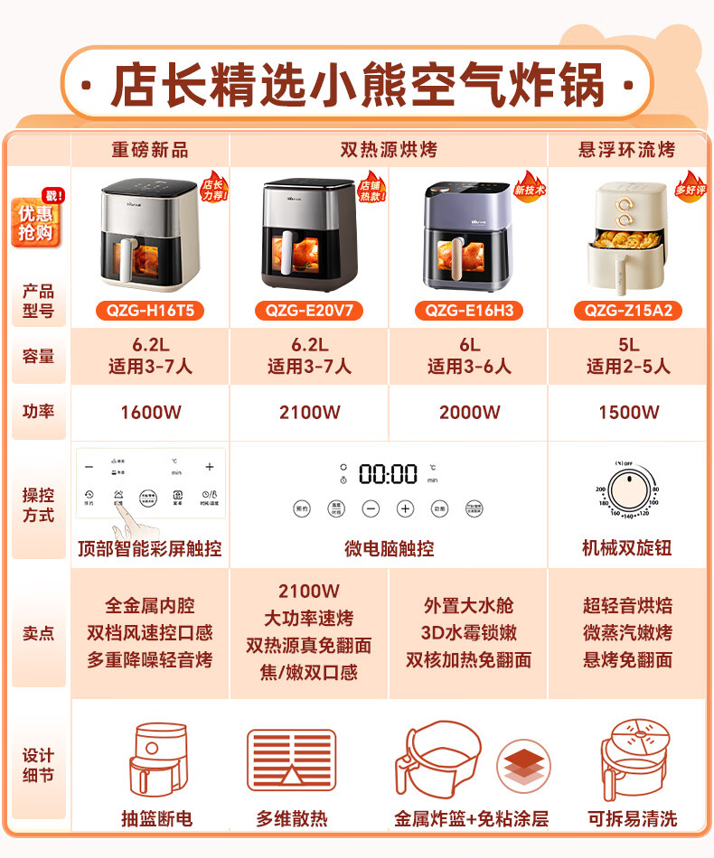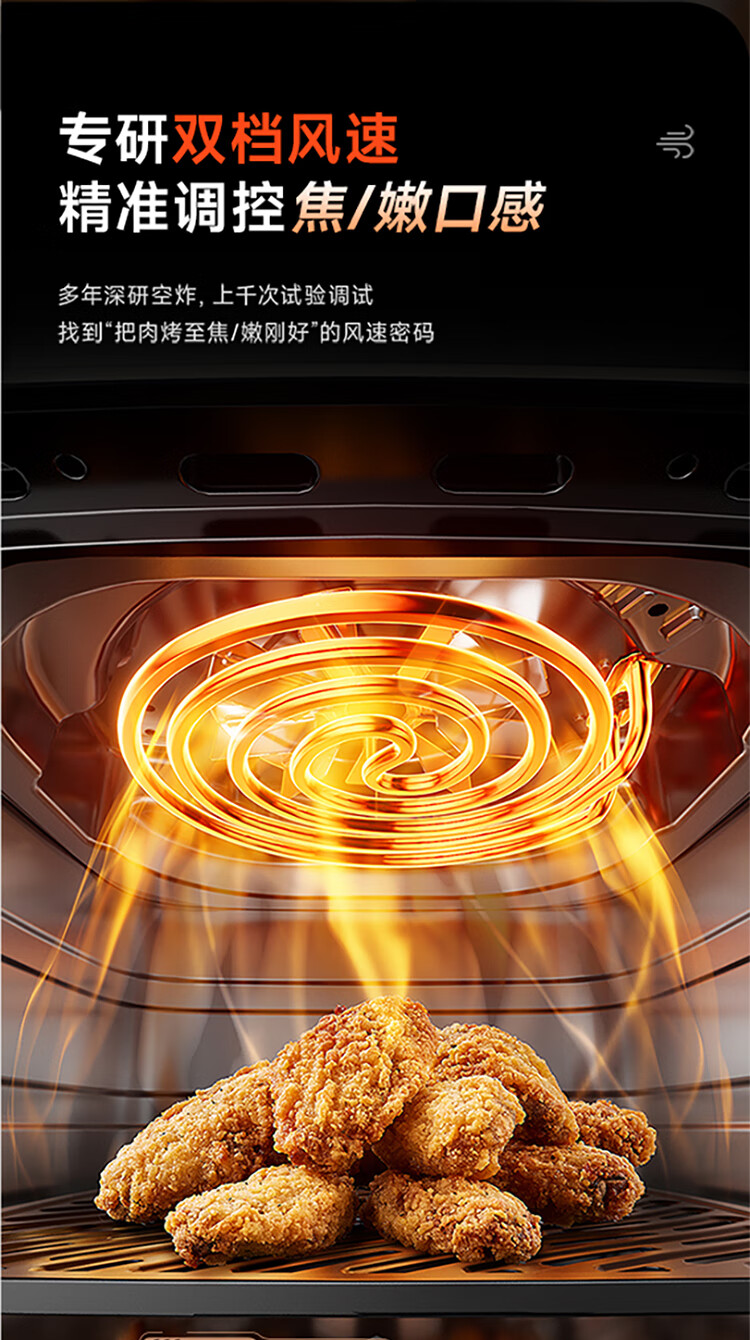 小熊(Bear)空气炸锅 不用翻面 双档风速金属内腔 6.2L家用大容量蒸汽嫩炸 易操作可视炸烤一体机 QZG-H16T5