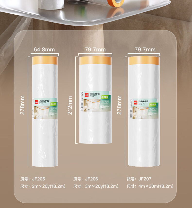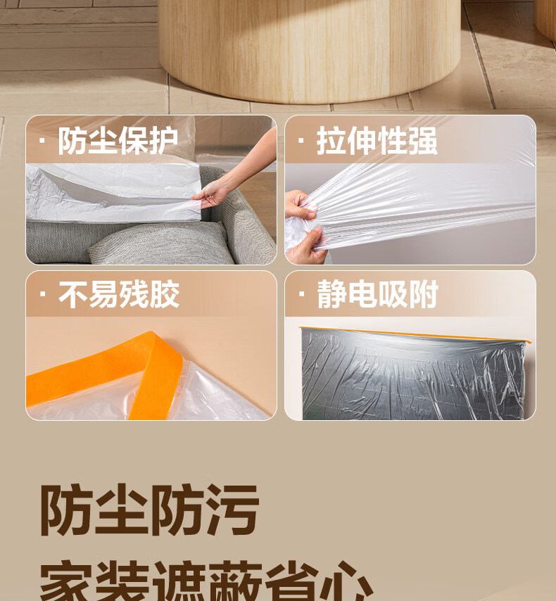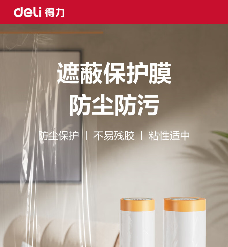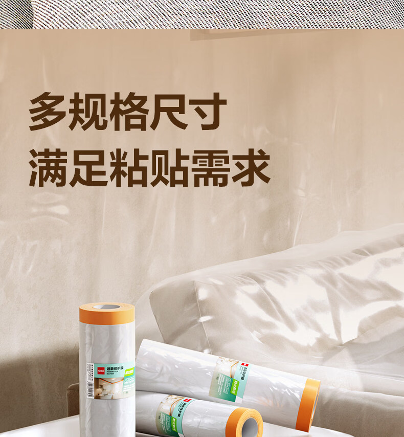 得力防尘膜防水防污宿舍防灰胶带家用防尘罩出行装修大扫除家具遮盖布 宽2米*长20米【电视机/桌椅/洗衣机可用】 无规格