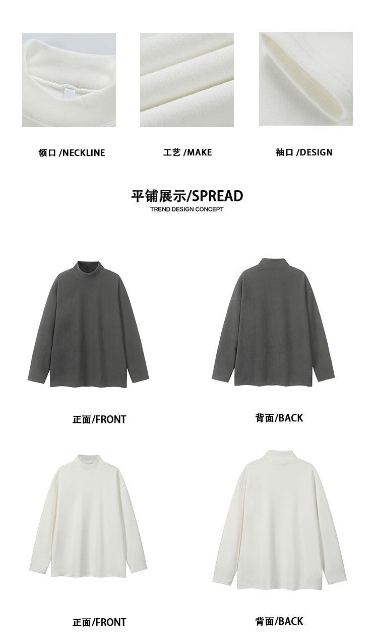 HIPANDA你好熊猫长袖T恤男2025秋冬新款圆领保暖长袖男女宽松打底衫T恤男 黑色-加绒 XL