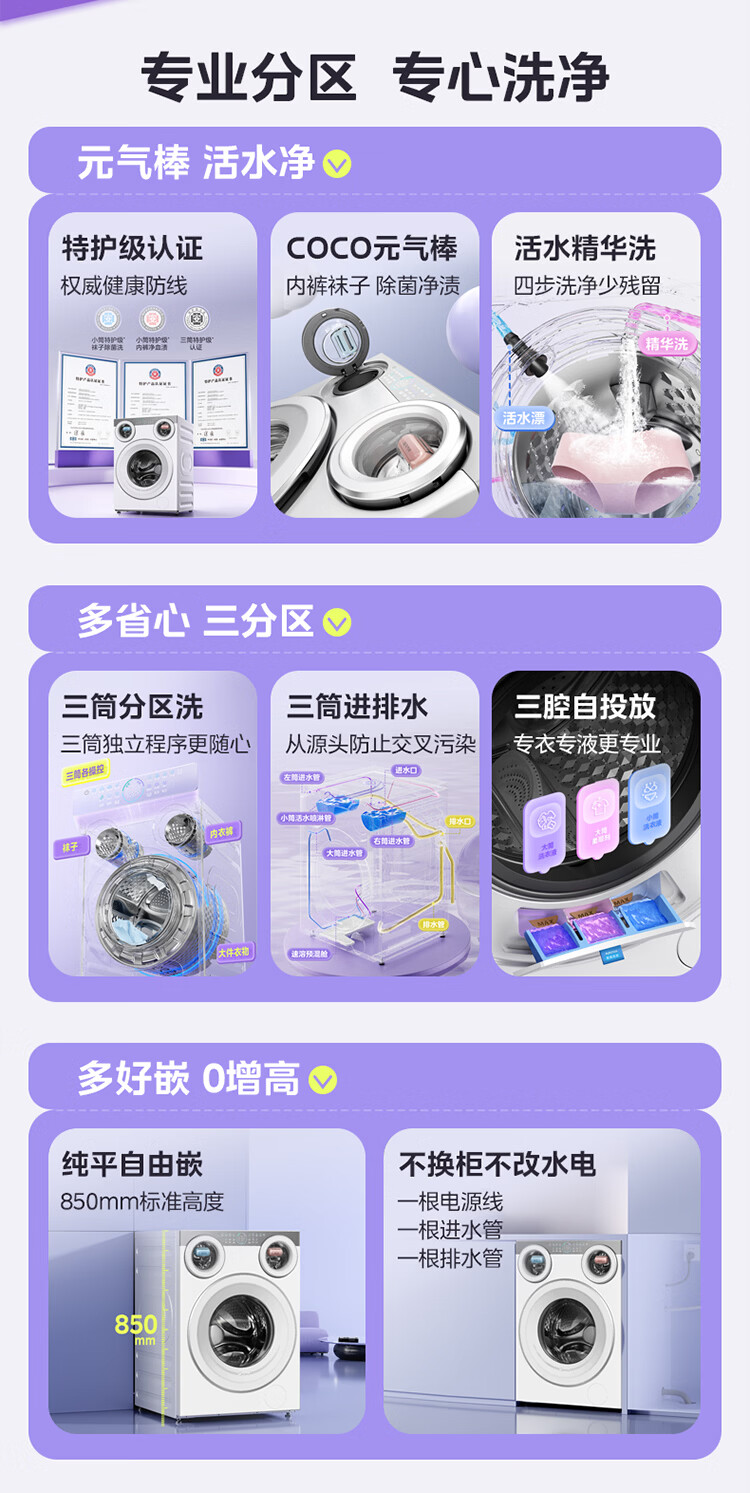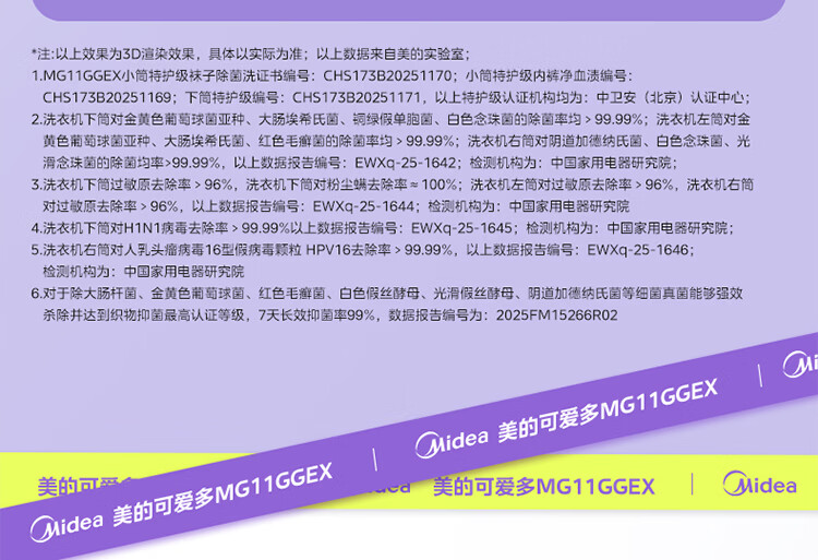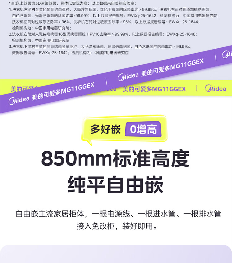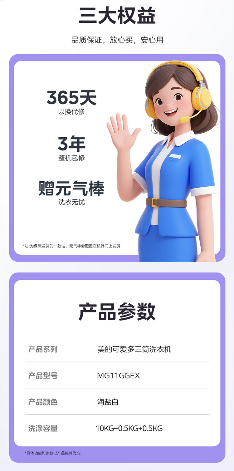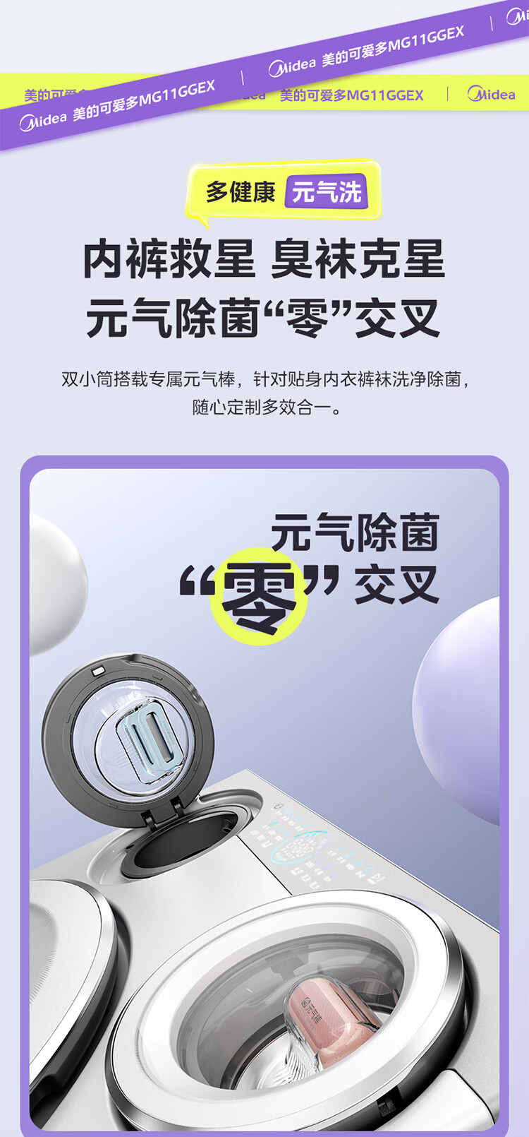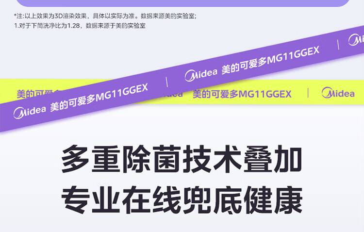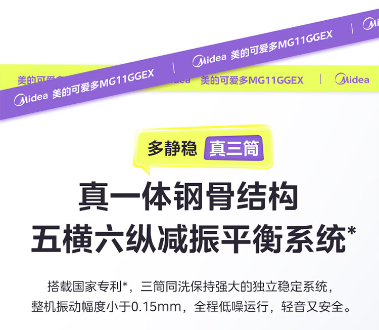 美的(Midea)可爱多滚筒洗衣机全自动滚筒单洗 11KG三筒内衣洗 MG11GGEX 三桶 活水精华 以旧换新 国家补贴