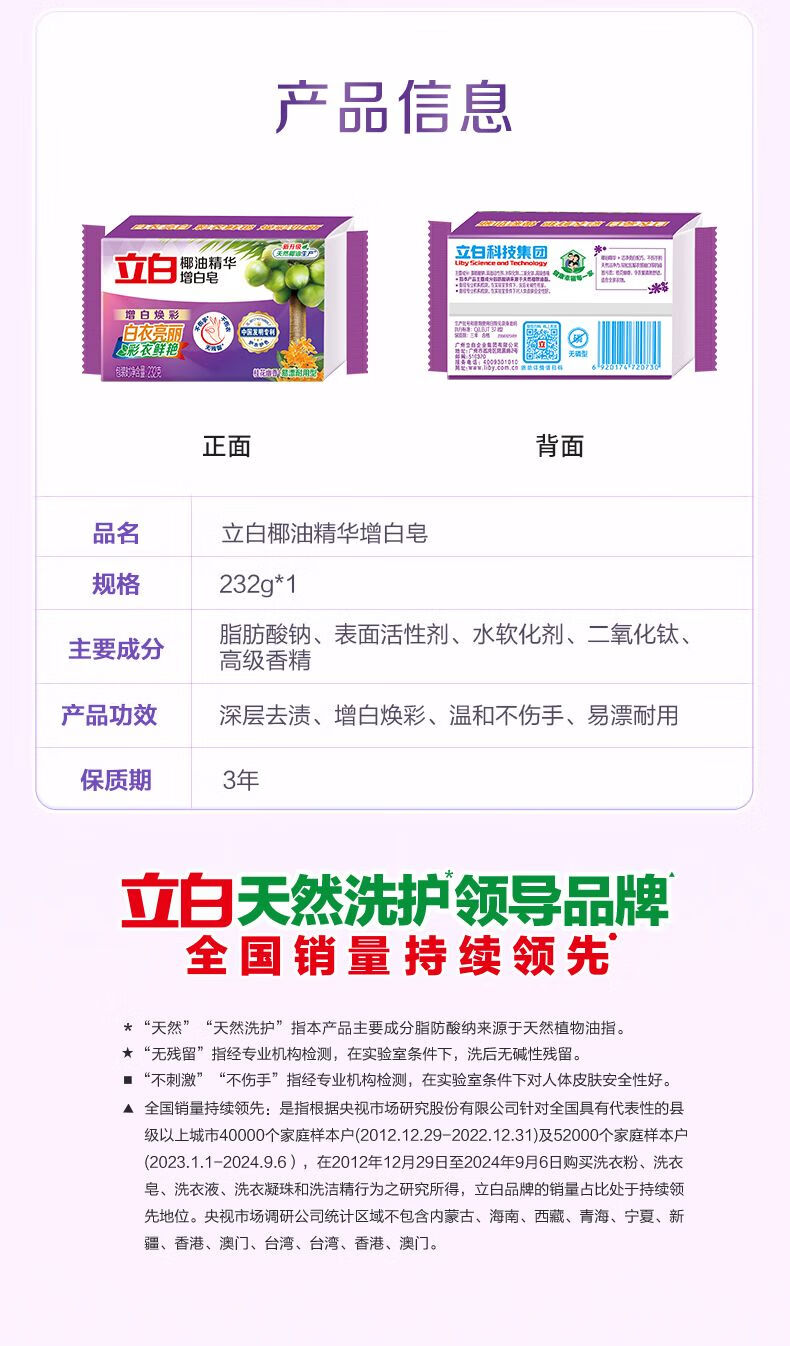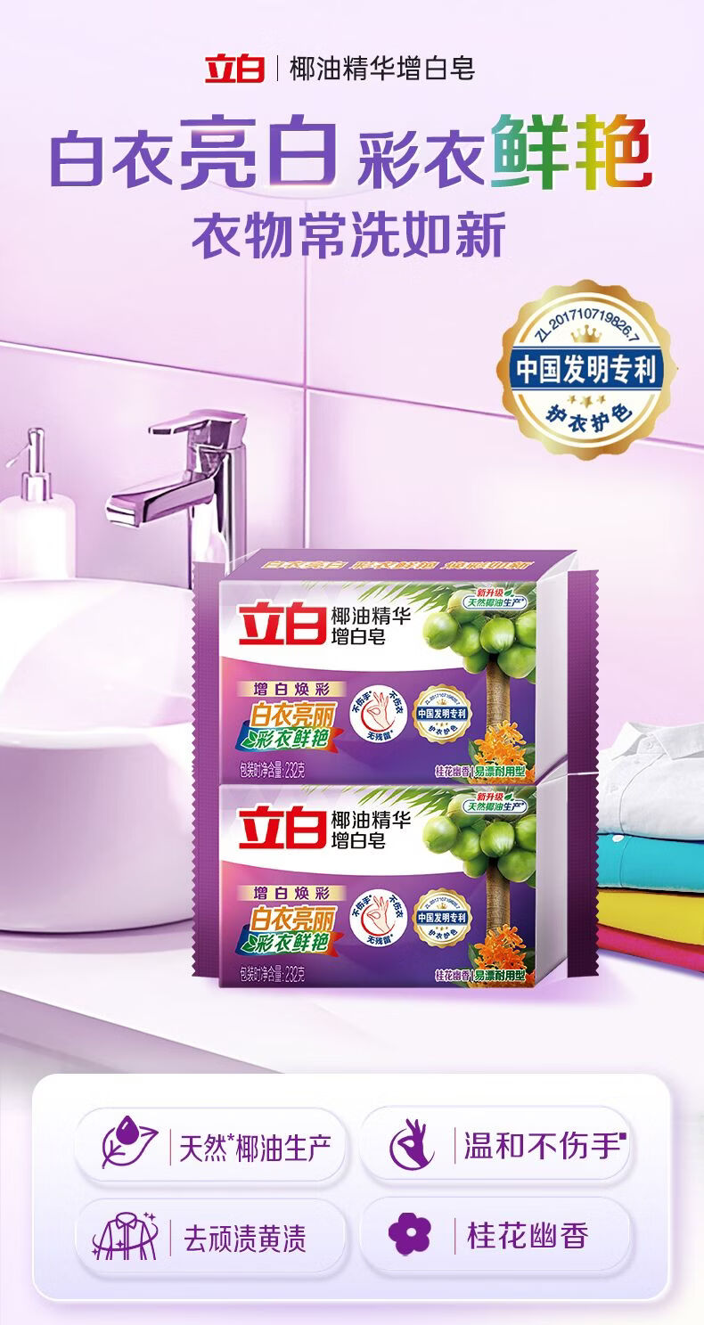 立白椰油精华增白皂洗衣皂耐用洗衣皂肥皂内衣皂透明皂 洗衣皂101g*2块+泡泡粉10g