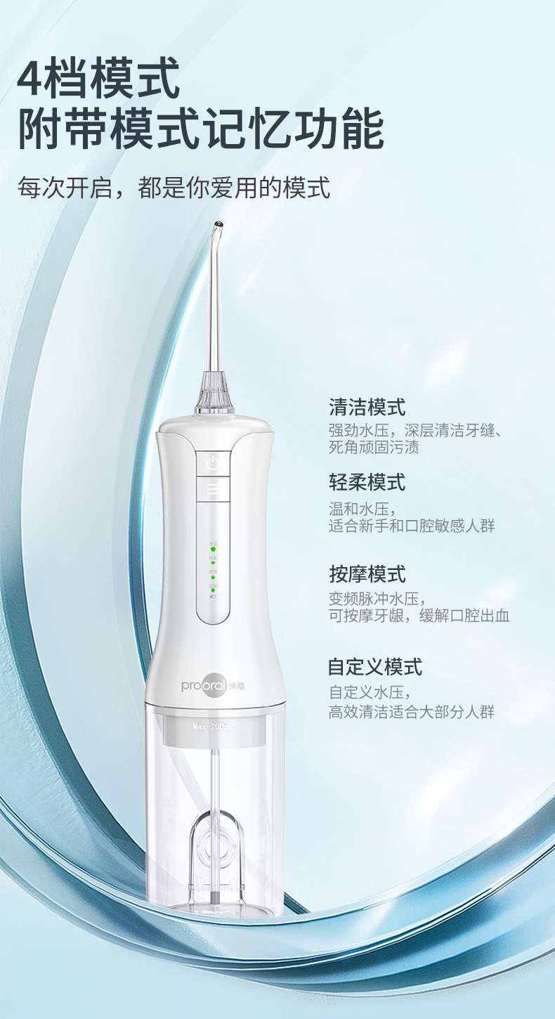 博皓(prooral)电动冲牙器便携牙齿洗牙器冲洗器家用洁牙器水牙线正畸牙垢清洁器 送朋友生日礼物 F40 象牙白
