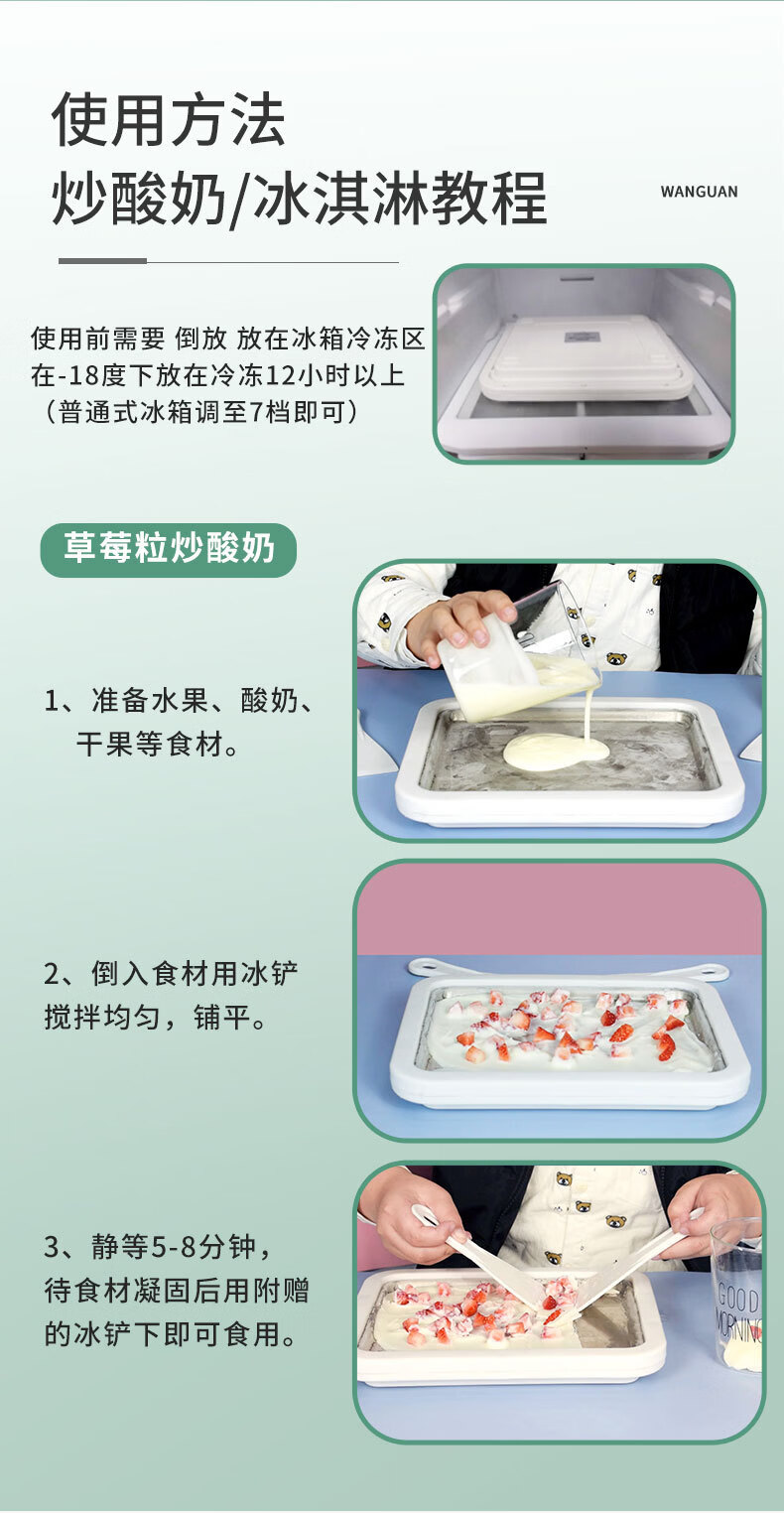 【好物优选】新款家用炒酸奶机夏日迷你炒冰机小型儿童冰淇淋机不锈钢炒冰盘 白色大号不锈钢盘-尺寸26*21*3.2cm