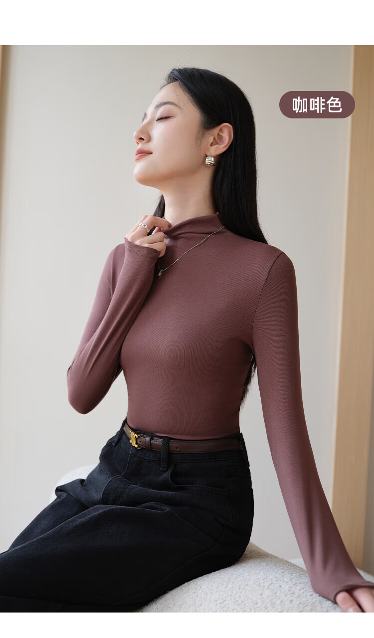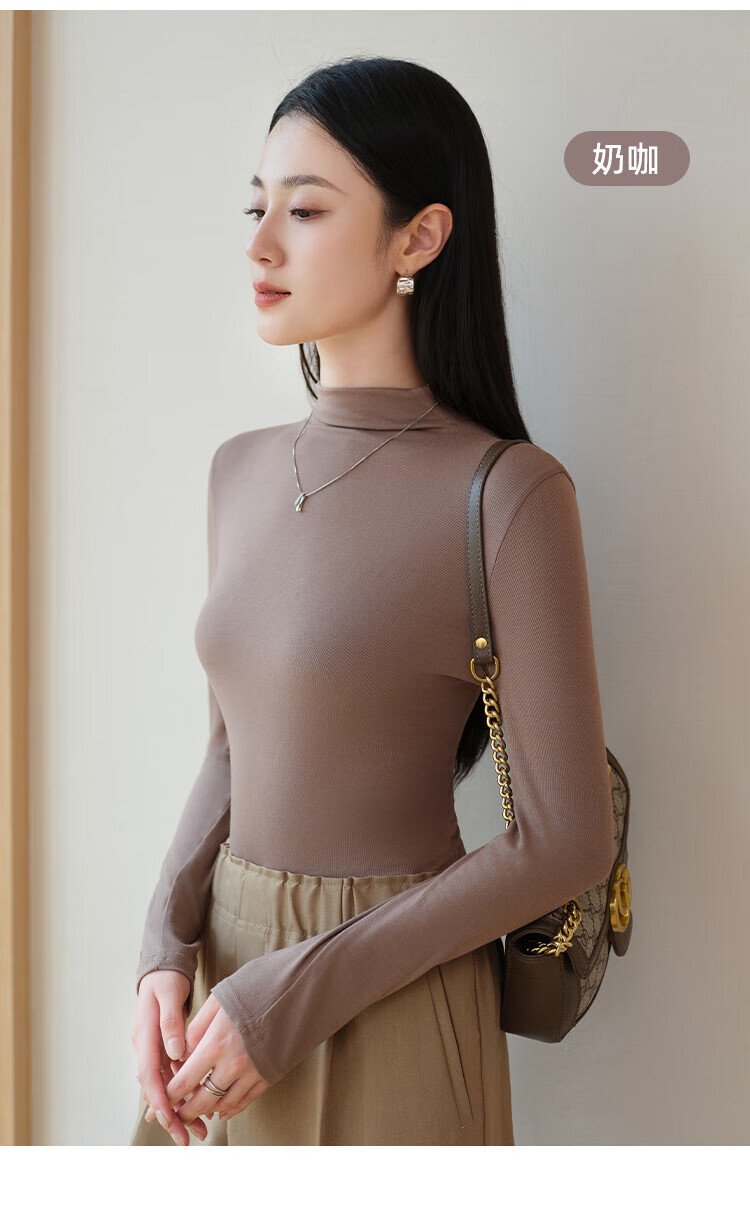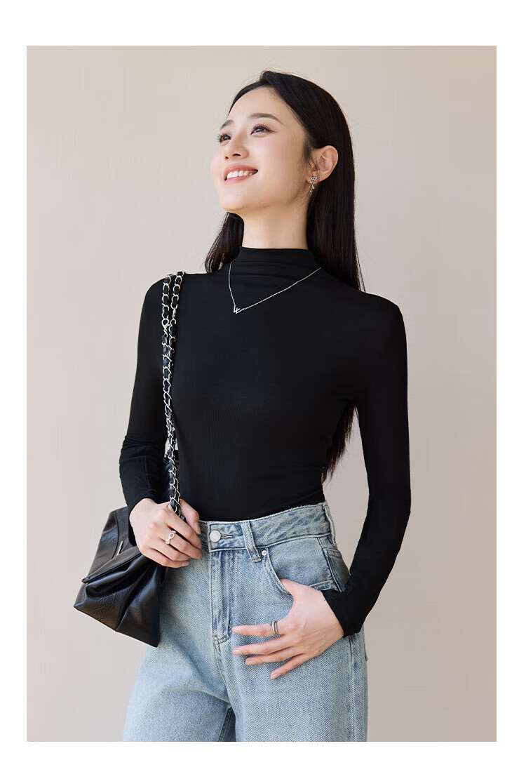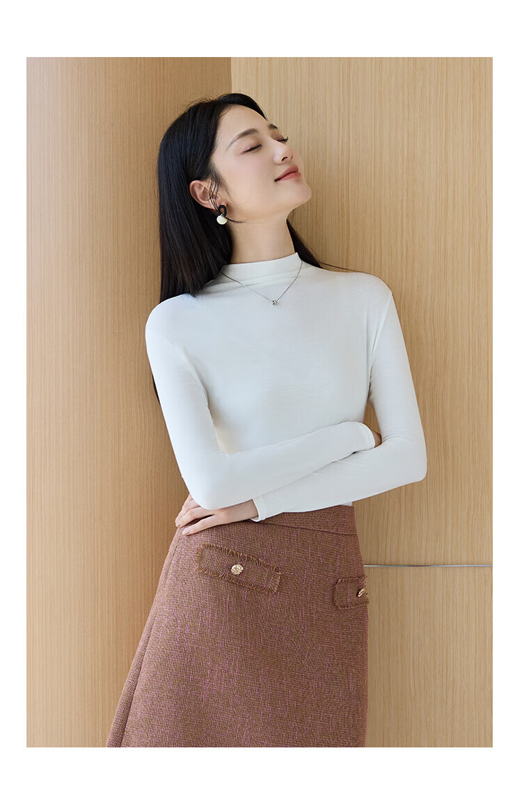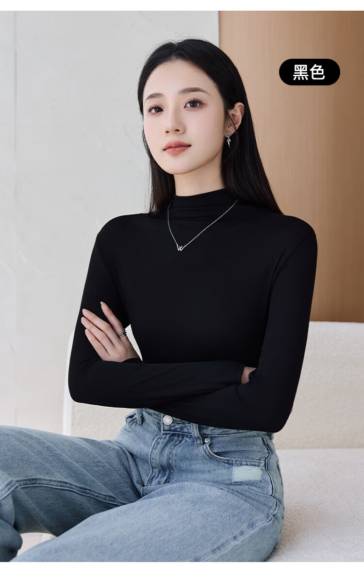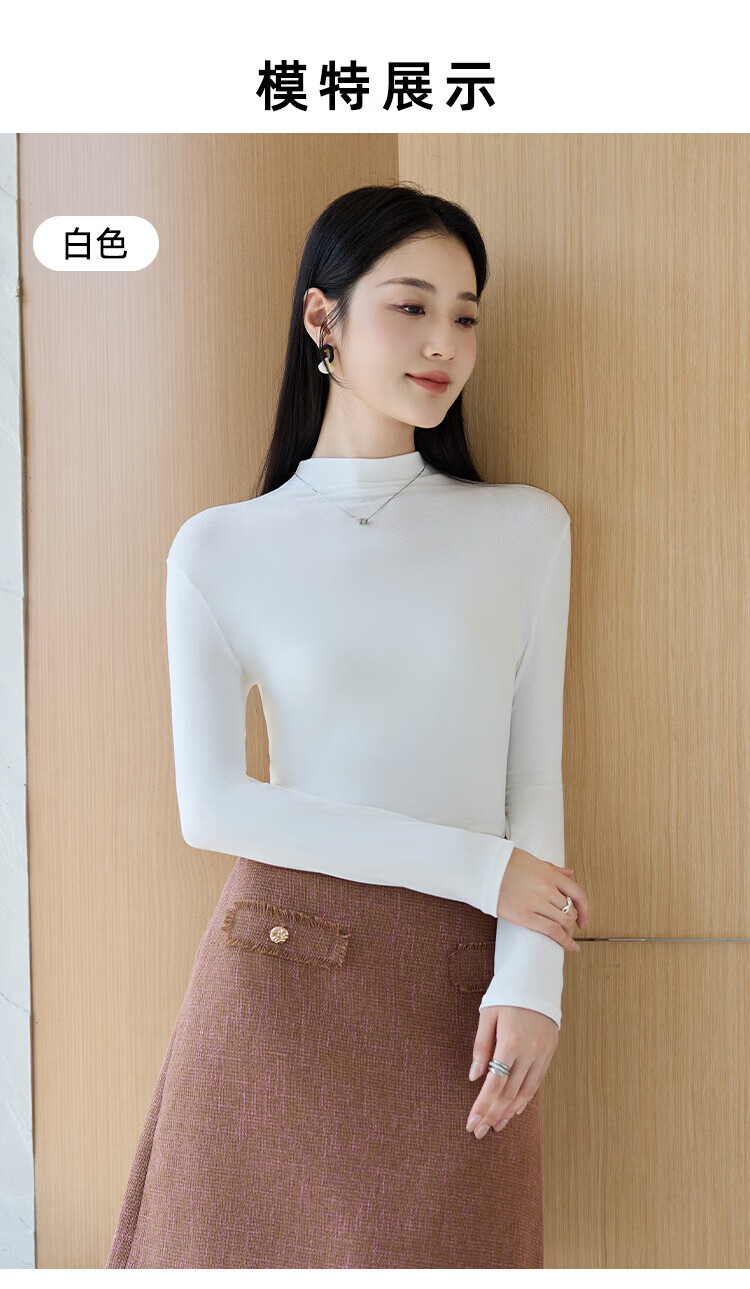 浪莎女士半高领打底衫2025新款春秋冬款内搭高级感修身长袖黑色上衣潮 白色 L (适合80-125斤)
