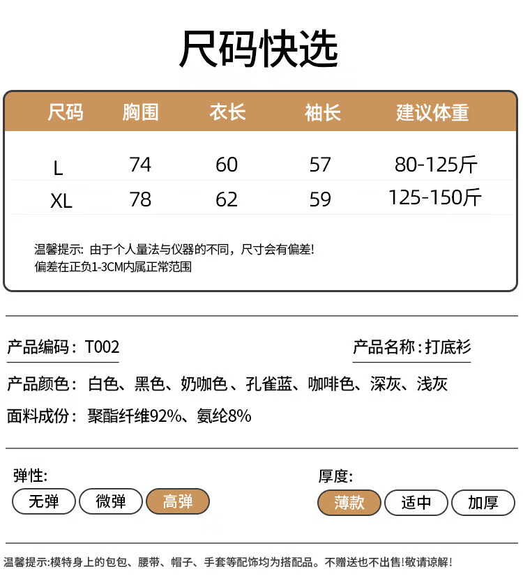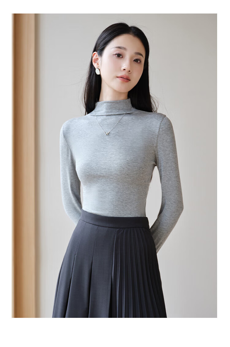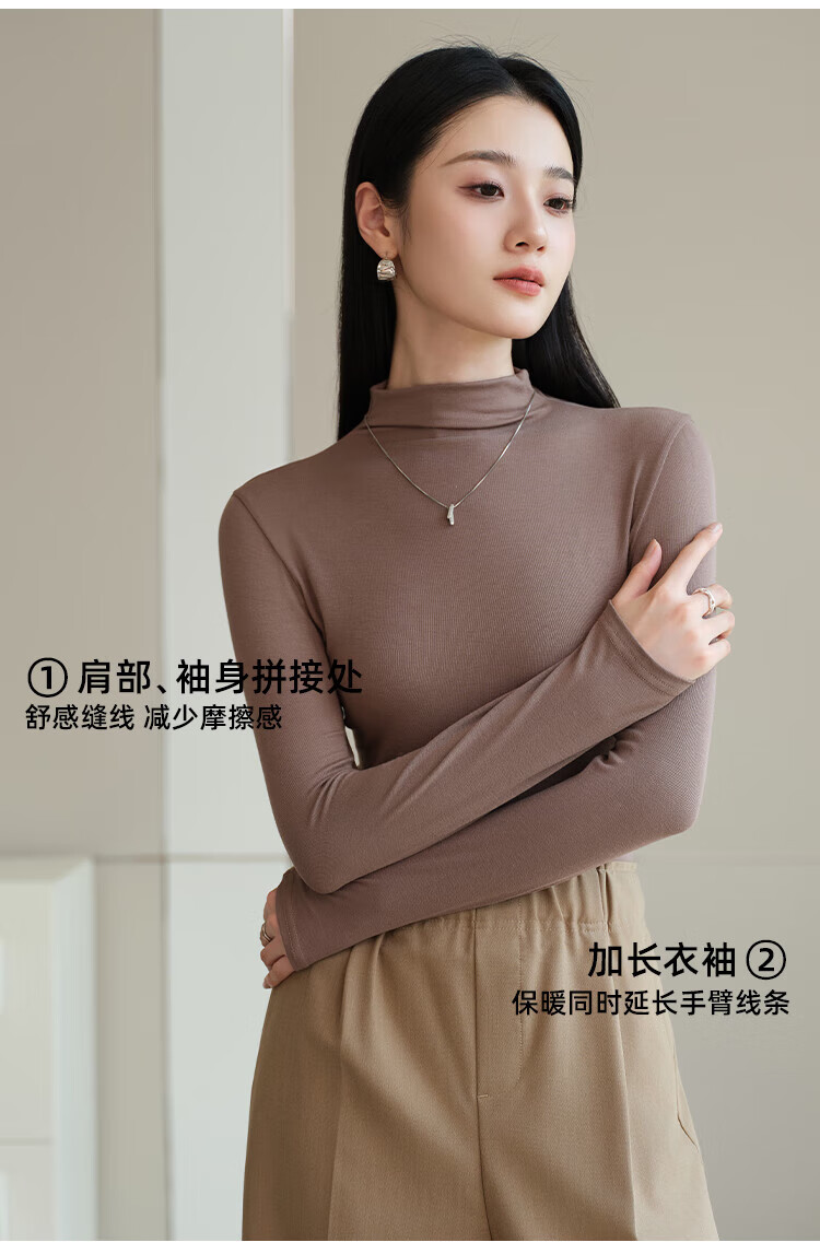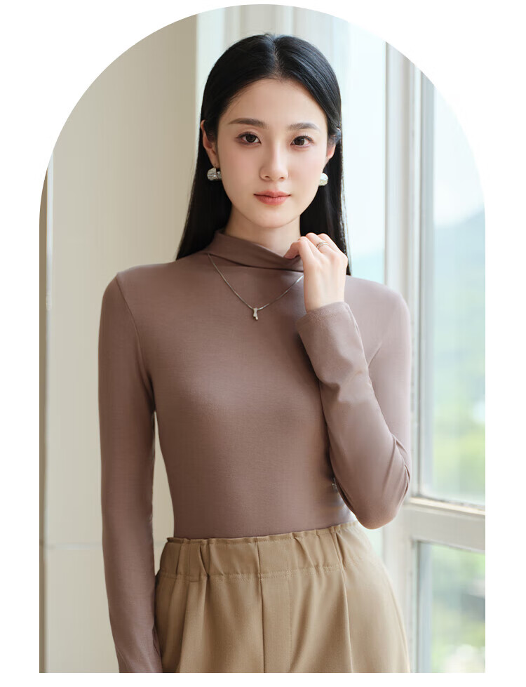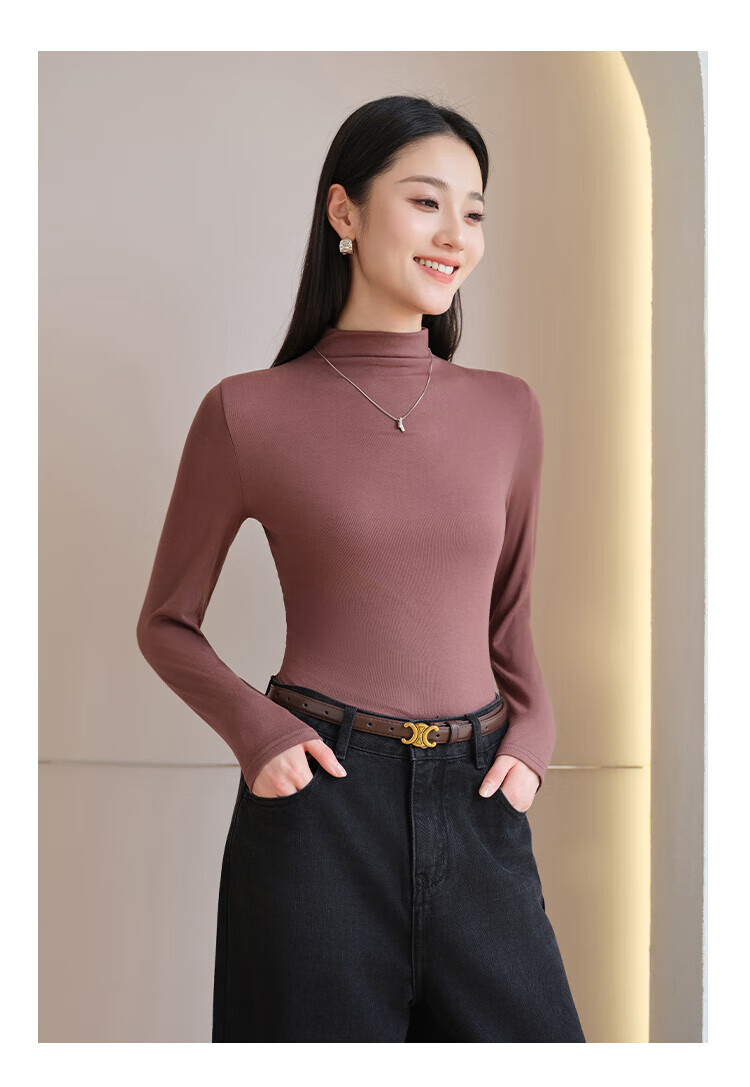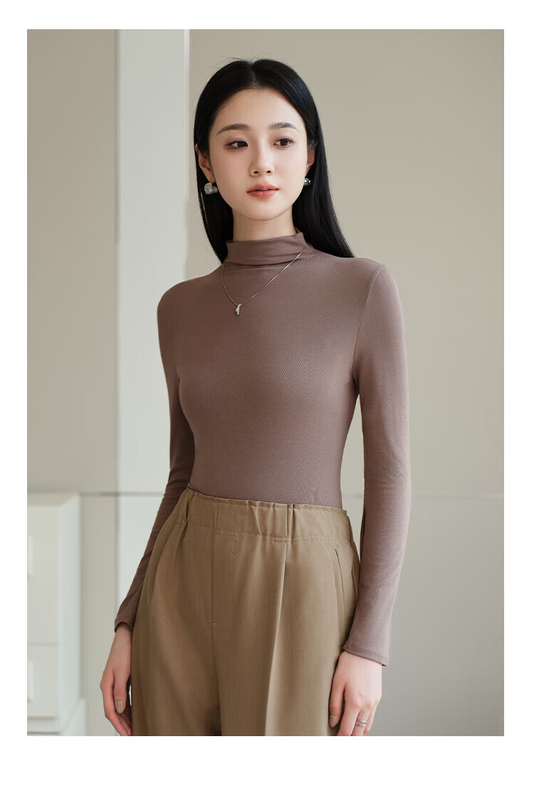 浪莎女士半高领打底衫2025新款春秋冬款内搭高级感修身长袖黑色上衣潮 白色 L (适合80-125斤)