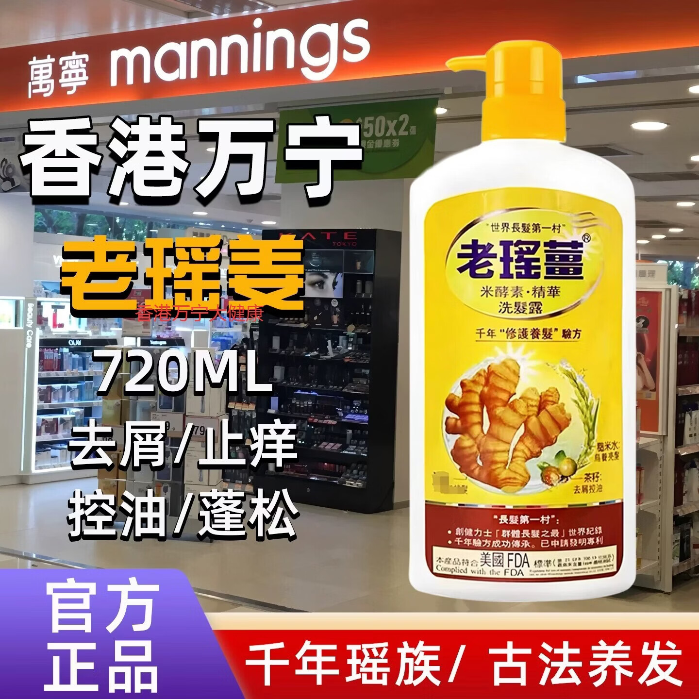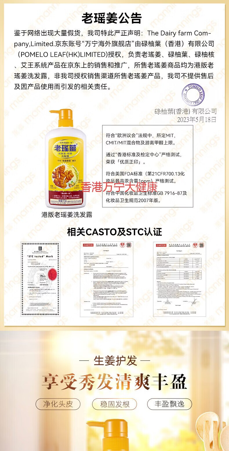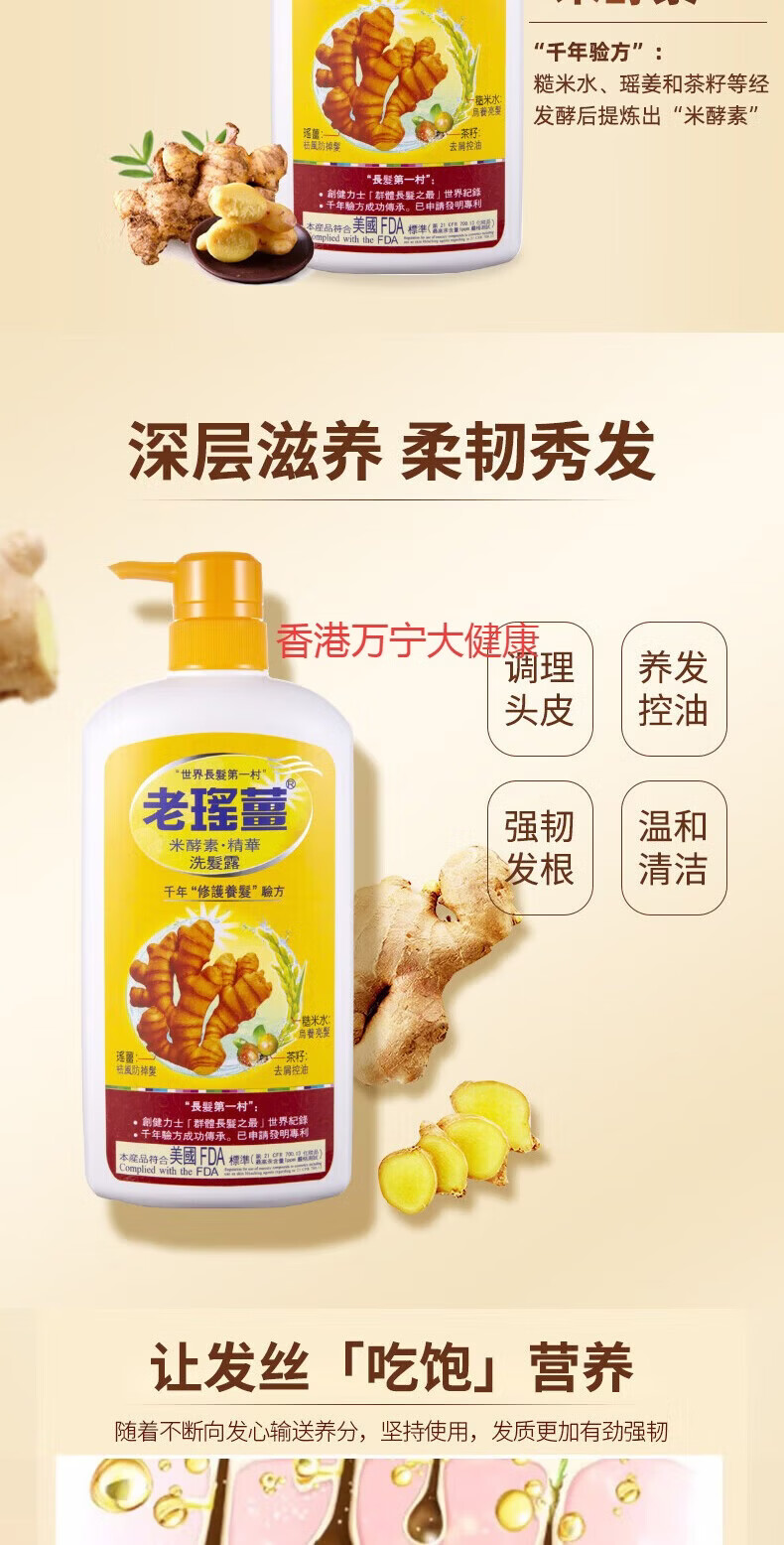 老瑤薑【香港进口】老瑶姜生姜洗发水 姜米酵素精华姜汁去屑 【认准香港 老瑶姜洗发一瓶装 百亿补贴活动中
