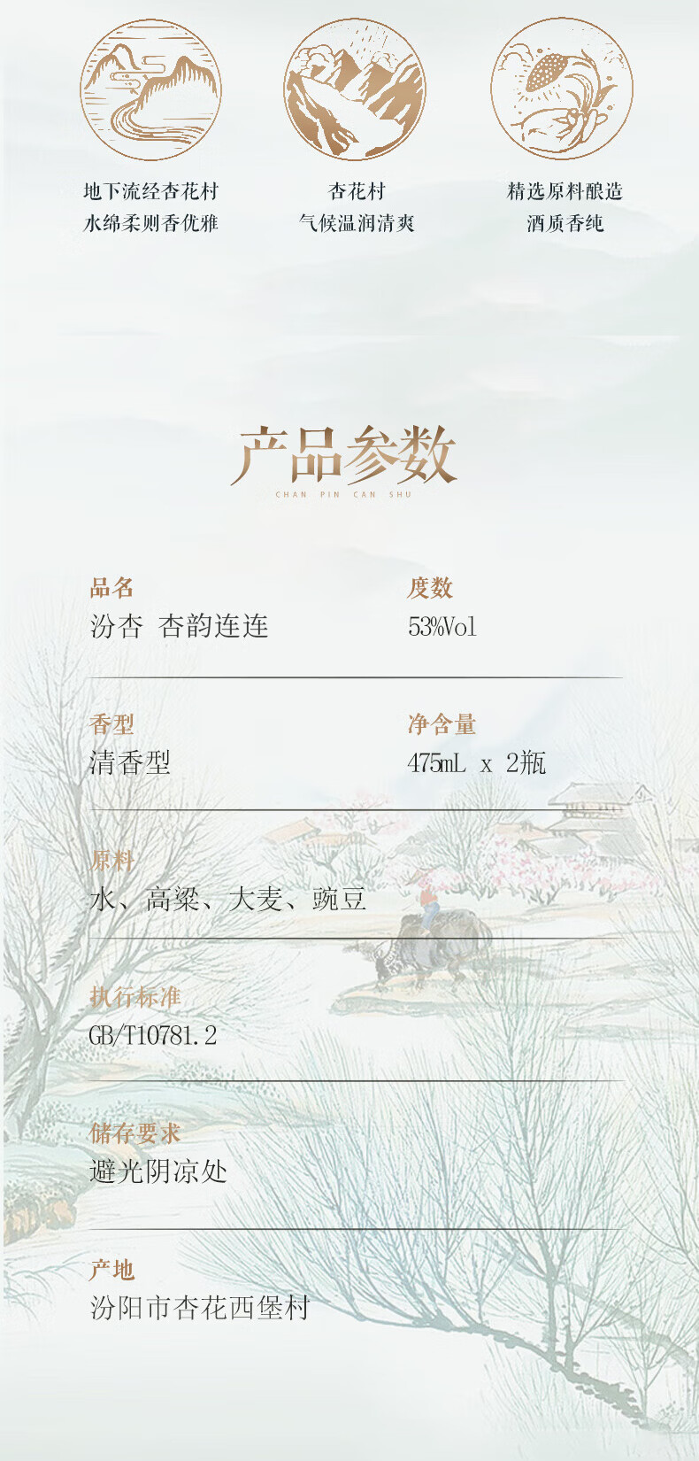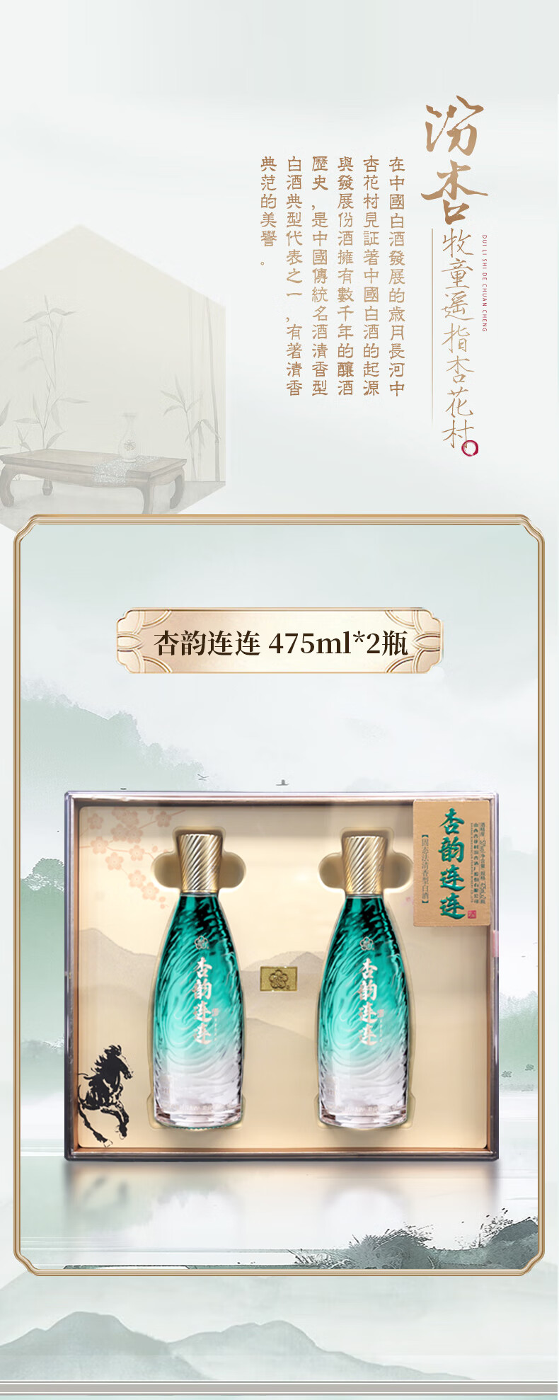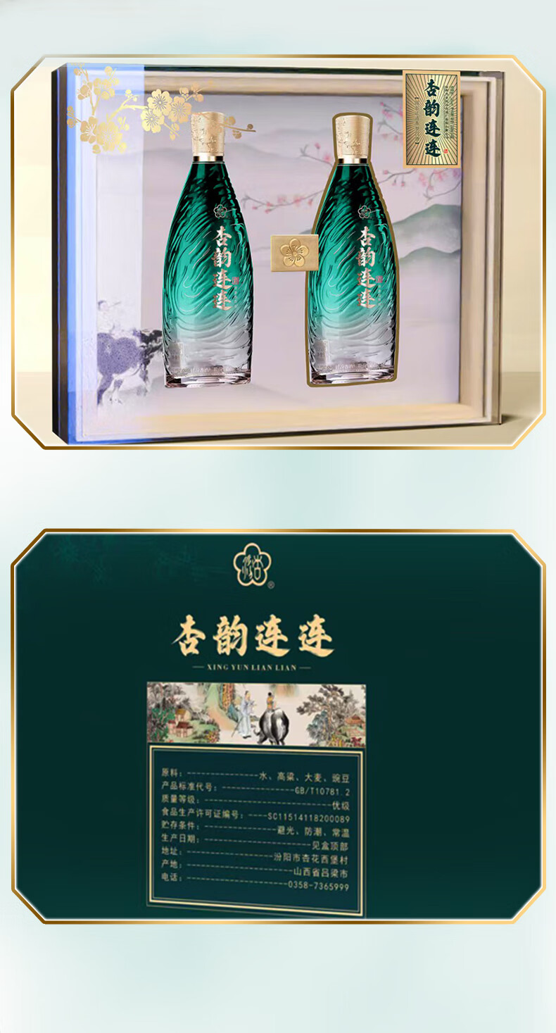 汾杏1988 清香型白酒 婚宴喜酒 年货礼盒 送礼白酒礼盒 53度 475mL 2瓶 礼盒装