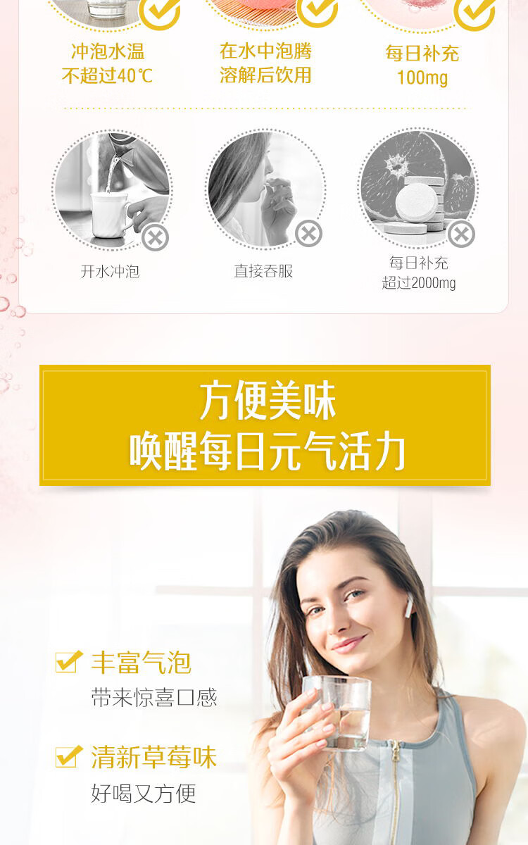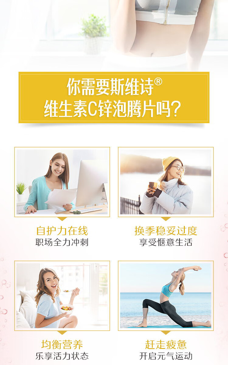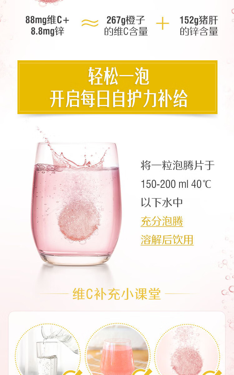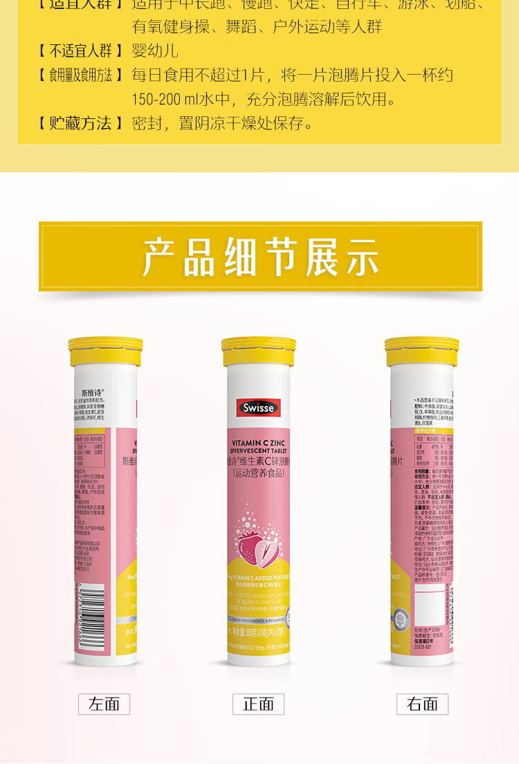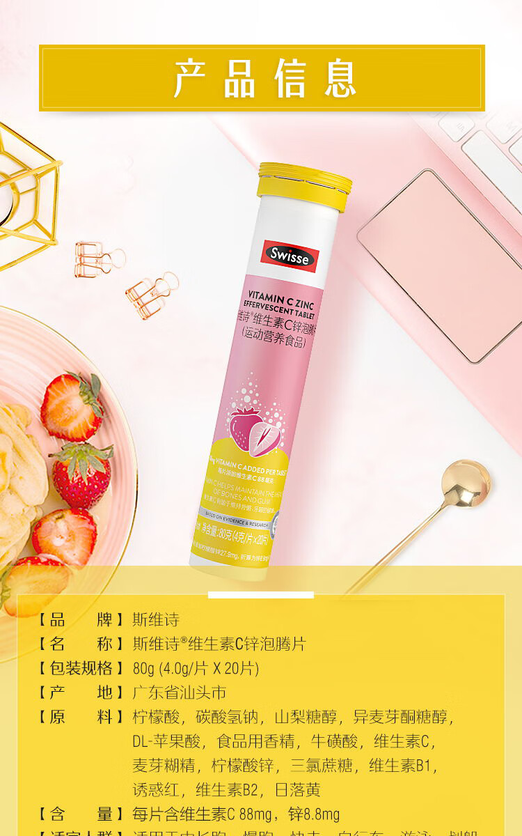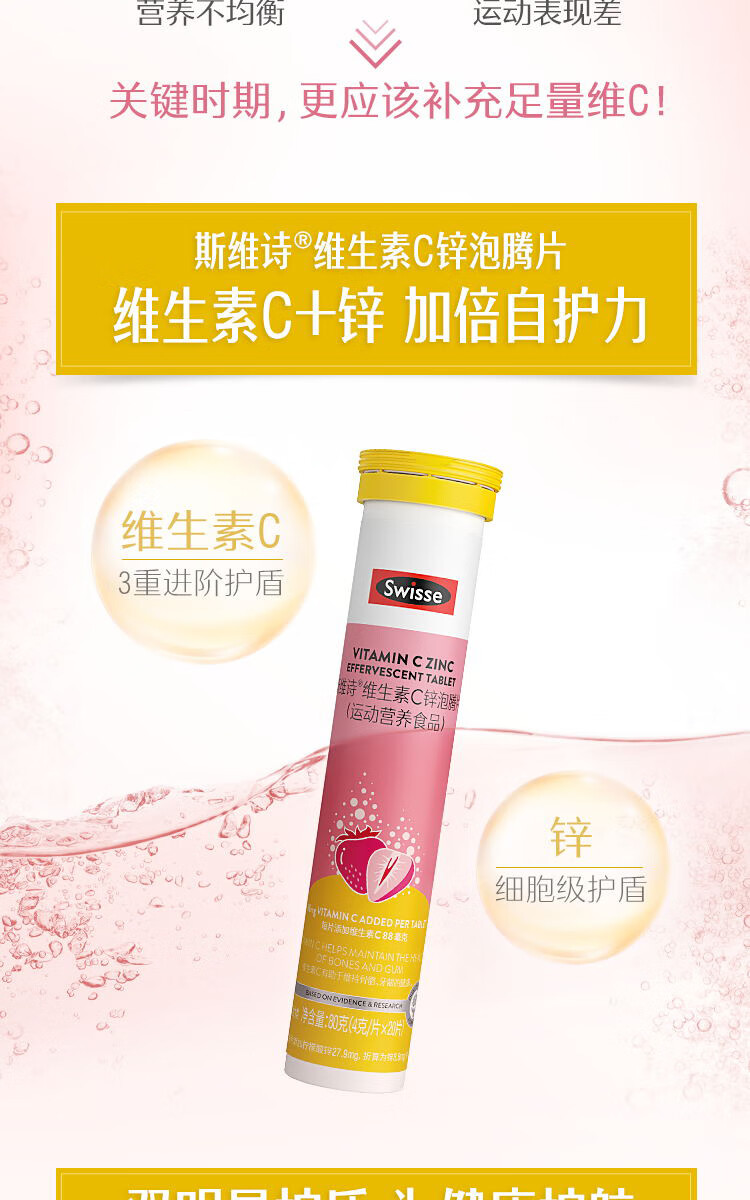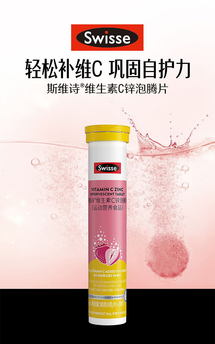 Swisse斯维诗 维生素C锌泡腾片 运动营养食品 清新草莓味 「联盟专享」4g/片*20片*4支