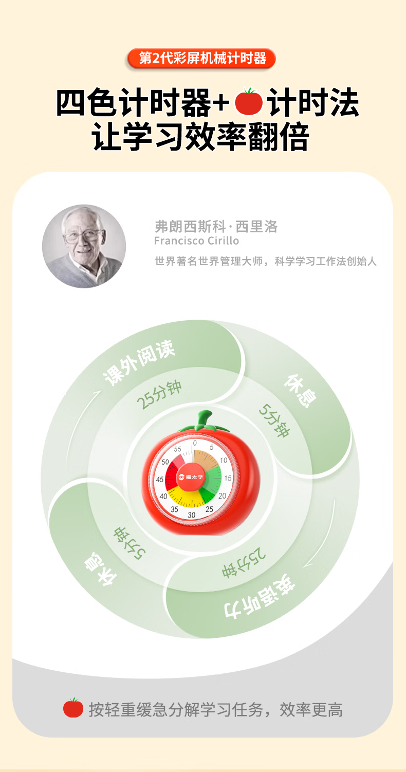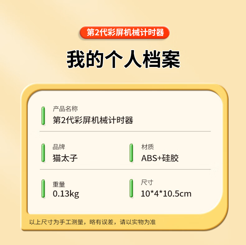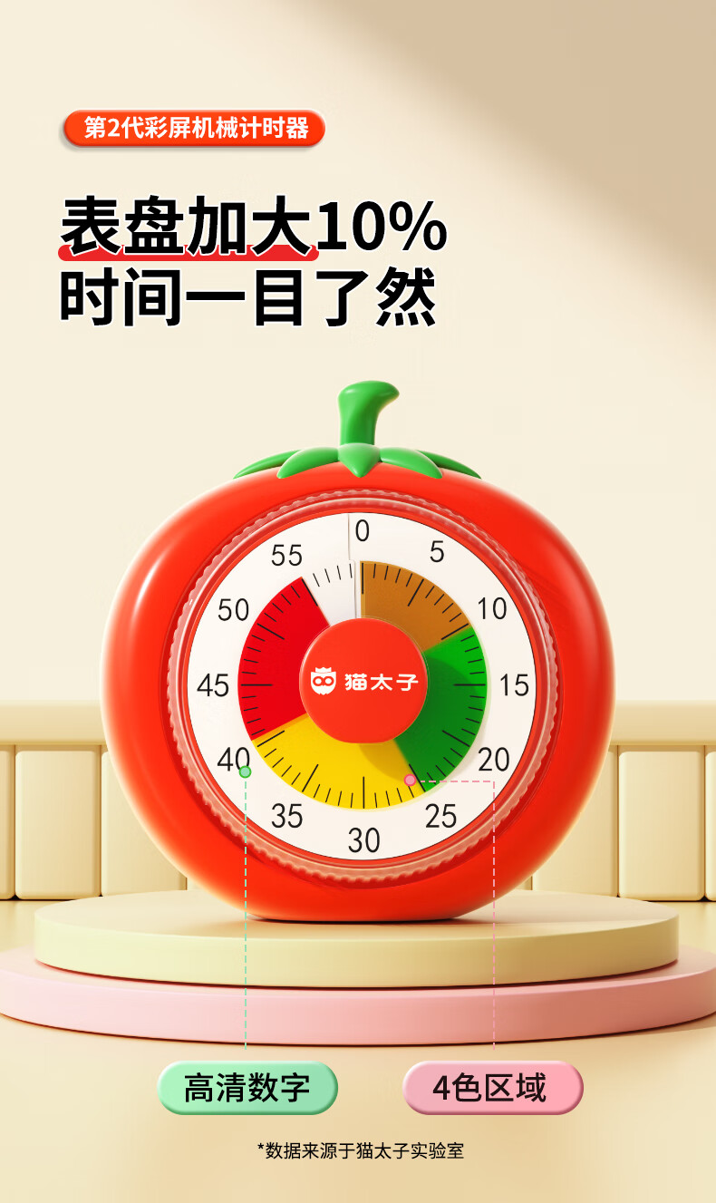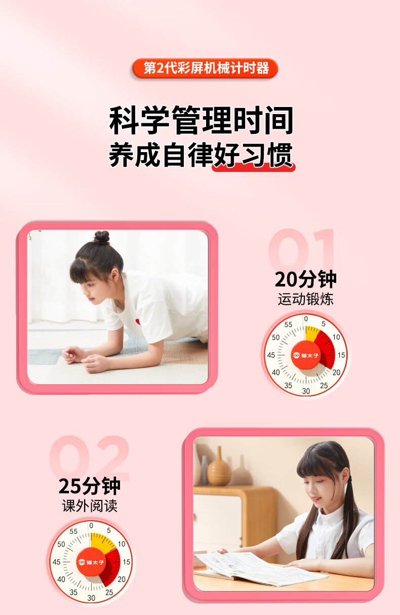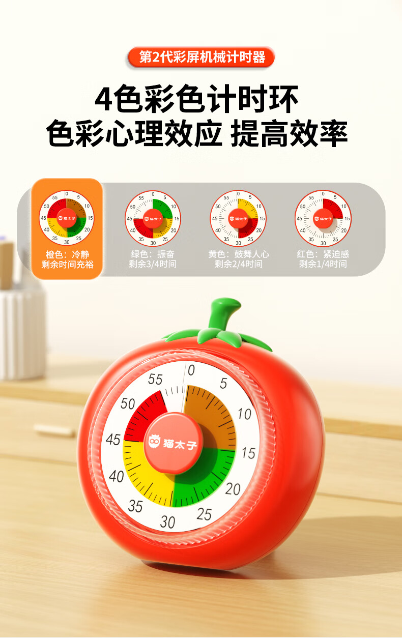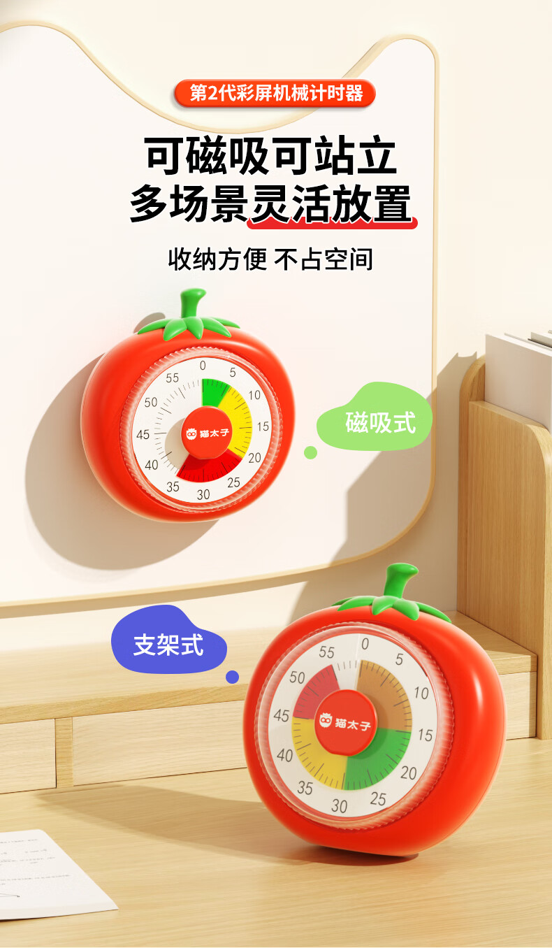 猫太子计时器机械可视化学习专用儿童自律时间管理器倒计时提醒器考试定时器闹钟学生起床神器磁吸款 计时器