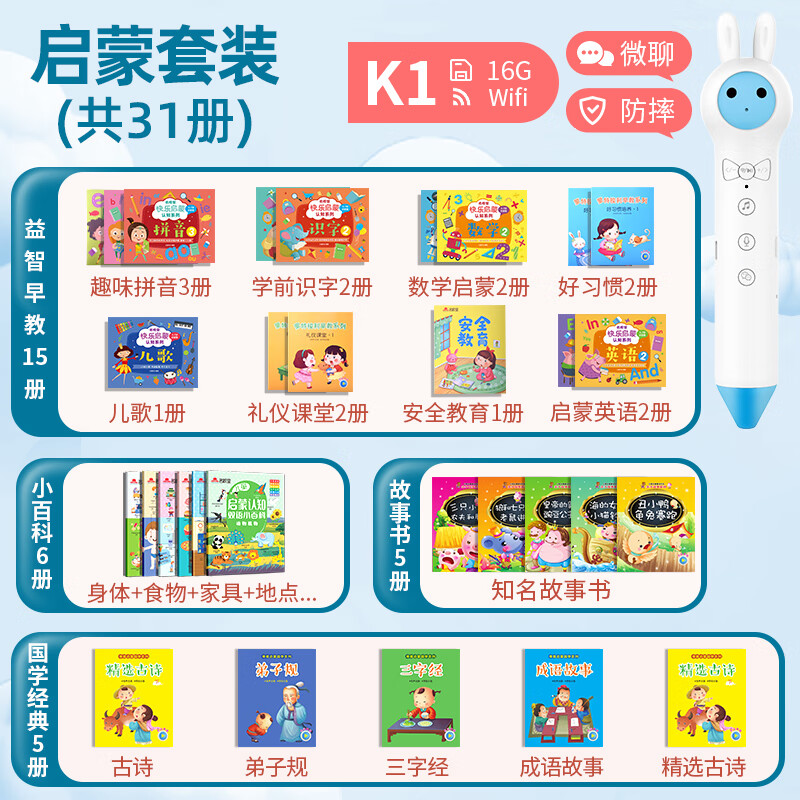 名校堂儿童智能点读笔早教机英语幼儿宝宝巴士幼儿男女孩生日礼物K1蓝