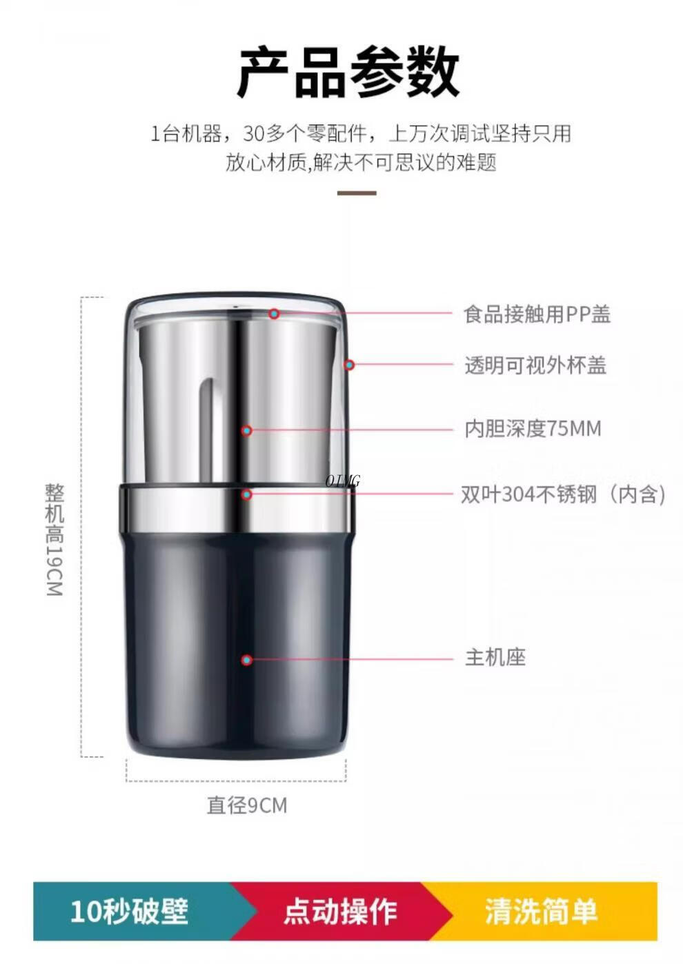 OIMG日本品质片仔癀研磨器中药材磨粉机辣椒打粉粉碎机磨粉机家用 级220V国内用可拆洗 湿磨款