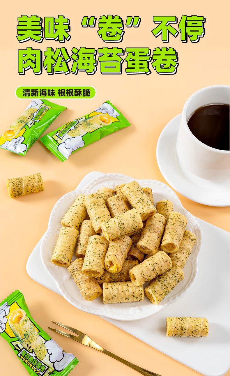 海苔肉松味蛋卷饼干鸡蛋独立小包装食品零食酥酥脆脆约3.5g/包 【活动】海苔肉松蛋卷20包约70g