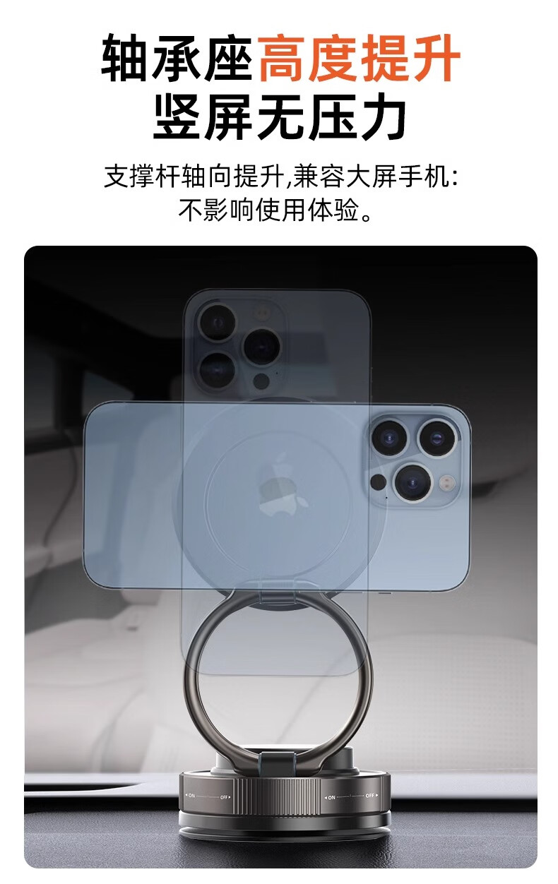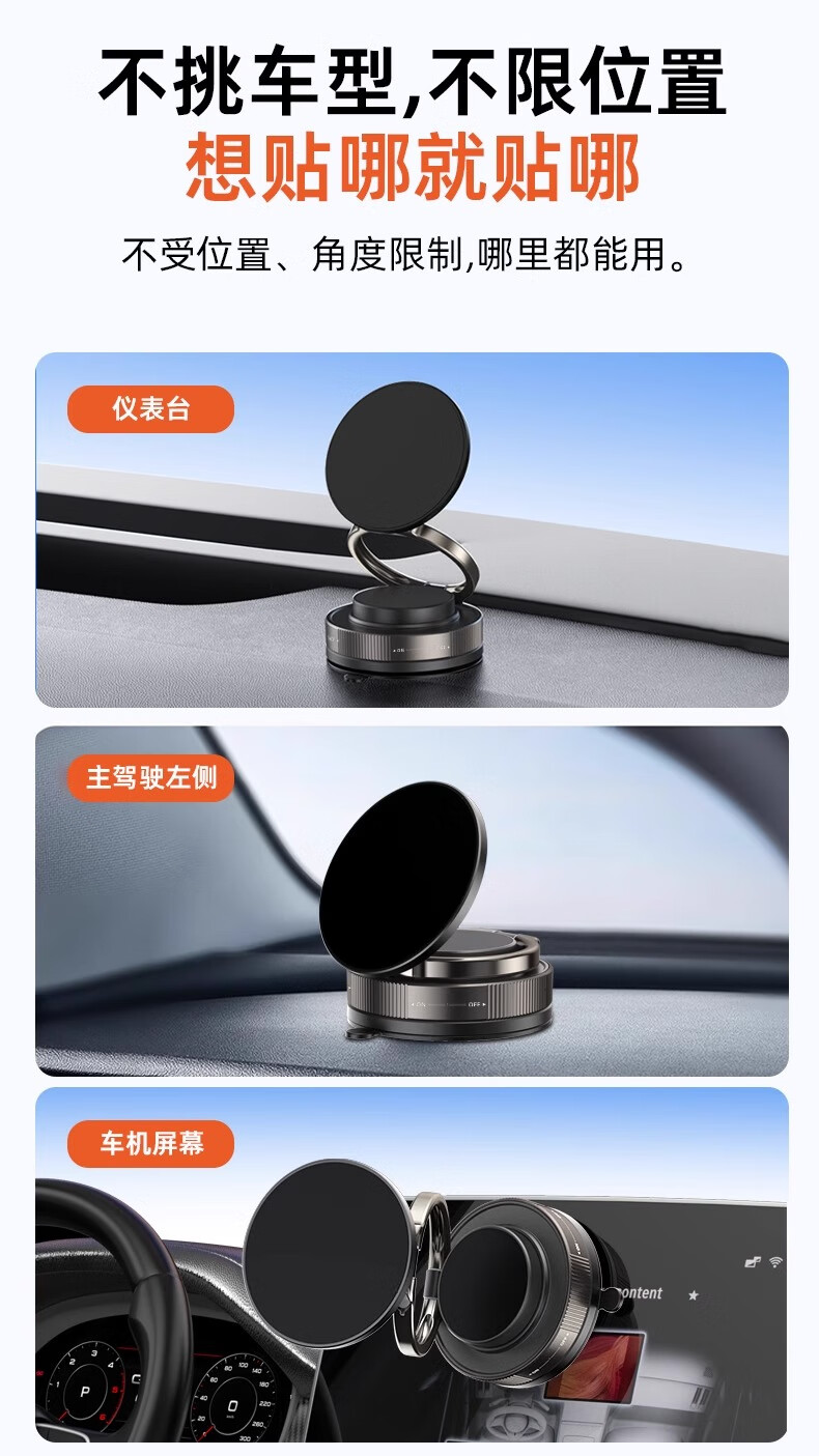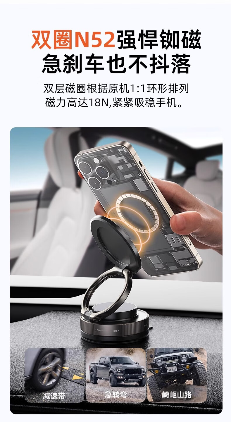 真空吸盘手机磁吸支架多功能车载2025新款中控台防抖导航车内专用 【升级强磁吸附】CCT28曜石黑