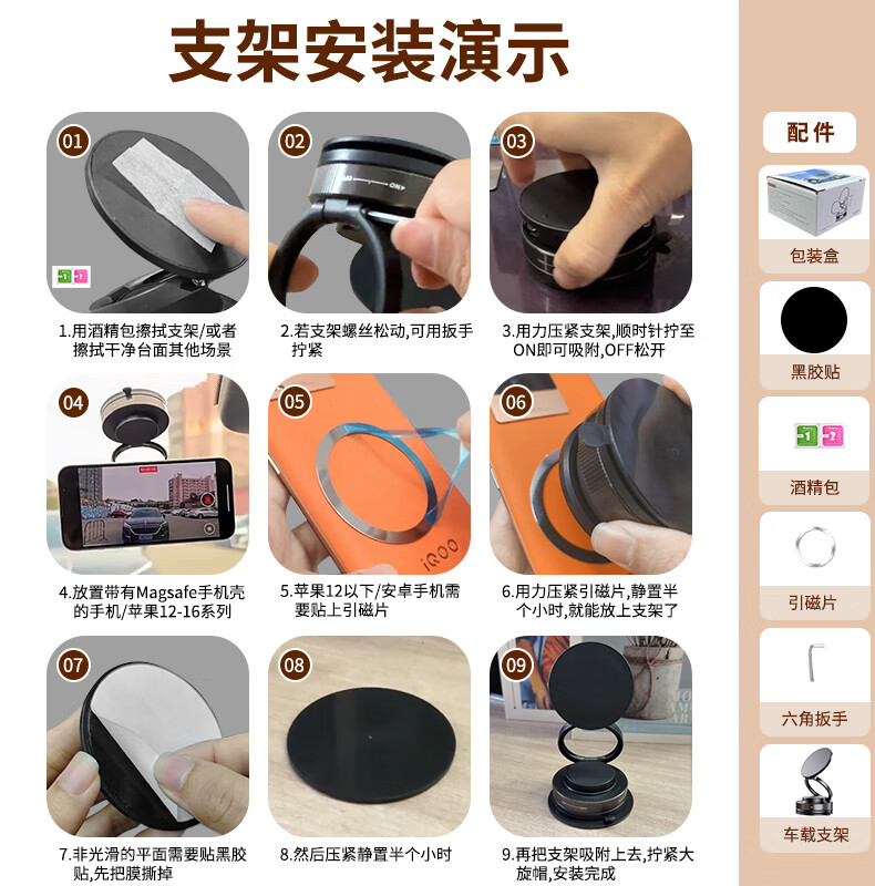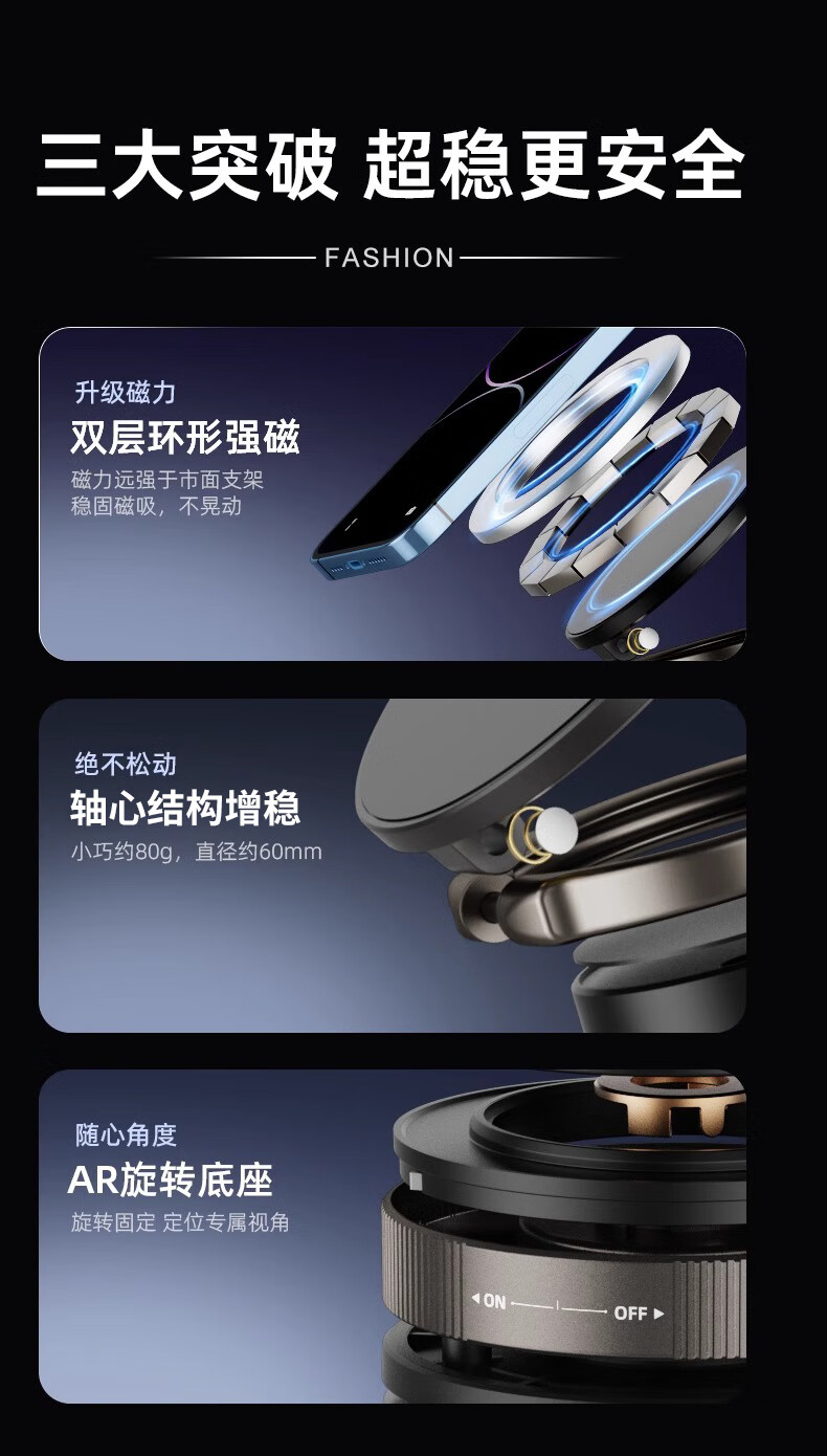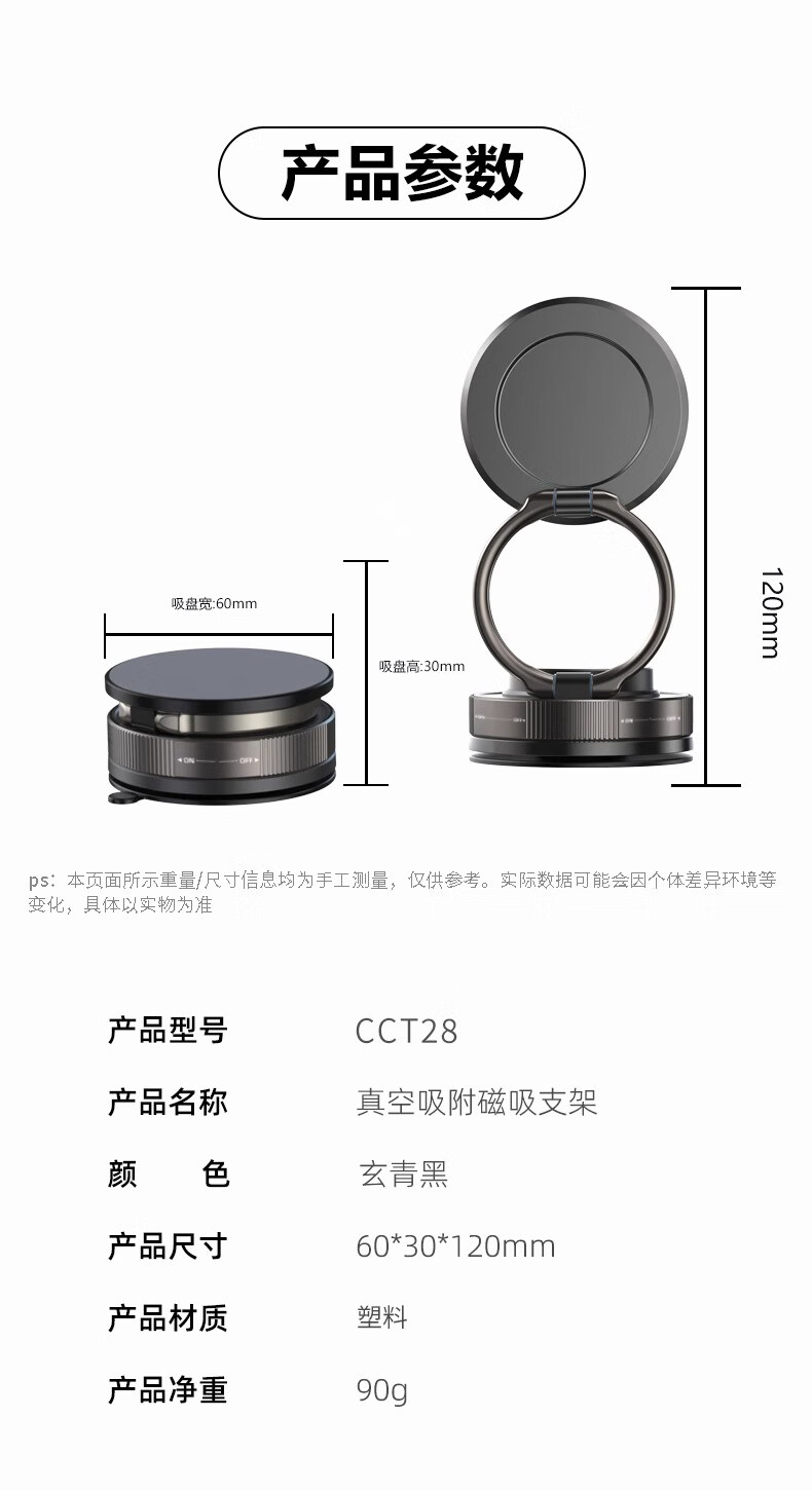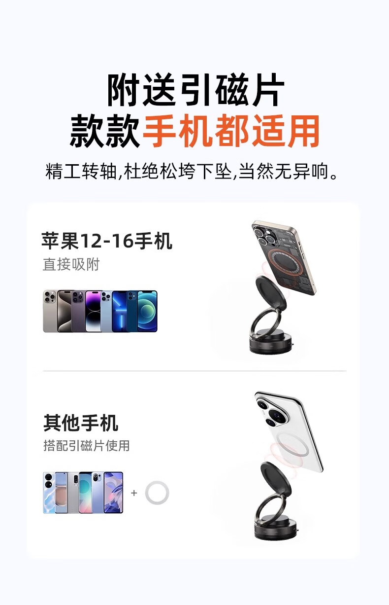真空吸盘手机磁吸支架多功能车载2025新款中控台防抖导航车内专用 【升级强磁吸附】CCT28曜石黑