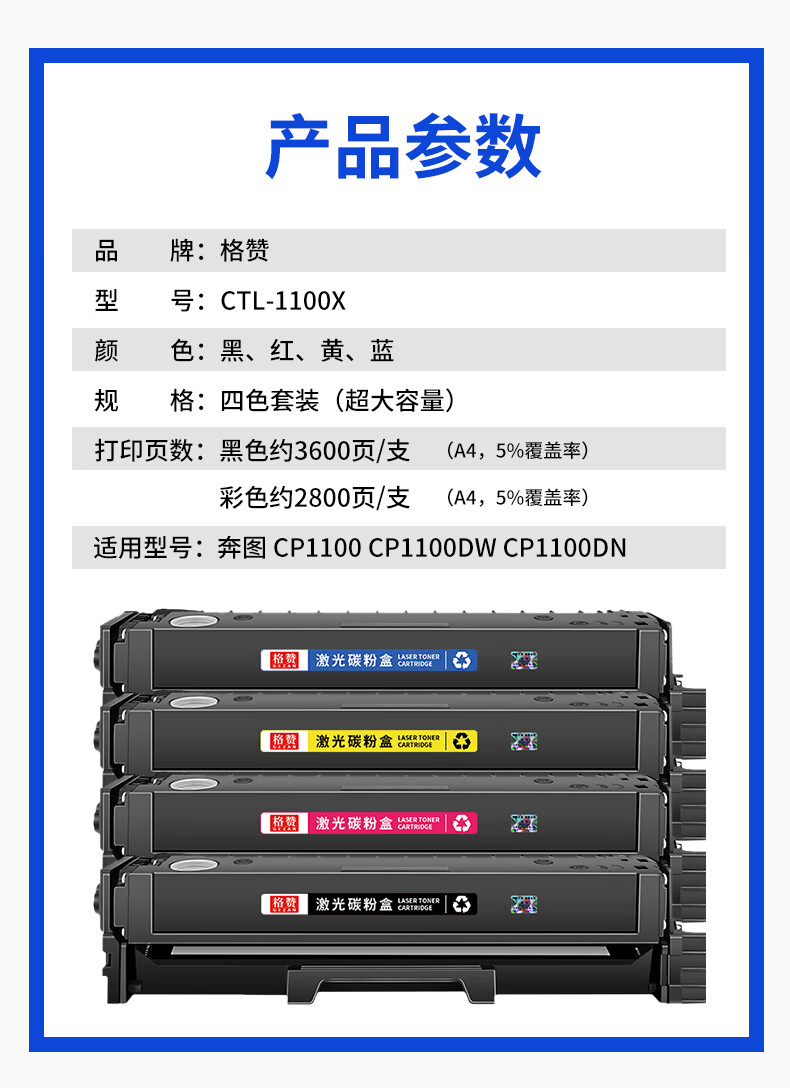 格赞CTL-1100粉盒适用奔图CP1100DN硒鼓CM1100DN/ADN/DW/ADW CP1100DW CP1100 CP1105DN打印机墨盒四色超大容量