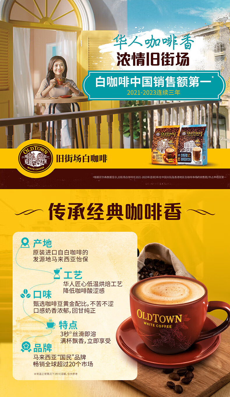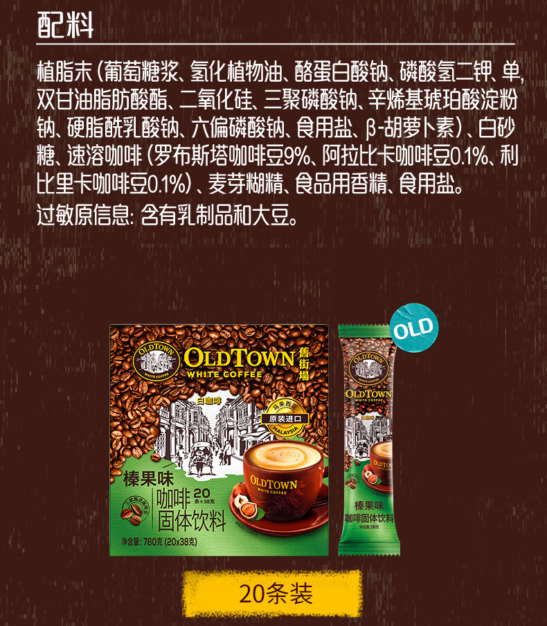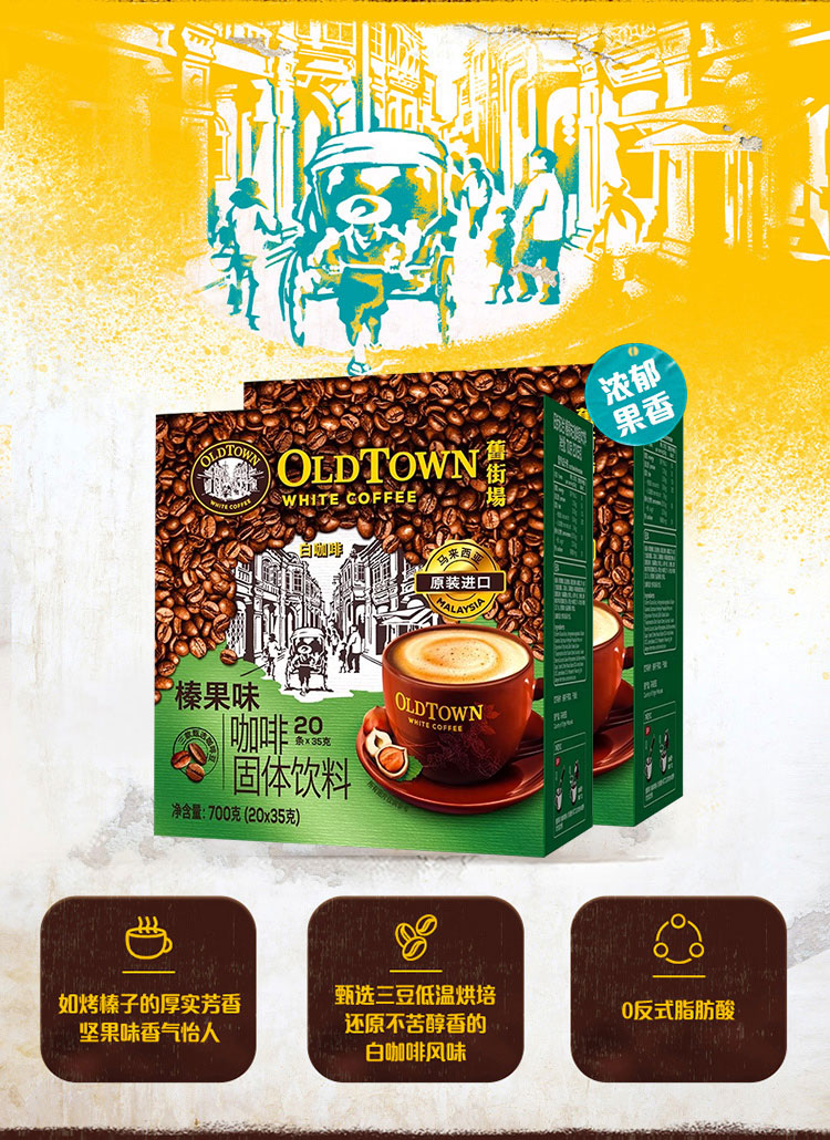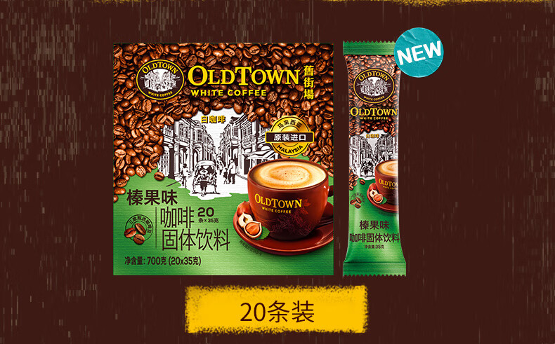 旧街场(OLDTOWN)速溶榛果白咖啡马来西亚进口三合一咖啡粉1400g(35g*40条)饮料