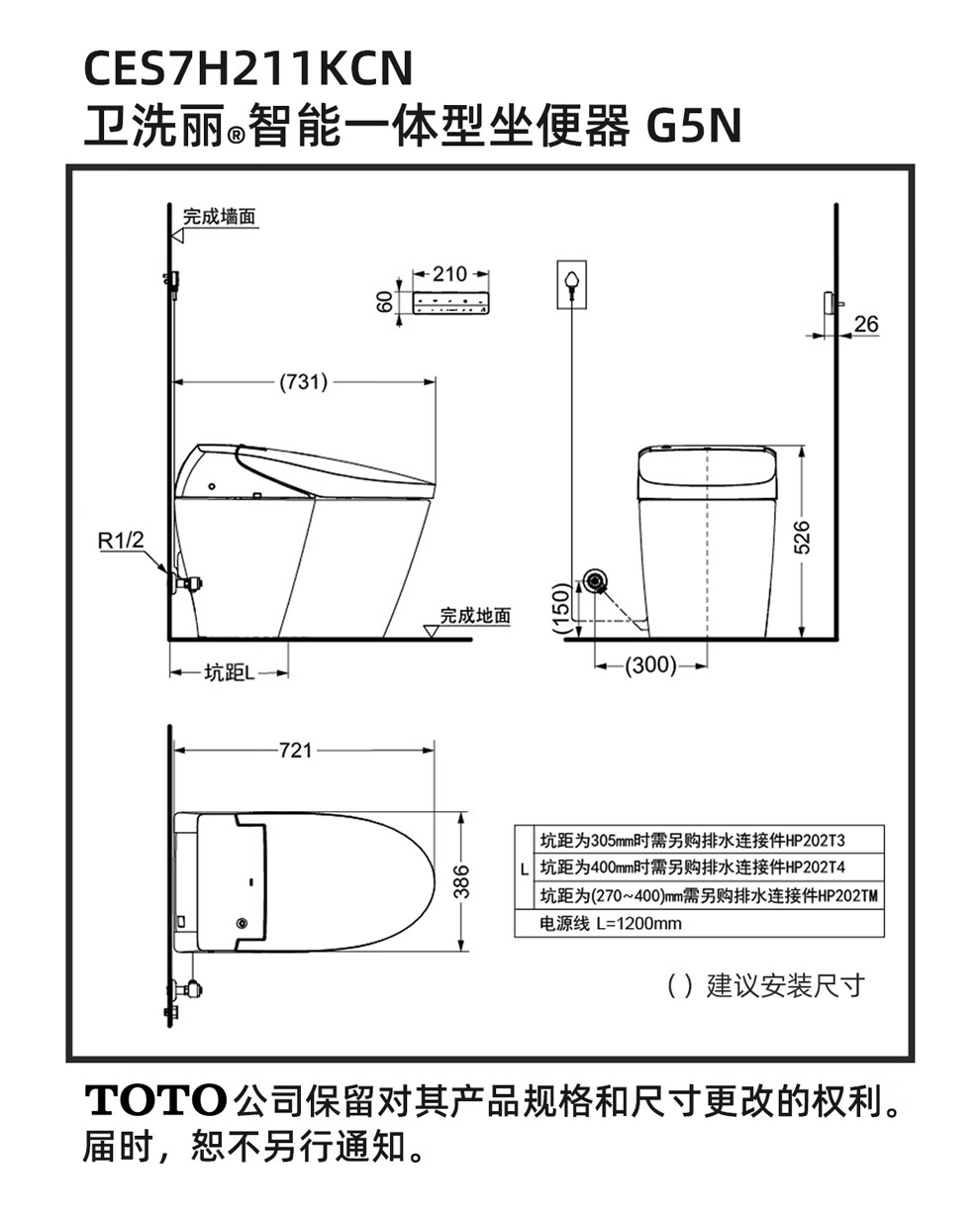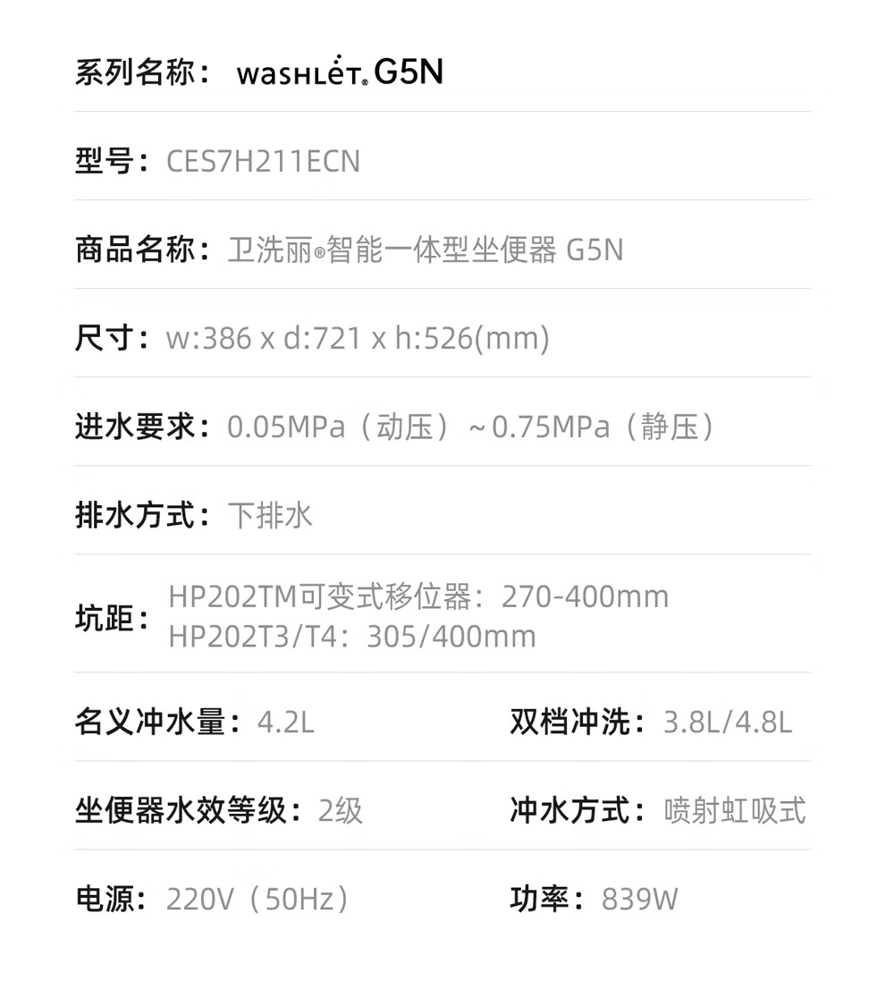 TOTO智能马桶G5系列全自动智能一体感应遥控器即热陶瓷坐便器G5N(01) 新品首发 G5N【400坑距】
