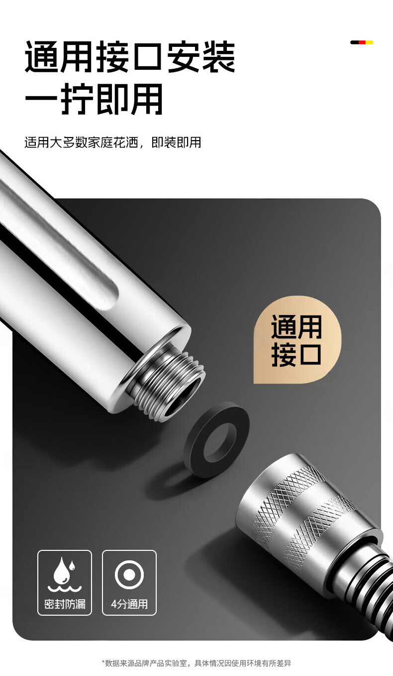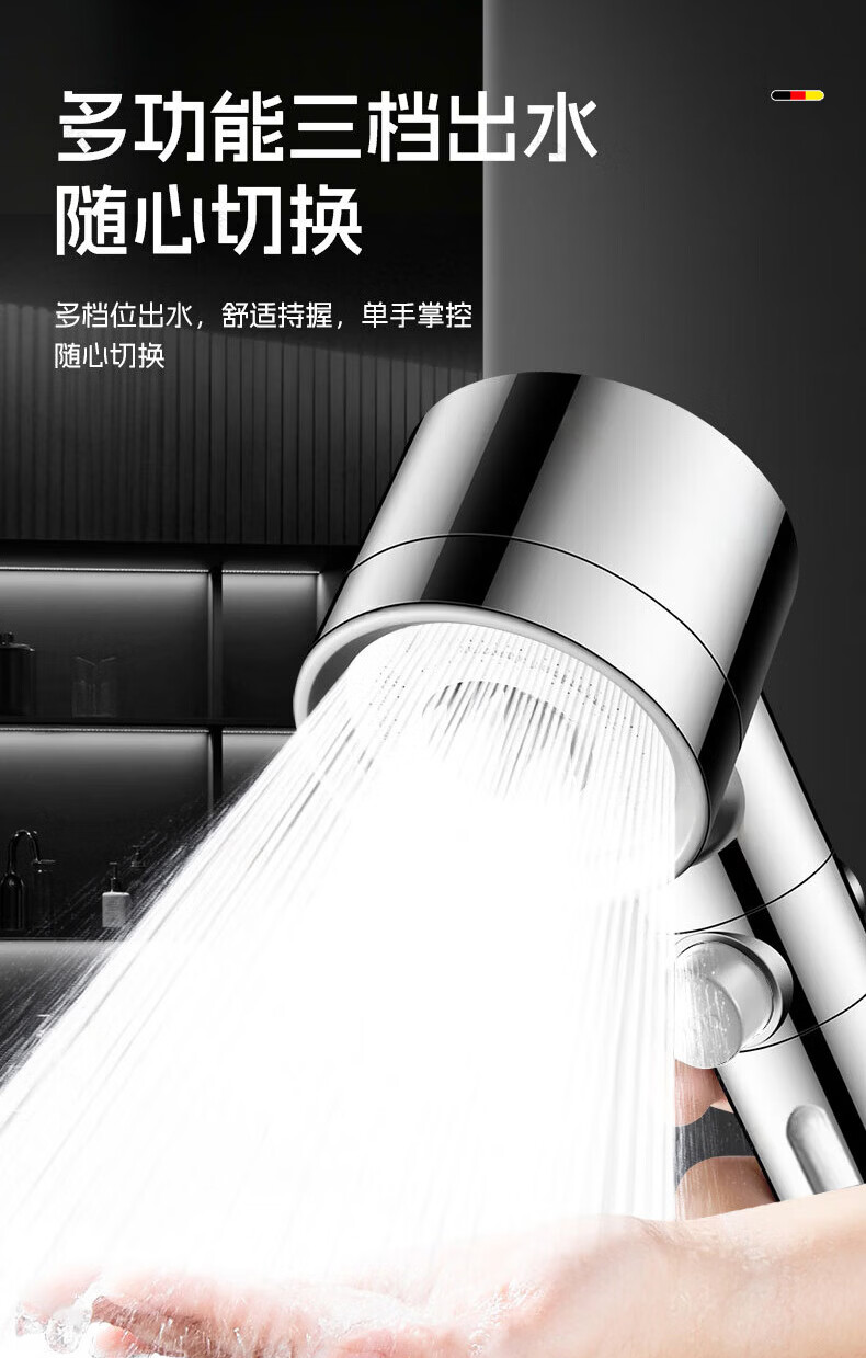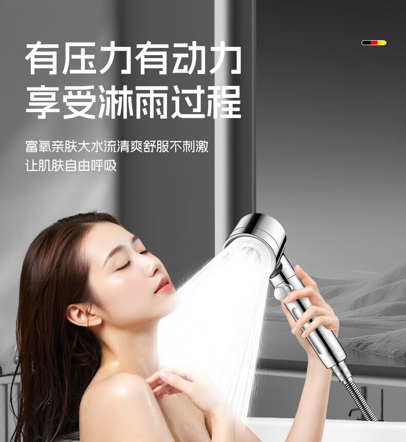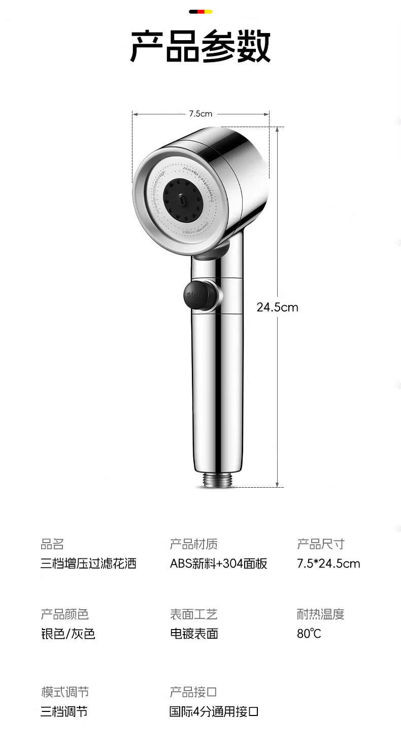 GuGuGo【德国】淋浴增压花洒喷头过滤超强高压浴室洗澡淋浴头带软管一套 【超强增压版】亮银+1.5米防爆软管 深层过滤丨大水量享酒店式沐浴