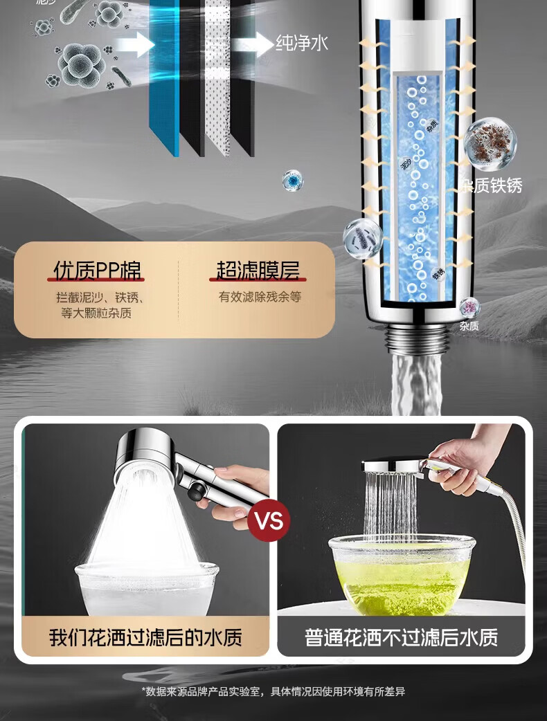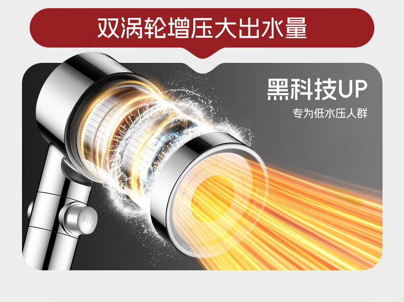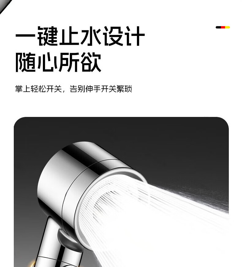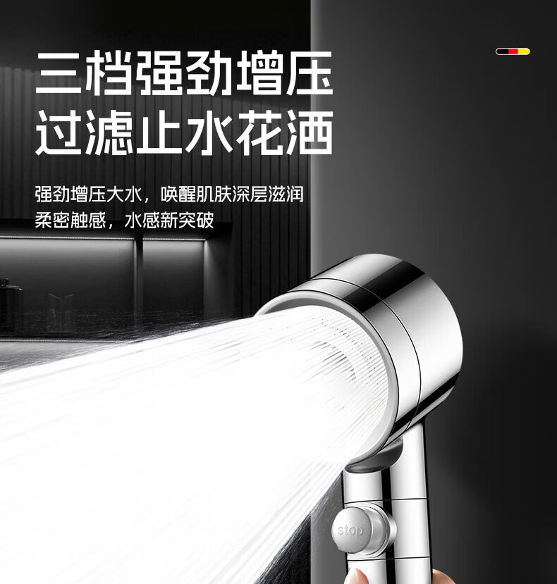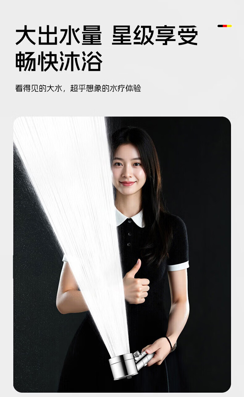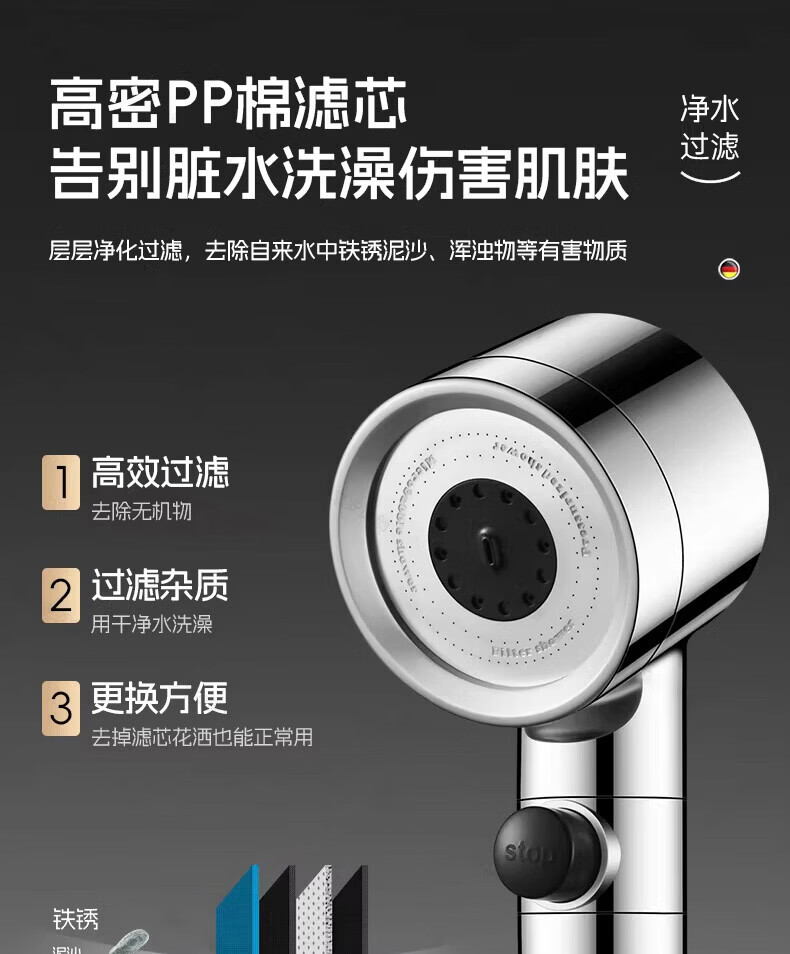GuGuGo【德国】淋浴增压花洒喷头过滤超强高压浴室洗澡淋浴头带软管一套 【超强增压版】亮银+1.5米防爆软管 深层过滤丨大水量享酒店式沐浴
