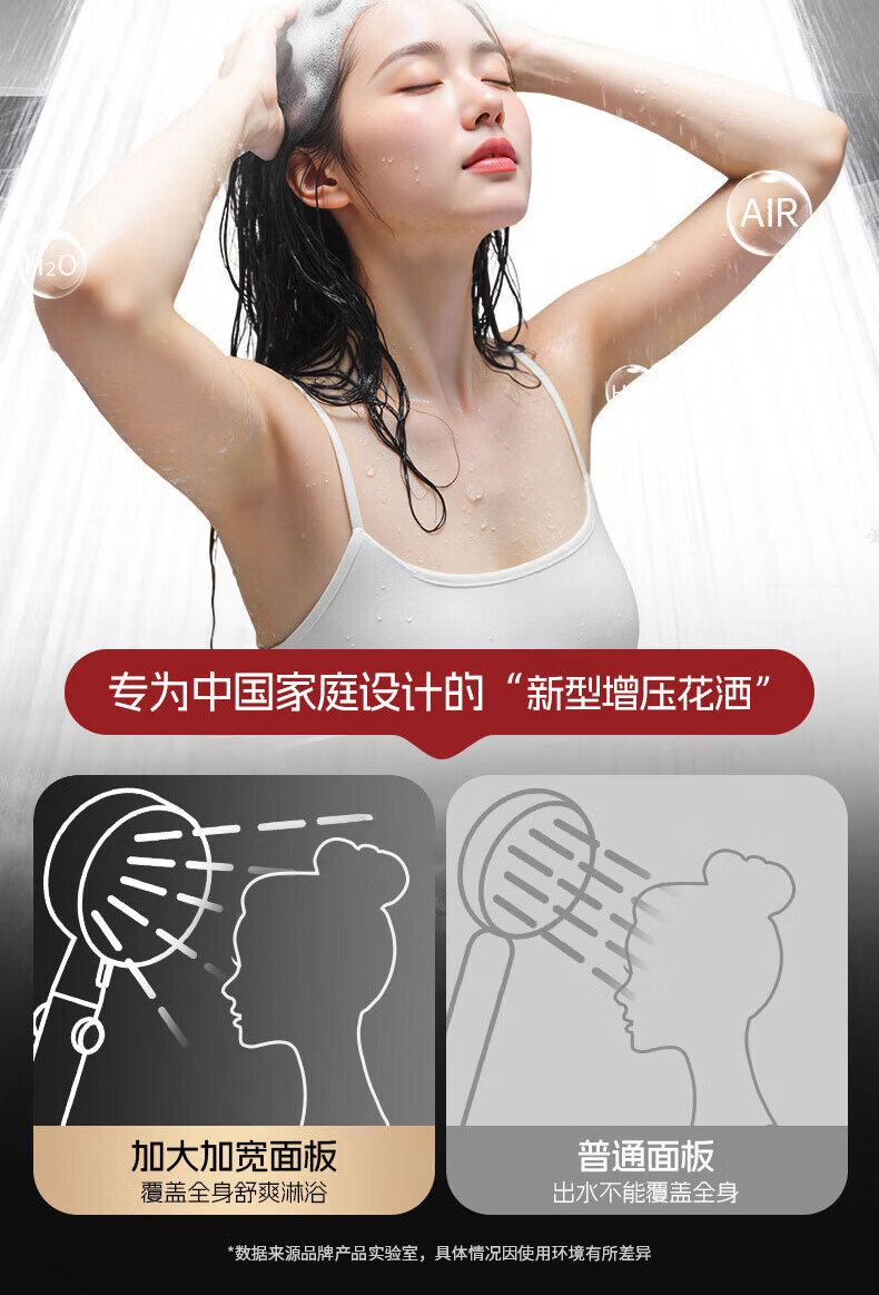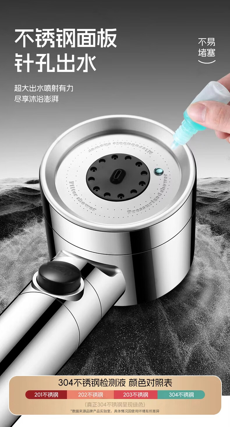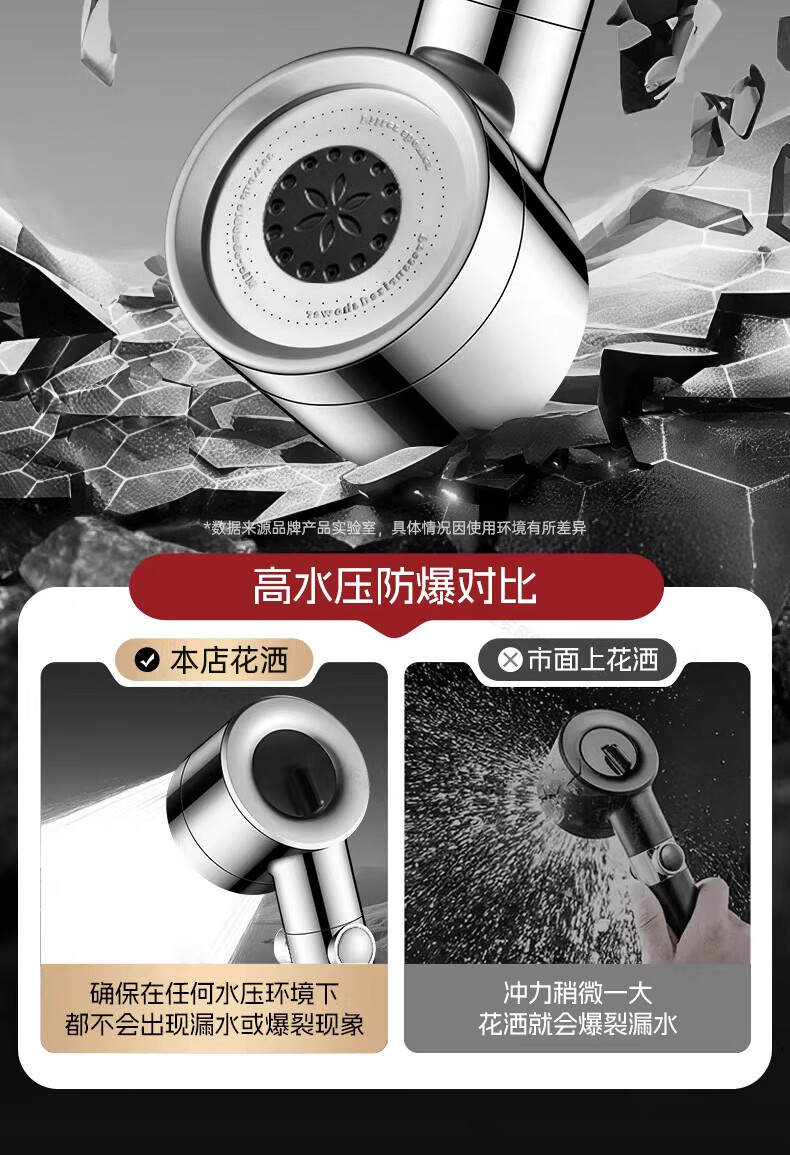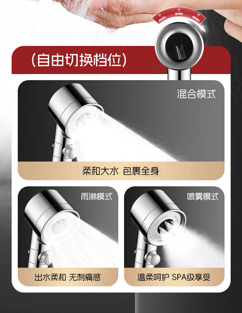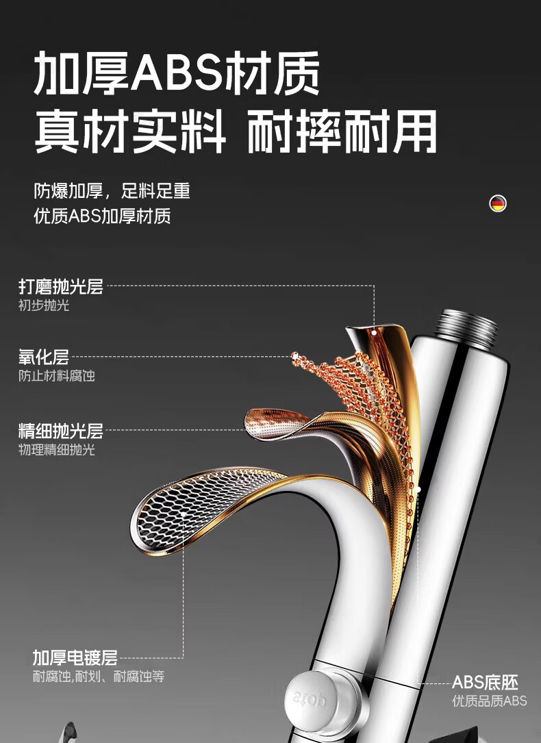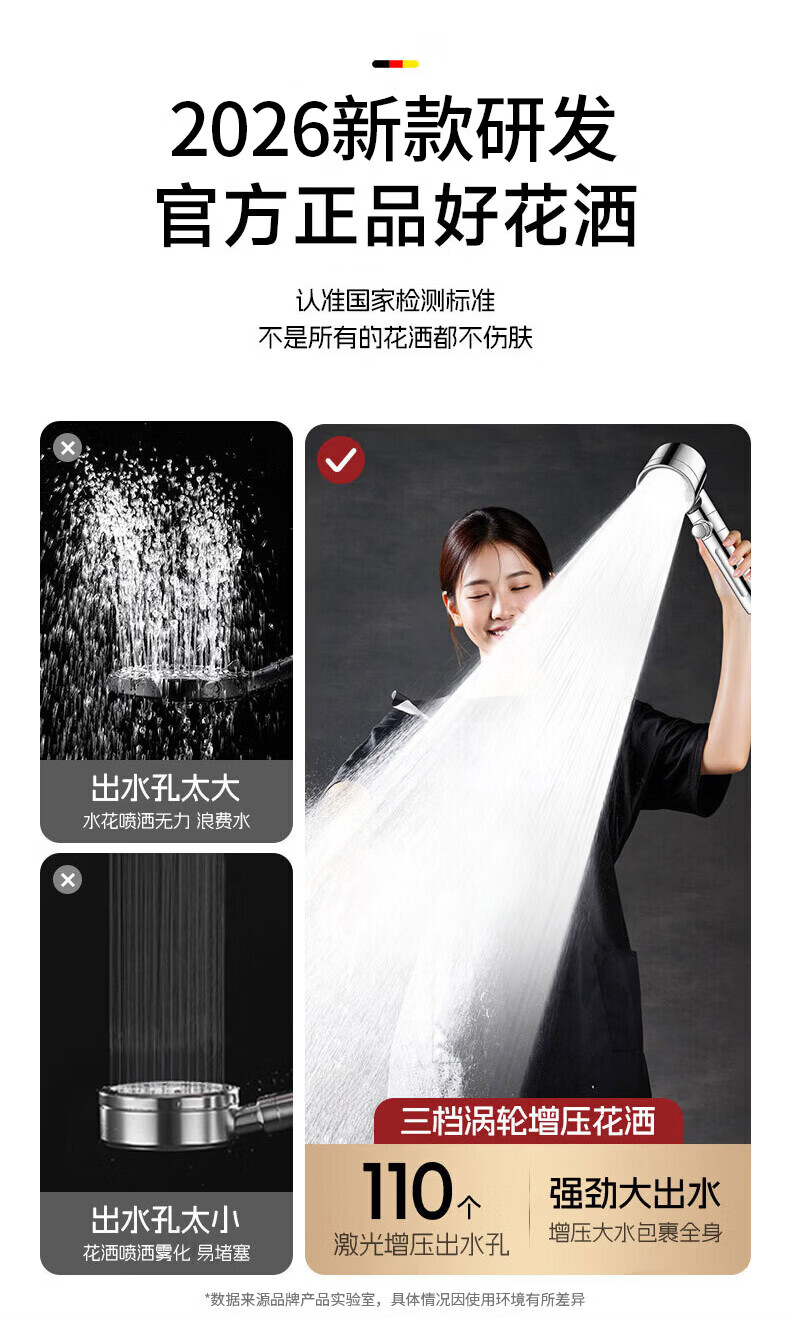 GuGuGo【德国】增压淋浴花洒喷头多功能家用浴室洗澡过滤花洒手持莲蓬头 六档增压花洒+1.5米软管-亮银 升级12CM大面板丨享受酒店般沐浴体验