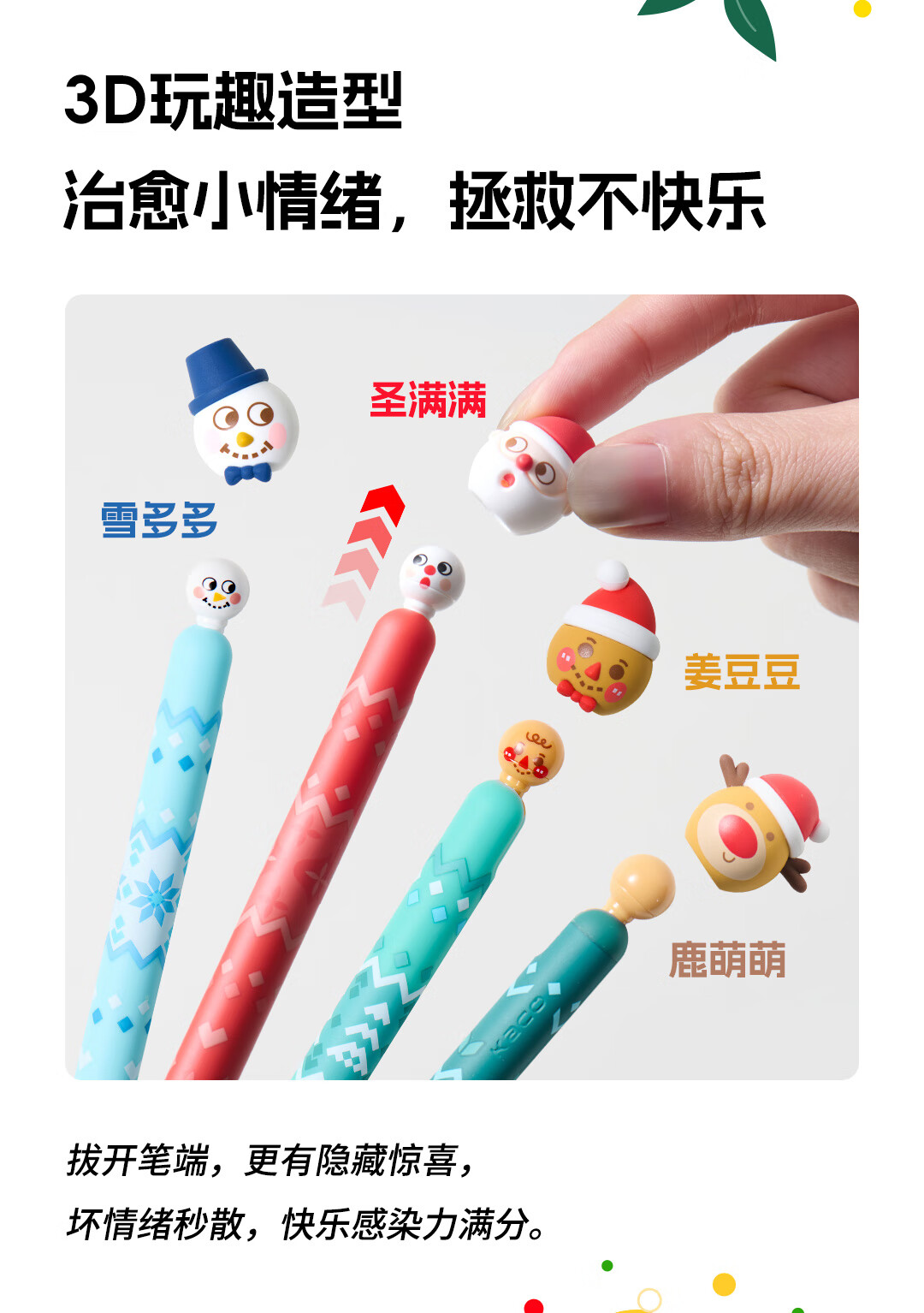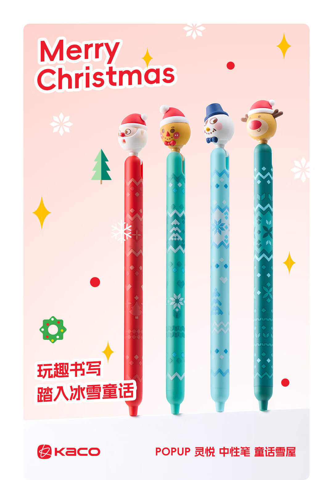 KACO圣诞节限定礼物按动灵悦 童话雪屋中性笔创意高颜值ins风解压按动 0.5黑学生书写刷题创意儿童速干 鹿萌萌