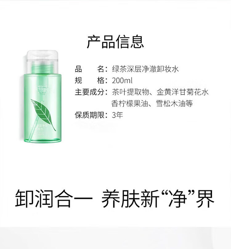 植物主义准孕妇卸妆液 彩妆适用面部深层清洁温和化妆品卸妆水200ml