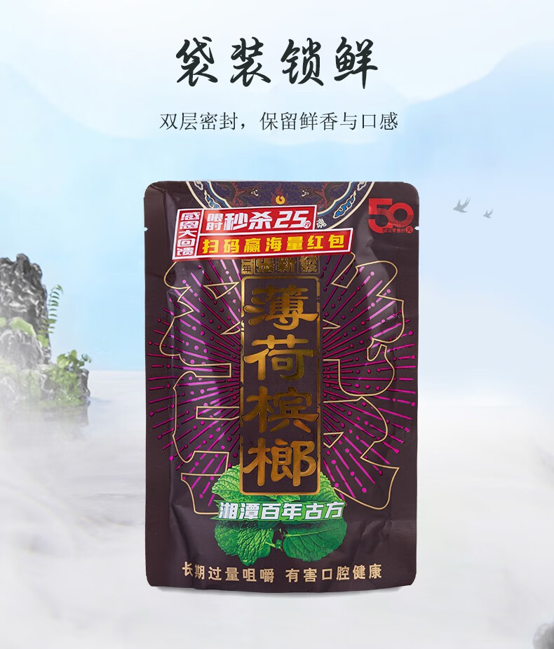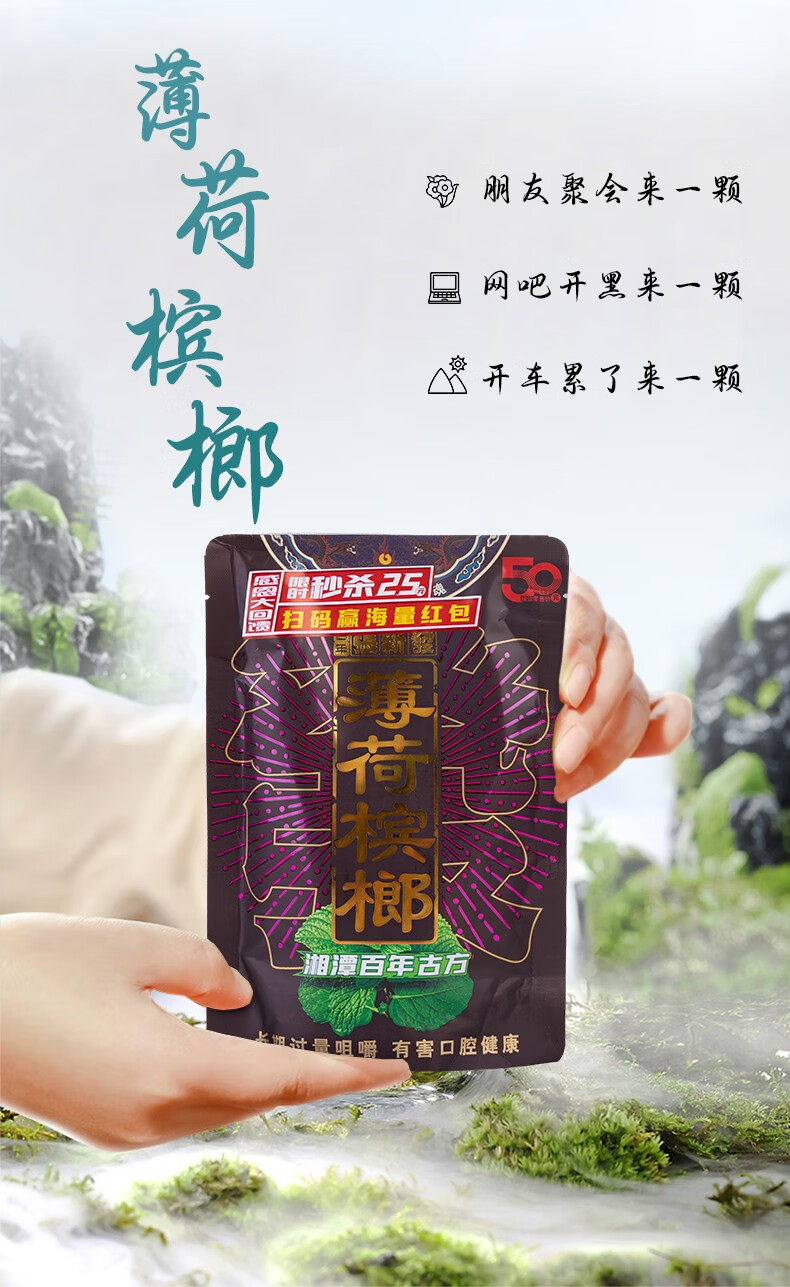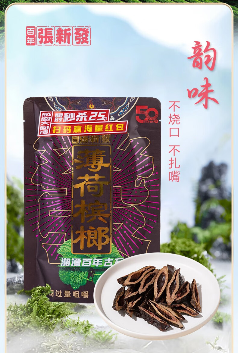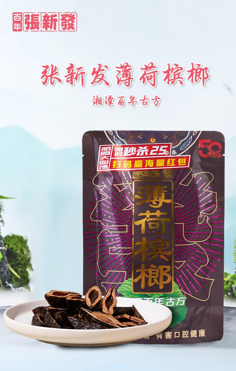 张新发 皇爷50亓薄荷槟榔扫码红包装湖南槟郎湘潭青果口味摈榔批发 50亓青果薄荷*5(扫码35.9.)