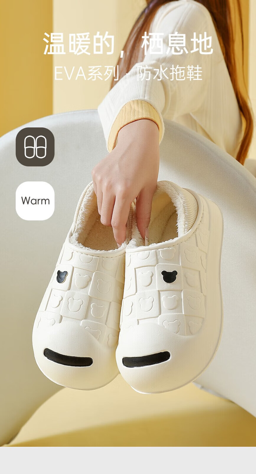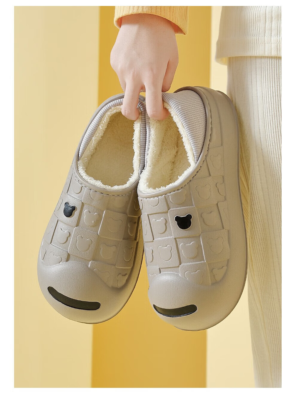 FZT棉拖鞋女士秋冬季新款踩屎感室内外两穿保暖加绒包跟防滑水棉鞋男 浅咖【D款】 40-41 适合39-40