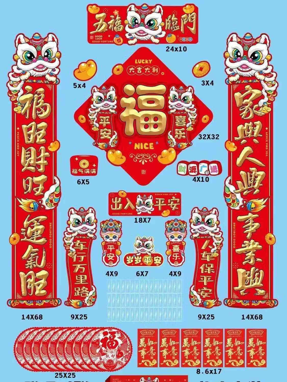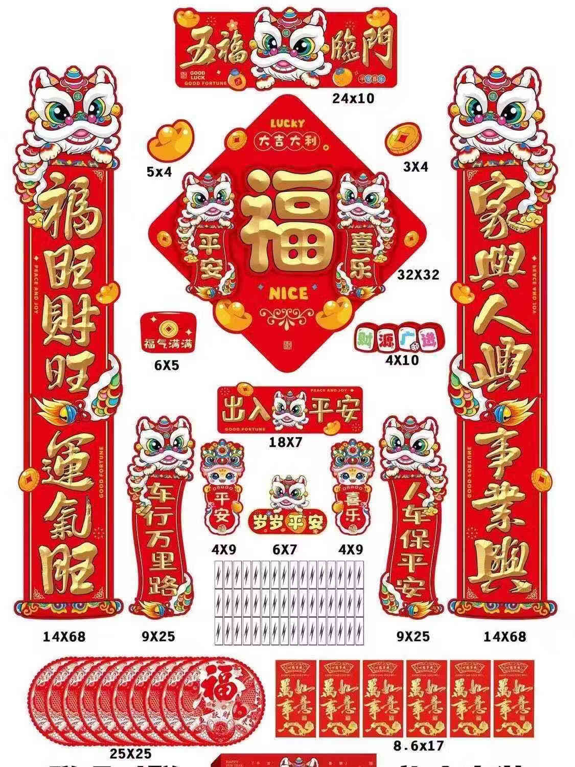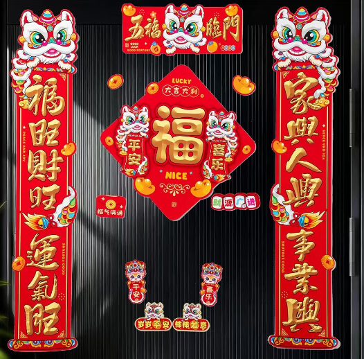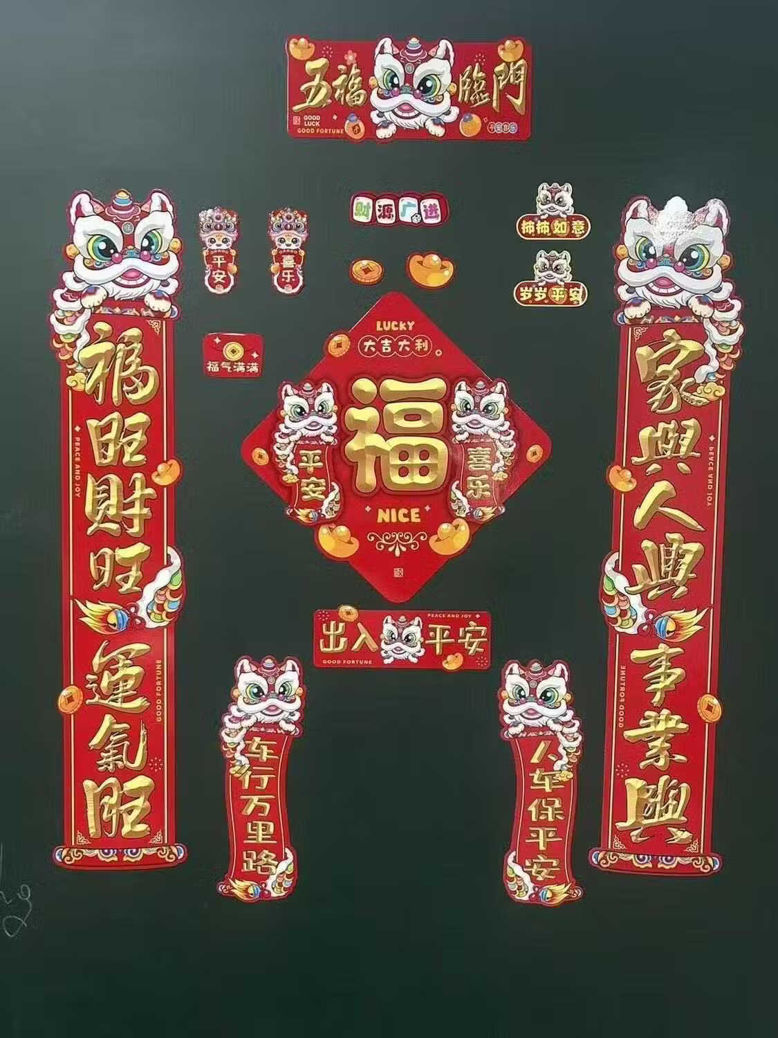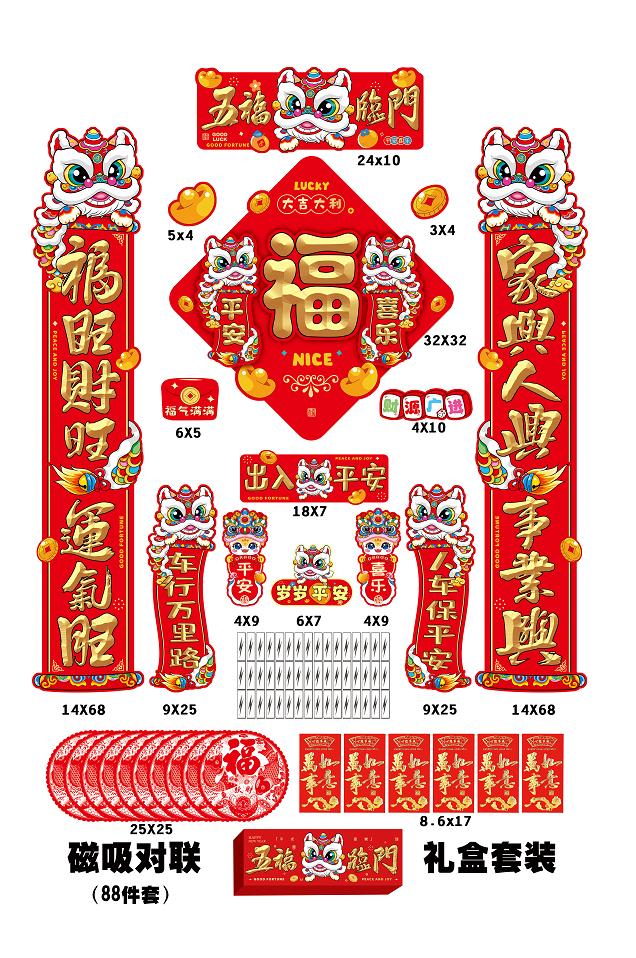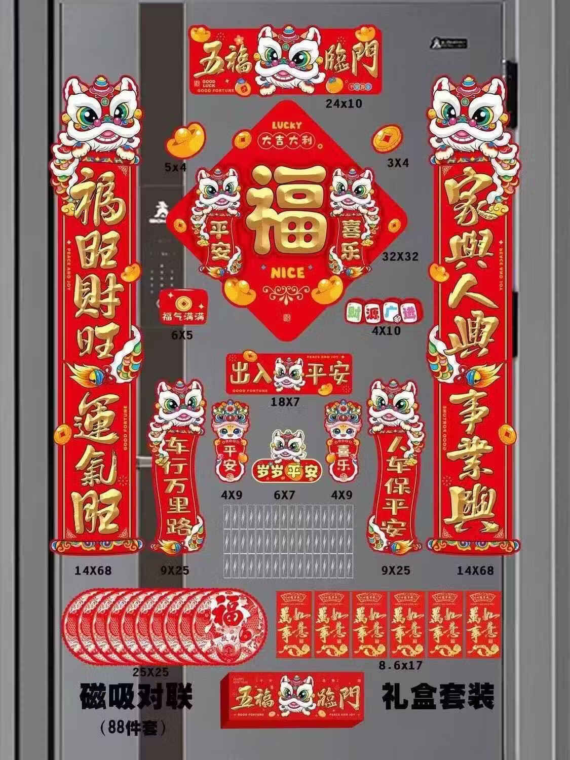 88件磁吸对联冰箱贴磁吸车贴福字门贴入户门新年装饰春节对联套装 醒狮磁吸对联88件套【1套】 无规格