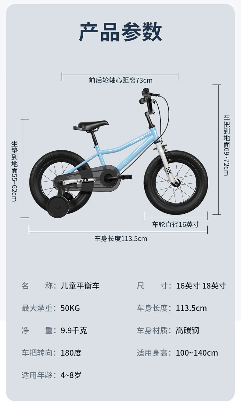 Cakalyen可莱茵儿童自行车 3-6-12岁CK08学生儿童车脚踏童车山地车 秘境紫【适合小王子和小公主】 16寸-适合4-9岁 身高105-135cm