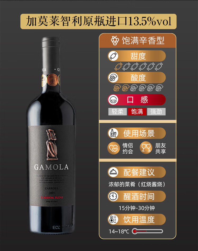 赫图令(HERTDIIG)【国际三项金奖】智利原瓶进口红酒干红葡萄酒整箱送礼盒装 【嘉福13.5度】1箱6瓶